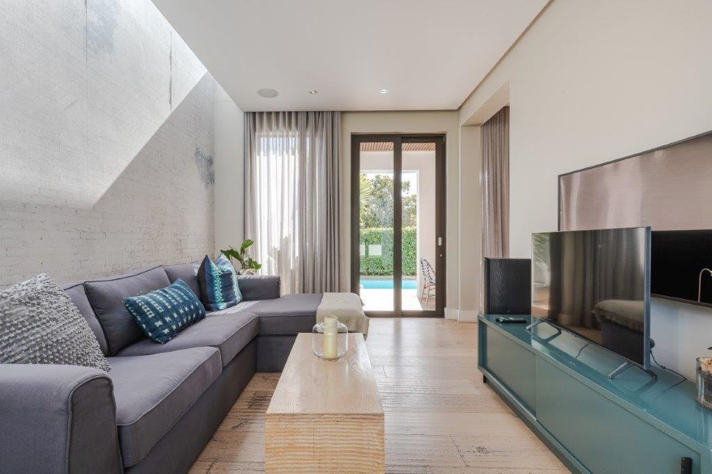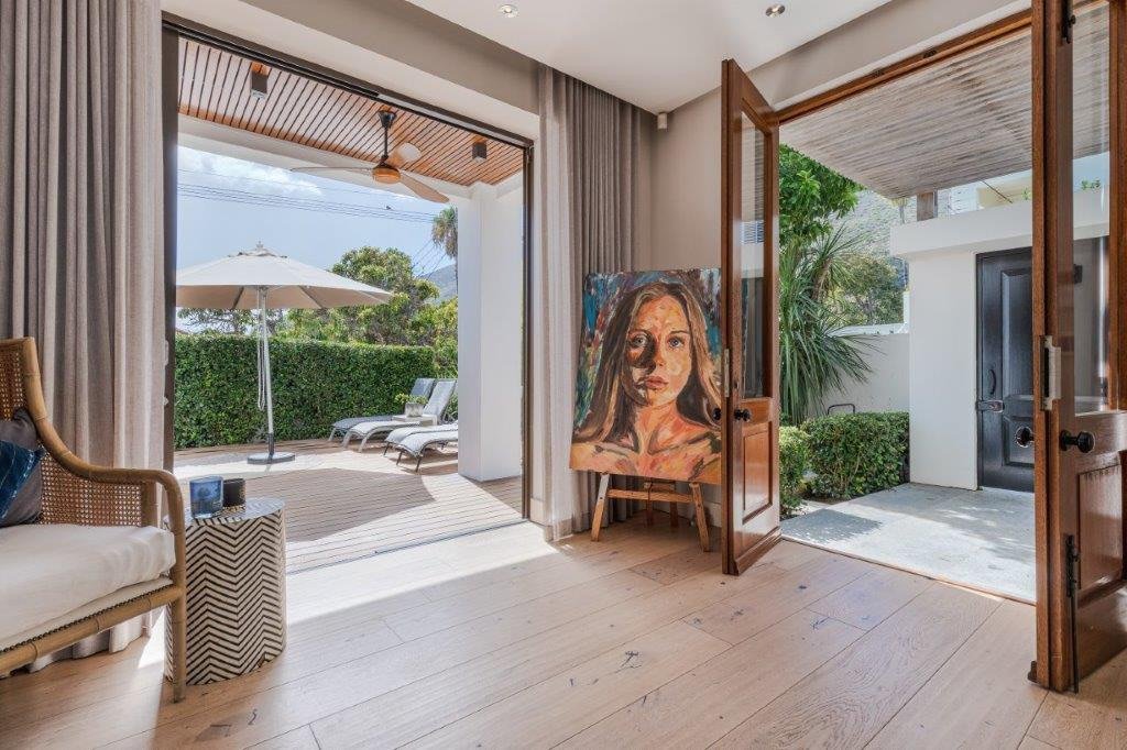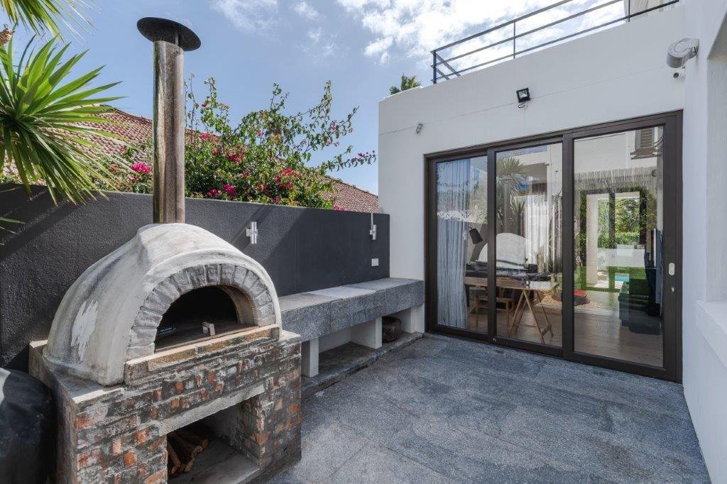 Entering the property you are greeted with a living room and dining room bursting with natural light, opening up onto a deck with an outdoor dining area and swimming pool, off the living area is a modern kitchen leading to an outside area featuring a pizza oven and manicured garden.