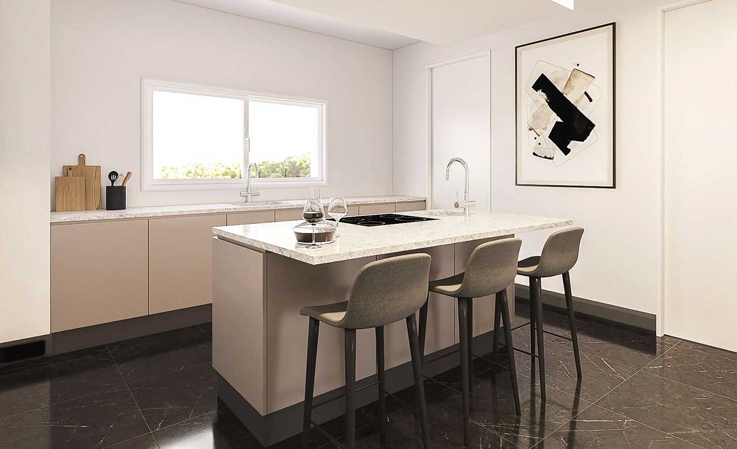 This ground floor apartment features a street level entrance leading into a beautifully open plan living space. The entrance leads you into a welcome hallway that extends into the living room / dining room. This space opens up on to the large terrace spanning the full length of the condominium. Adjacent from the main living area are two large bedrooms – each with an expertly finished ensuite bathroom. The master bedroom also features a walk in closet. A Third Bedroom can be used as an office space or spare bedroom as needed.