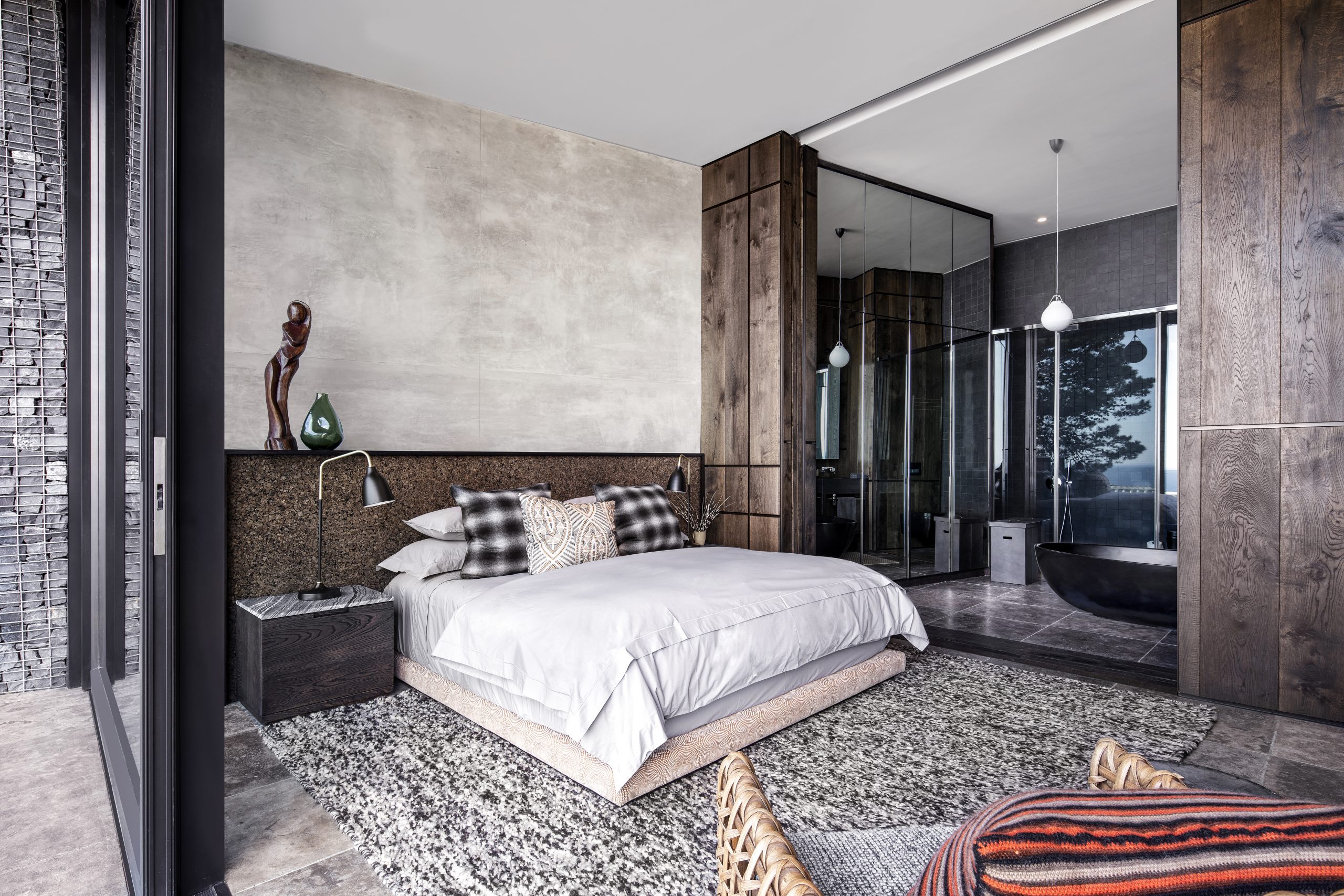 - Bath in corner of the room with views of the ocean and mountains
