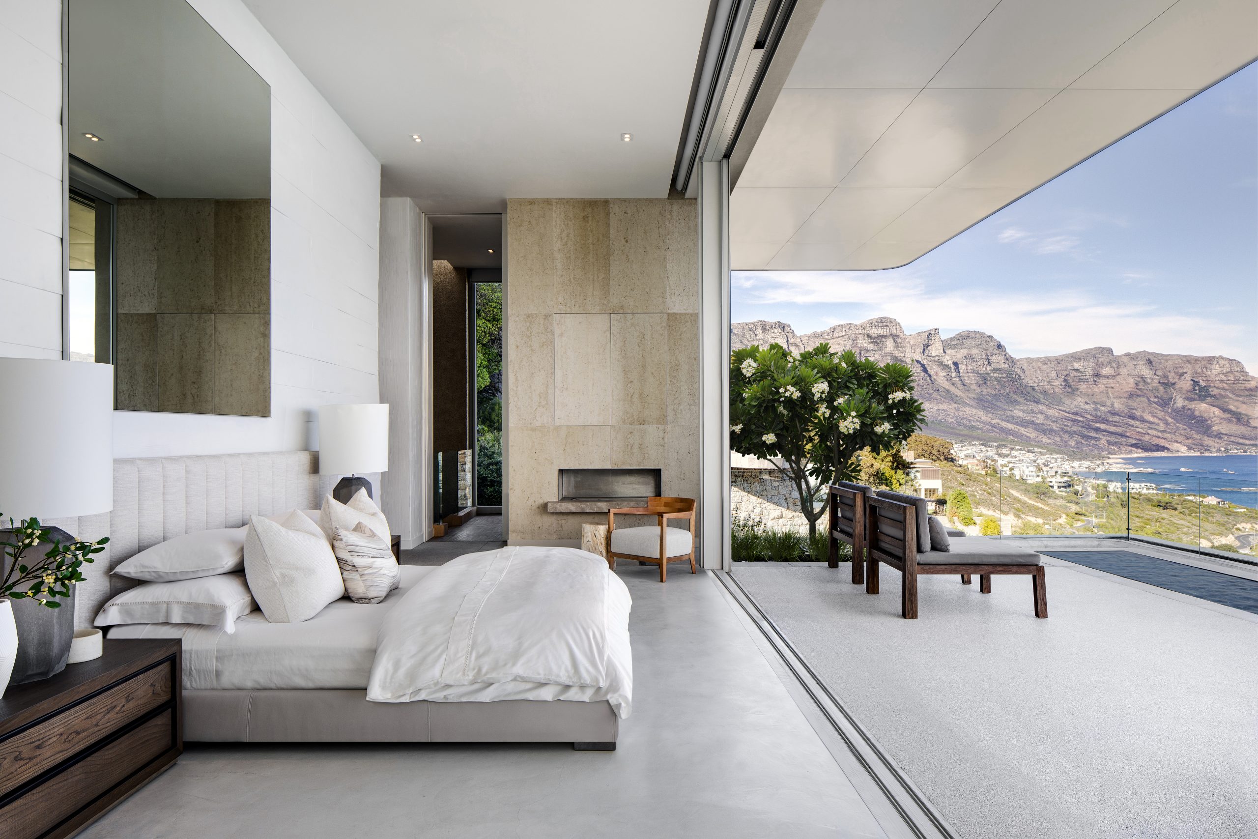 - Private balcony with water feature and ocean and mountain views