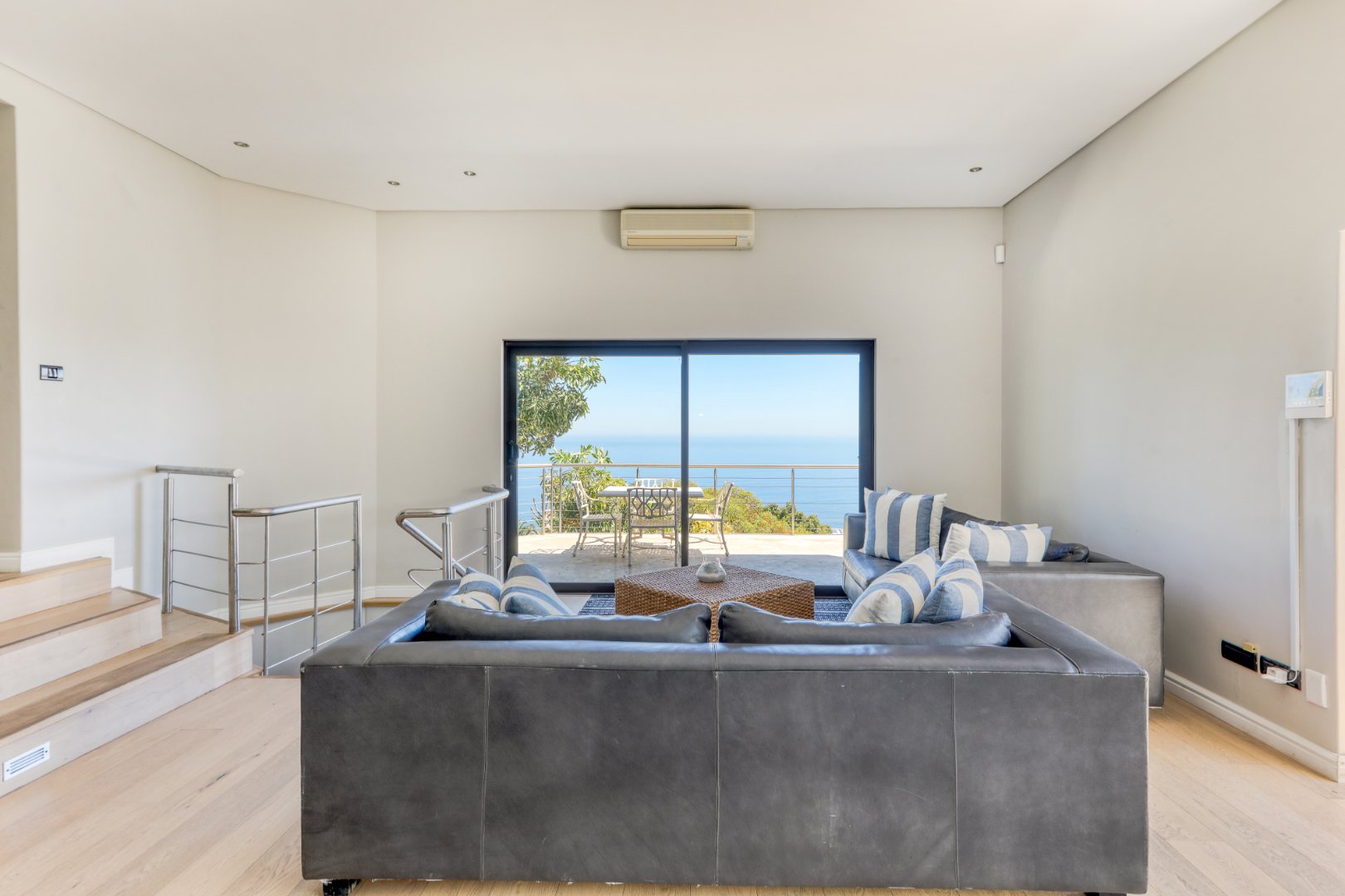 Four en-suite bedrooms with sea views, air-conditioning, satellite TV, and patio access