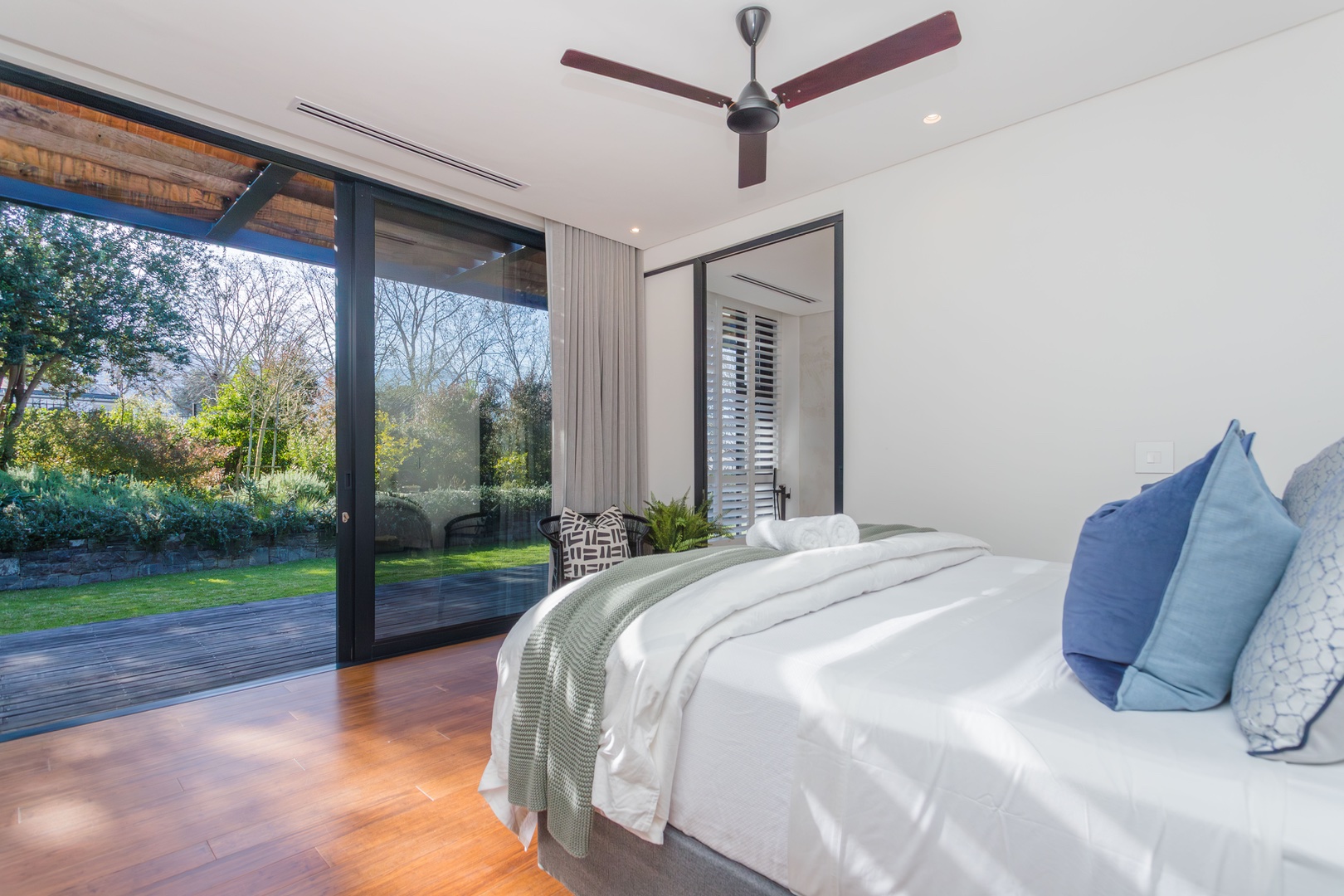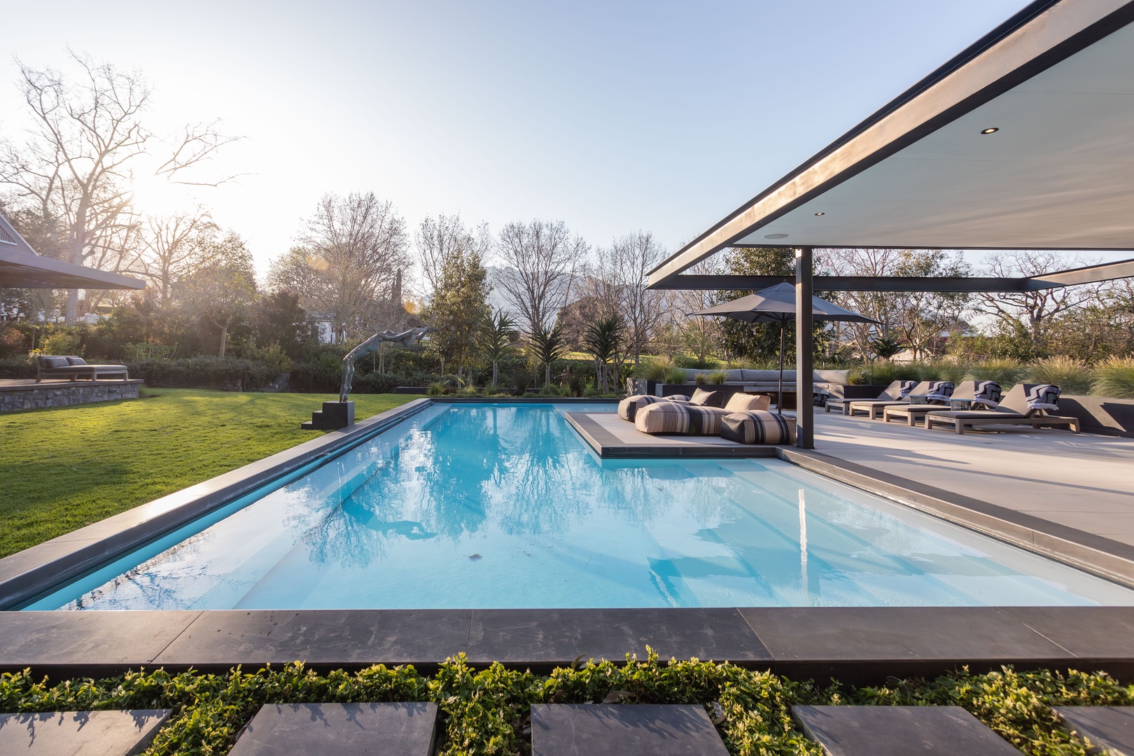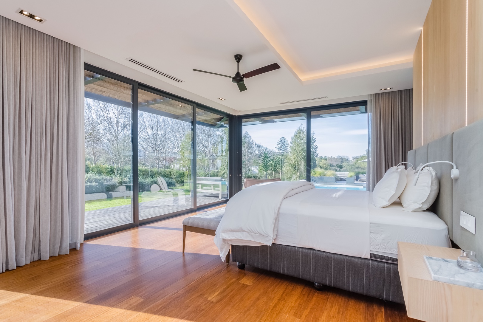 On the right wing and down a flight of stairs you will find a separate private double bedroom en-suite, staff quarters/kitchen and an office or gym space. In the garden you will find a beautiful veggie and herb garden ideal for gourmet cooking.