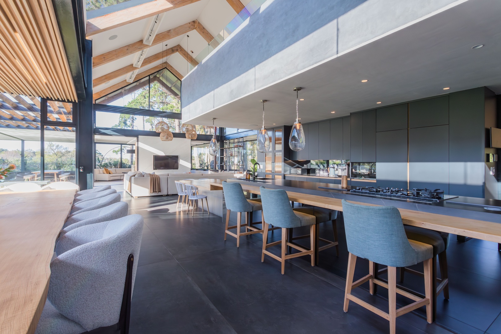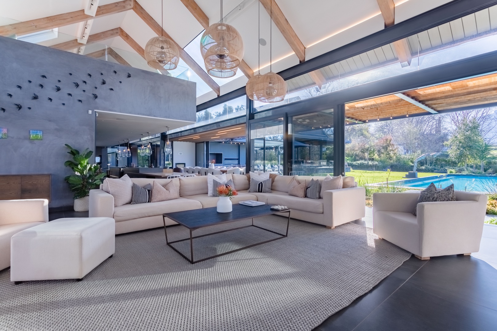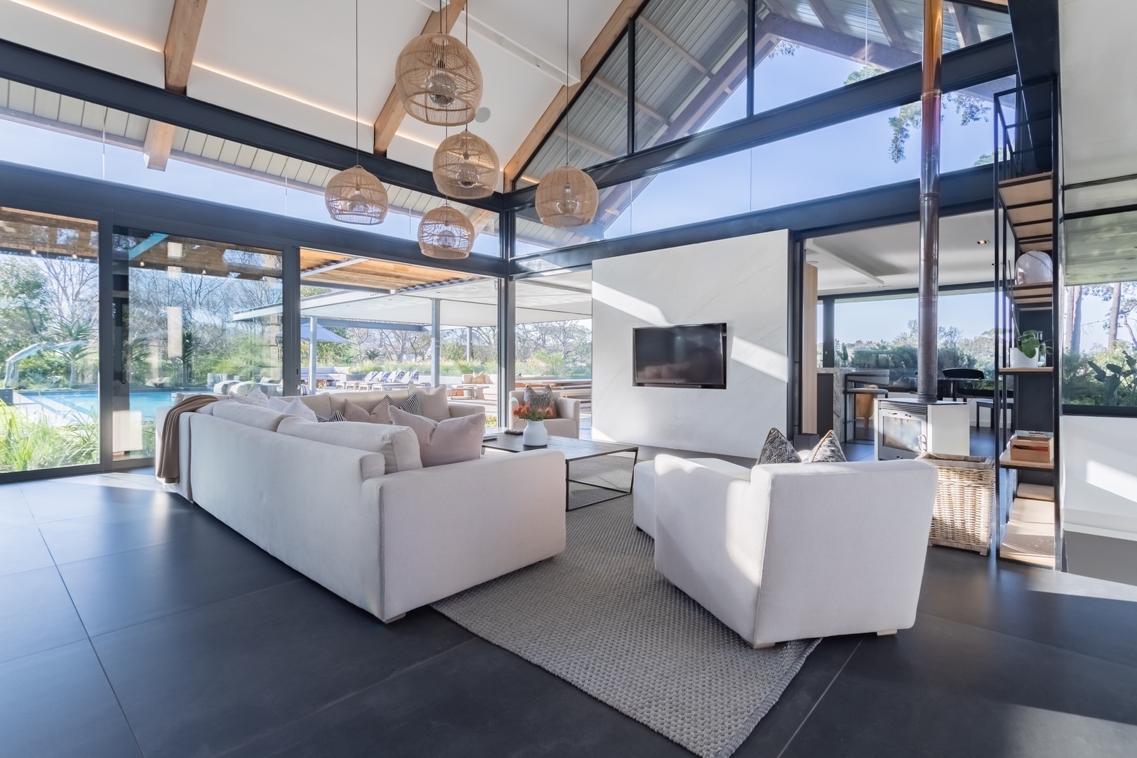 Welcome to this unique modernised Barn style home, cleverly designed to invite the natural beauty of the surrounds in via floor to ceiling glass windows and doors, breathtaking atriums and high ceilings. Spanning over 2 levels with a large upstairs loft currently used as an office and on the ground level on the left wing you will find a tranquil pyjama lounge that leads to 4 bedroom en-suites which in turn flows out toward the magical indigenous garden. In the centre of the home you will find a large open kitchen with a centre island and interactive bar stools surrounding the island, this flows to a wide open entertainers dream space connected to the outdoor space surrounding the pool, deck and pizza oven. Choose if you want to dine inside or out with a beautiful indoor lounge and dining and outside zen spaces and lounging areas.