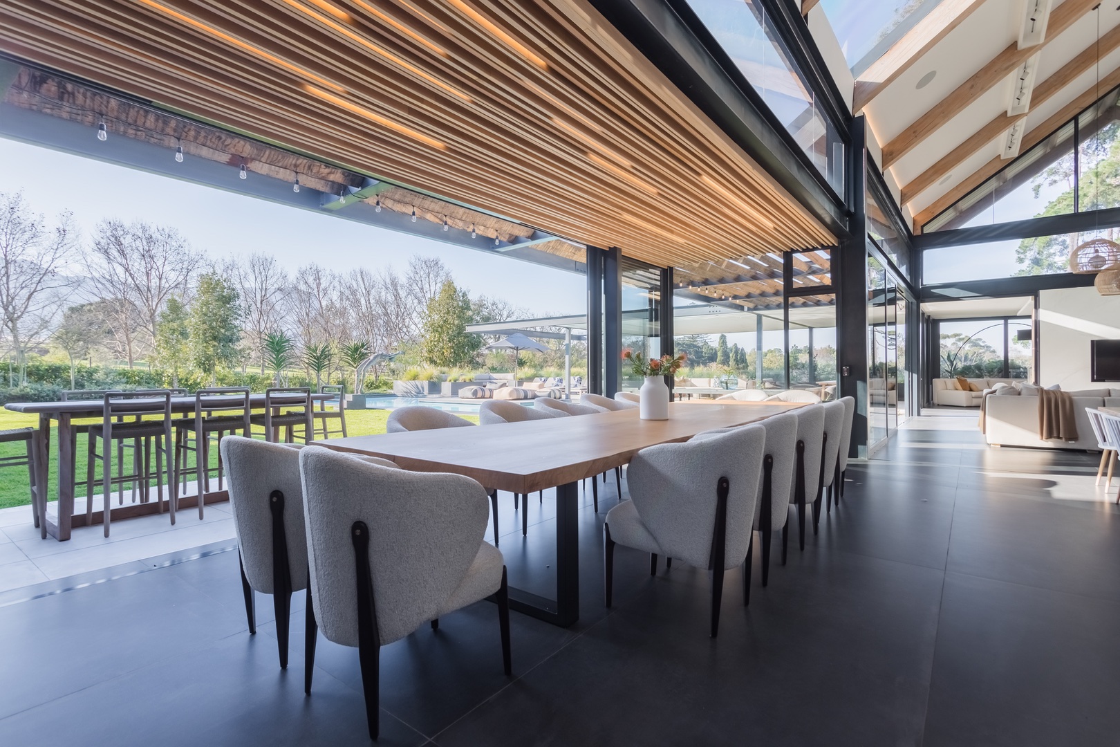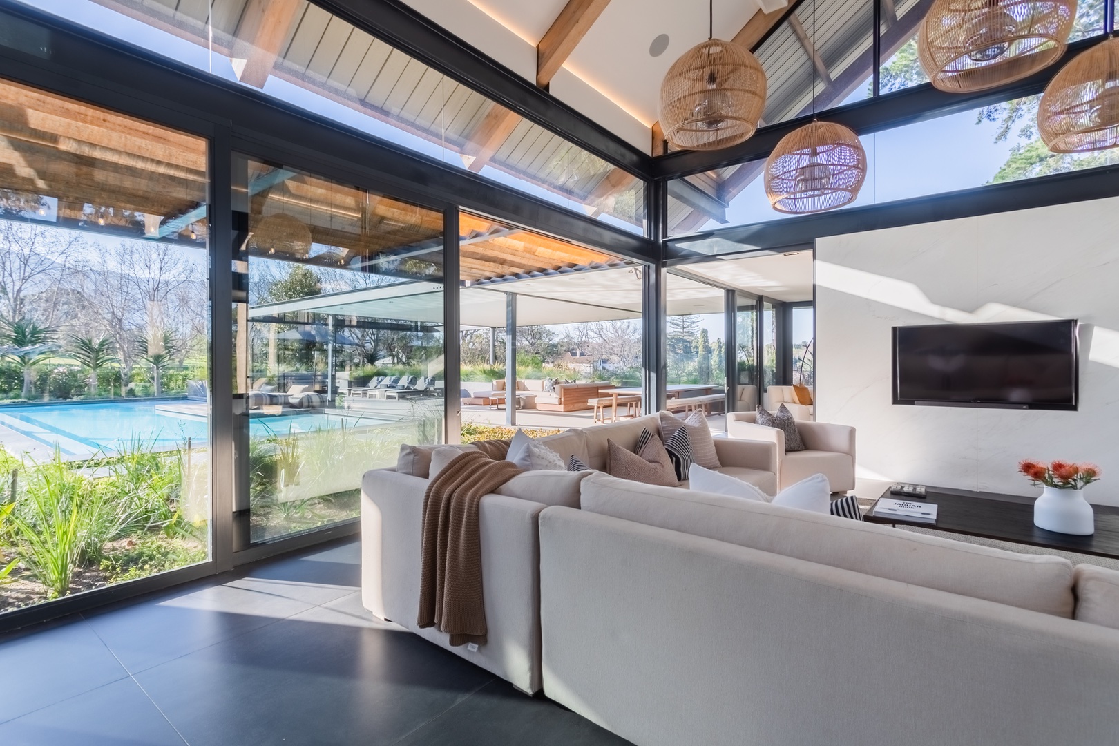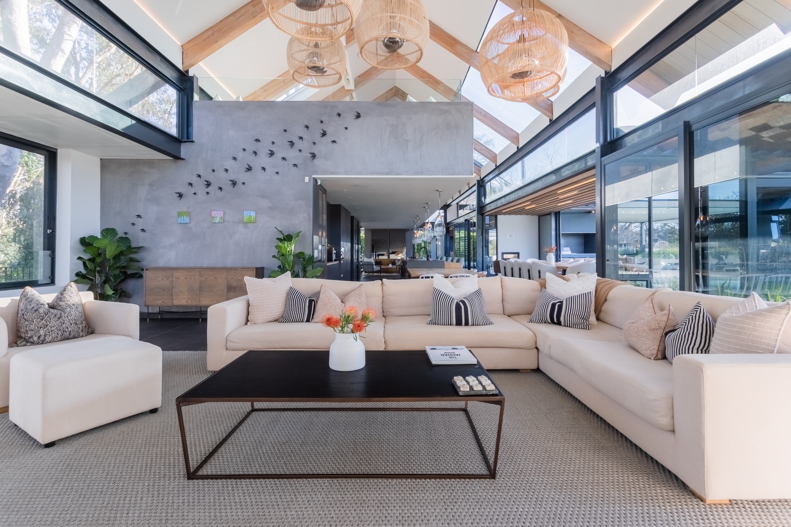 Welcome to this unique modernised Barn style home, cleverly designed to invite the natural beauty of the surrounds in via floor to ceiling glass windows and doors, breathtaking atriums and high ceilings. Spanning over 2 levels with a large upstairs loft currently used as an office and on the ground level on the left wing you will find a tranquil pyjama lounge that leads to 4 bedroom en-suites which in turn flows out toward the magical indigenous garden. In the centre of the home you will find a large open kitchen with a centre island and interactive bar stools surrounding the island, this flows to a wide open entertainers dream space connected to the outdoor space surrounding the pool, deck and pizza oven. Choose if you want to dine inside or out with a beautiful indoor lounge and dining and outside zen spaces and lounging areas.
