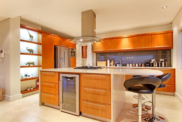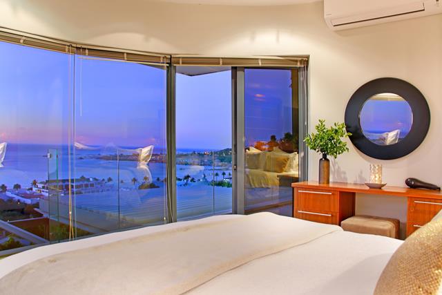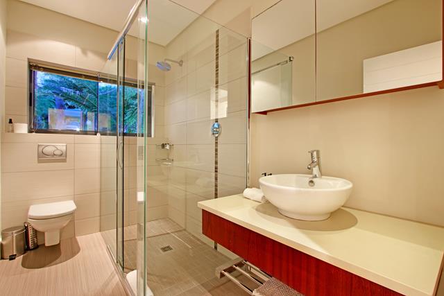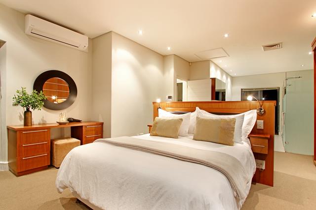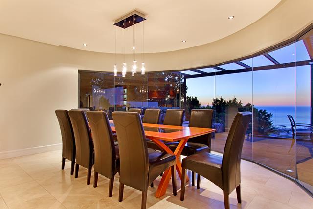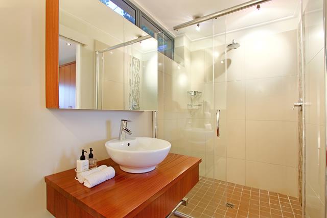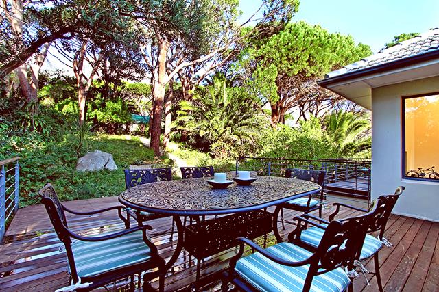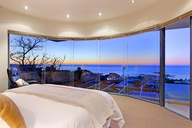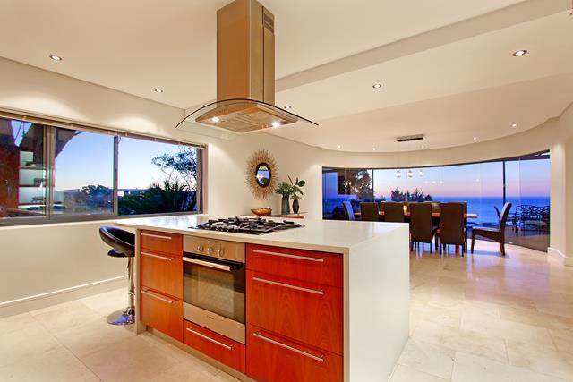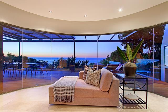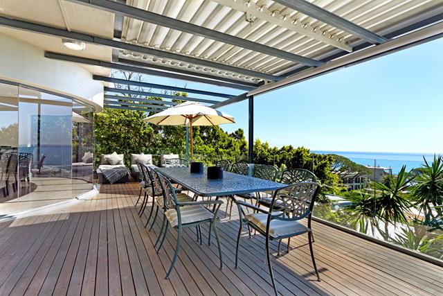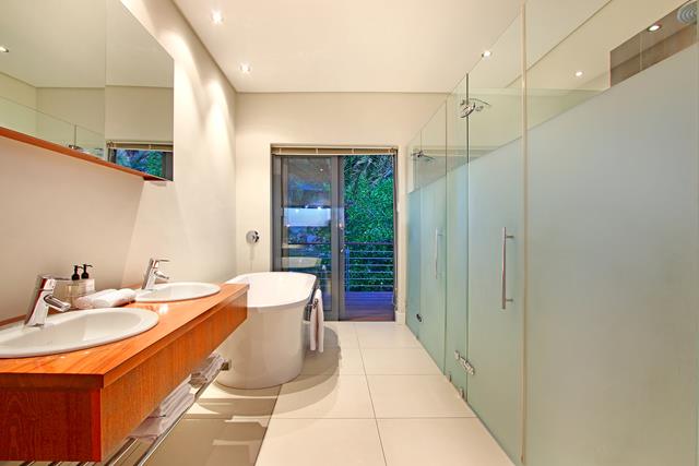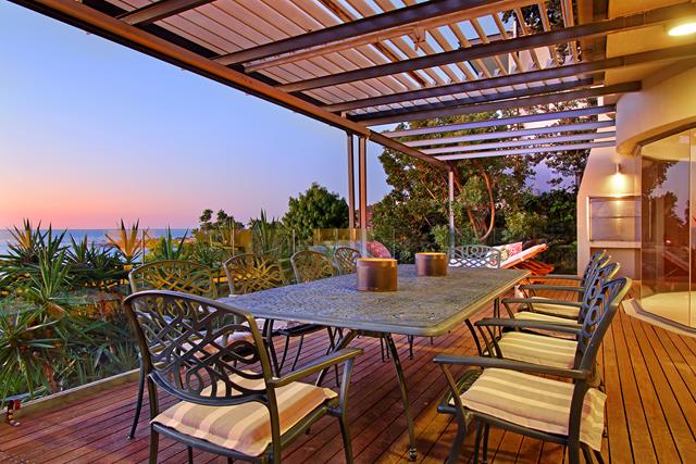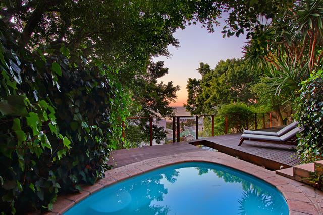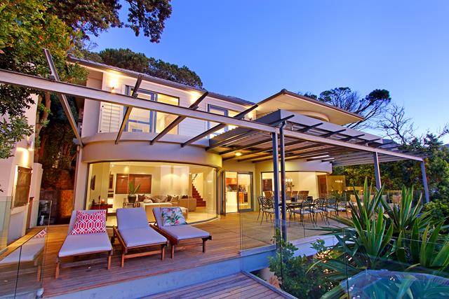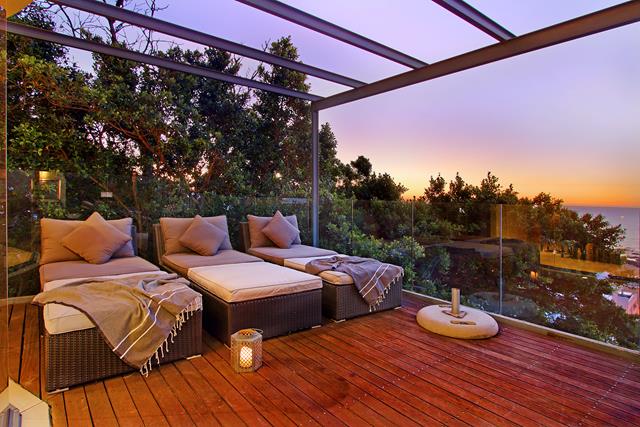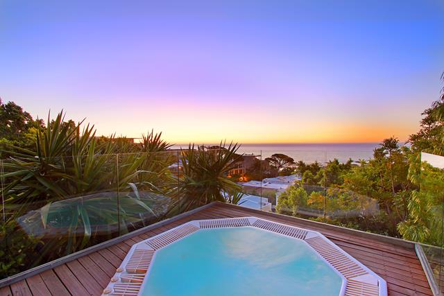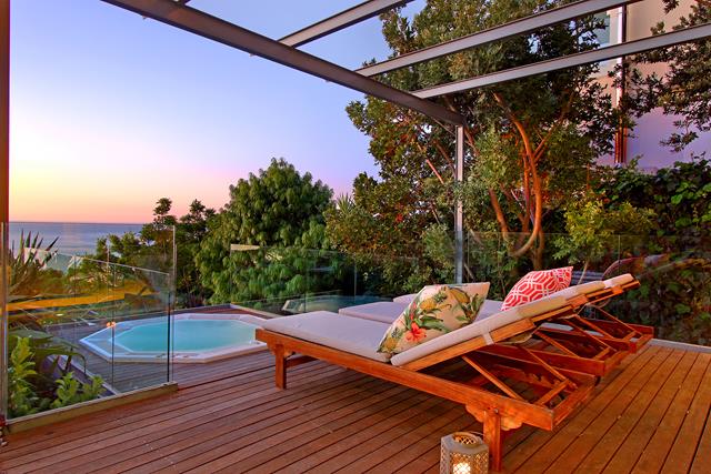 Panacea is a split-level Villa, very private and situated partially in a green belt. Wall to ceiling glass paneled bay windows lets in streams of light on gleaming wood and tastefully designed decor. Panacea is split-level 4-bedroom villa with a separate fifth studio bedroom on a lower level. Views of the Atlantic Ocean and Lion’s Head mountain can be enjoyed from the open plan lounge and dining room which flows onto a large wooden deck with outside dining and a Jacuzzi. Pool beds on the deck create the opportunity for ultimate relaxation.