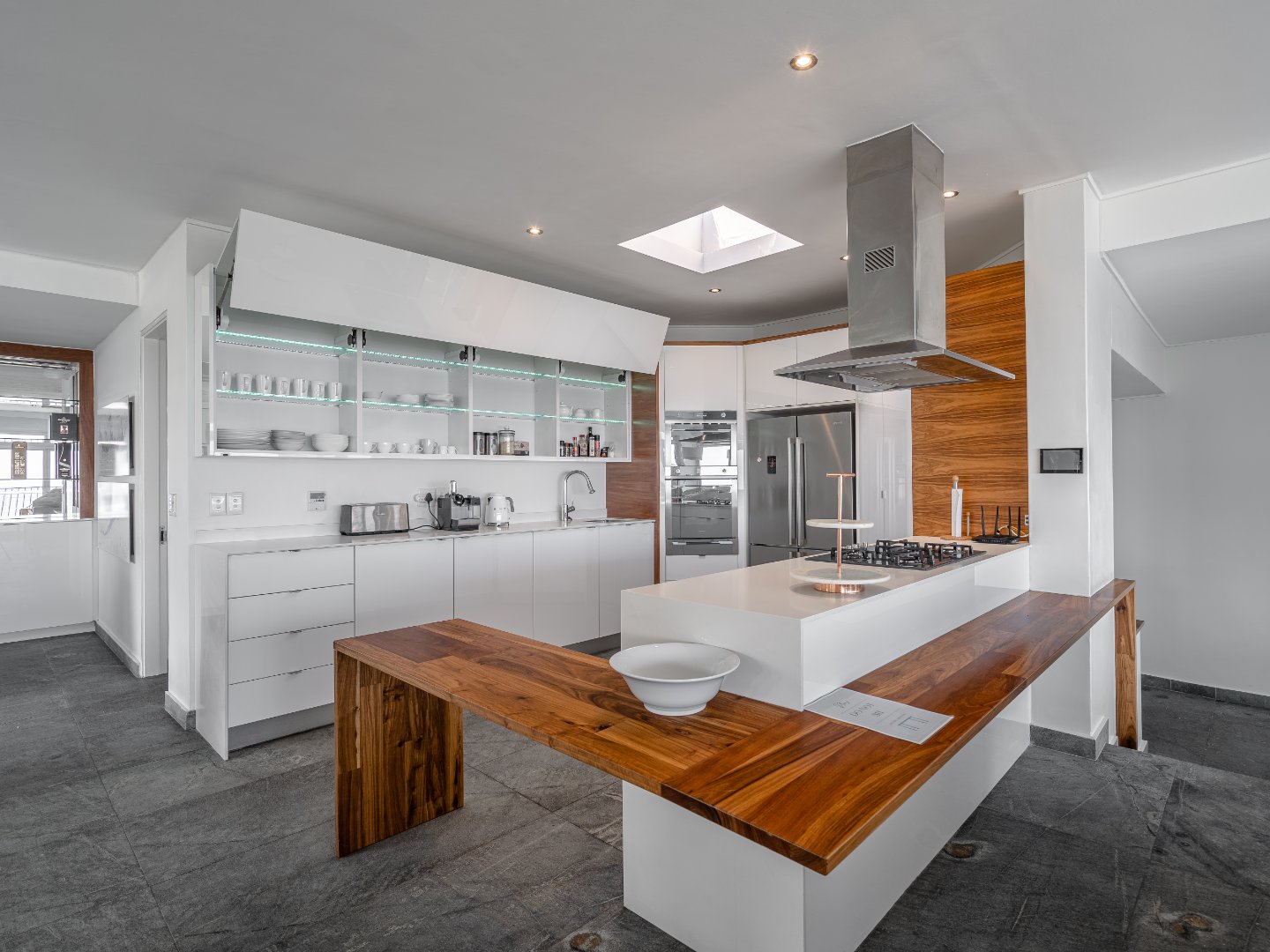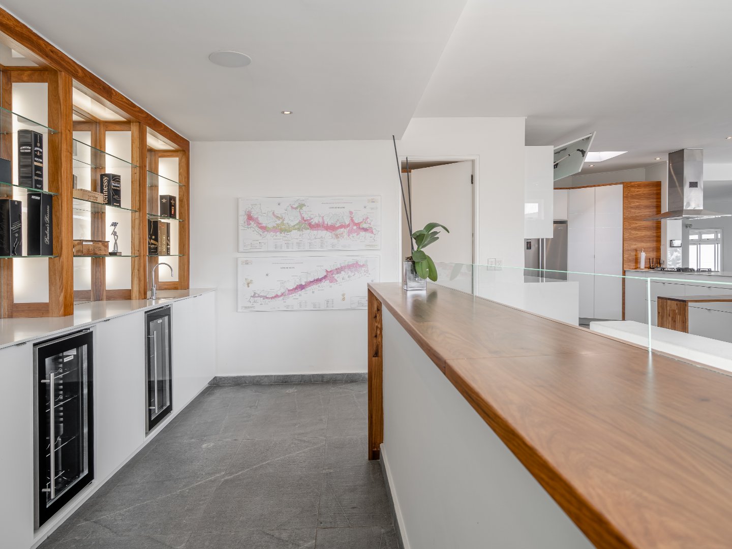 Featuring 5 bedrooms, all en-suite; a fully functioning bar (which can be stocked on request at an additional charge); a modern and open-plan kitchen, dining and living area; and a large balcony with full views of the Atlantic Ocean.if Style and Luxury is what you are after for your holiday rental needs, then look no further! Villa Ravensteyn is perfectly suited for large families or friends looking to escape to Cape Town for a holiday.