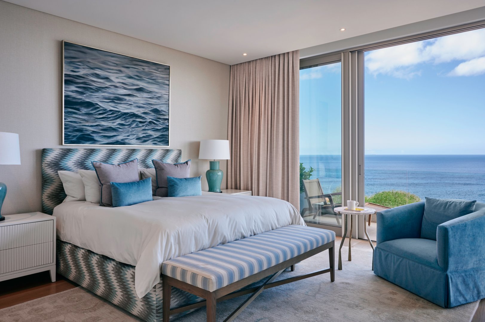 • Bedroom 1: King size bed, safe, ensuite bathroom with shower & bathtub, balcony, ocean view