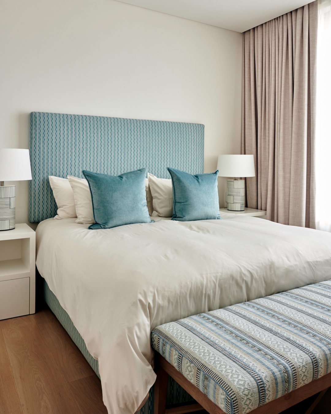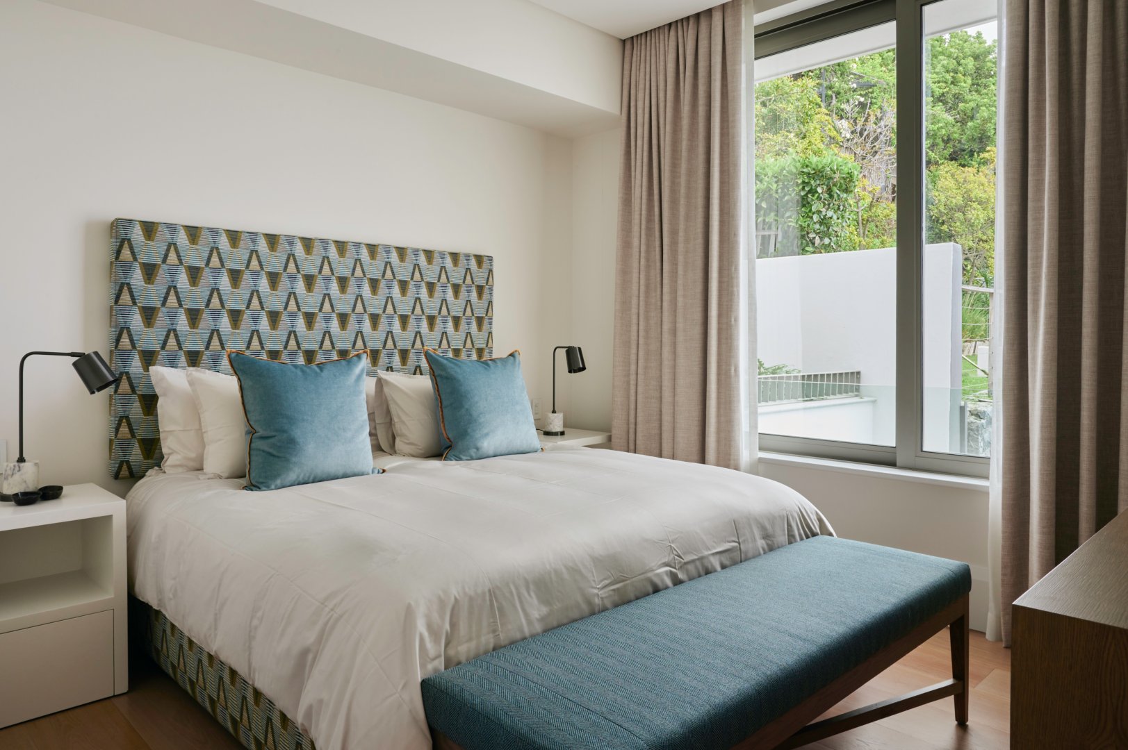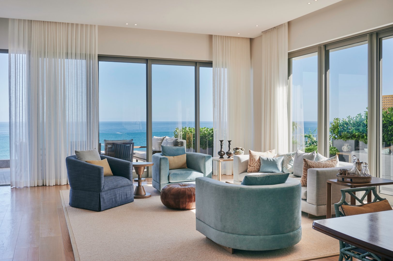 The villa, which is one of only two units in this new development, has direct lift access from the secure basement parking. The villa can accommodate up to 6 adults in 3 ensuite bedrooms which lead off from a central open-plan kitchen, dining, and living space. The villa’s pièce de resistance is its serene rooftop pool terrace which boasts unobstructed ocean and mountain views