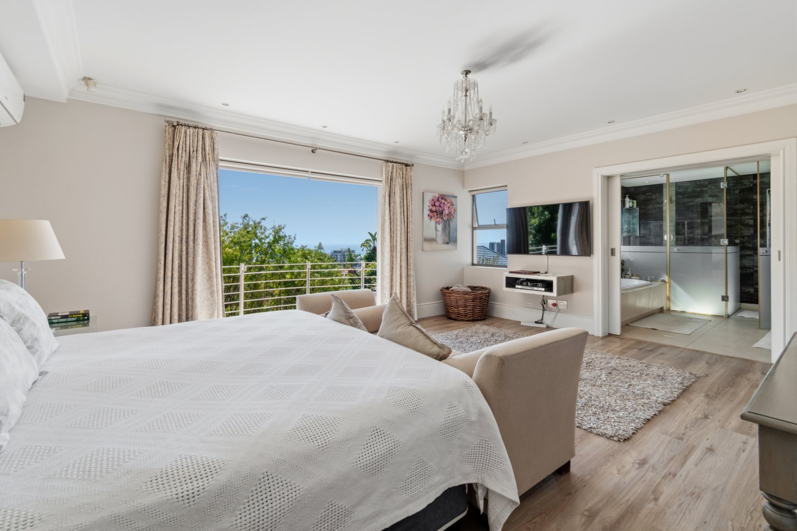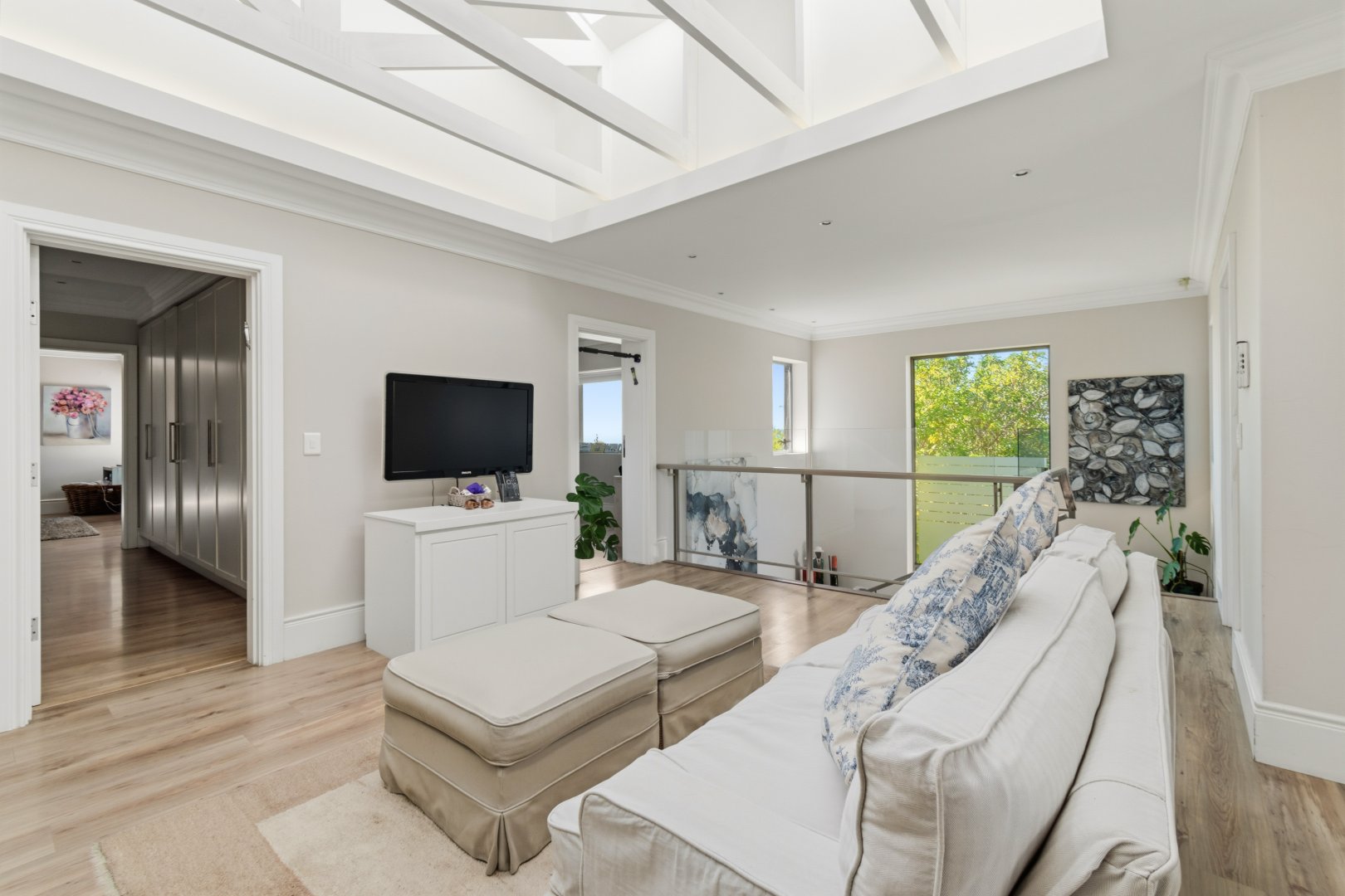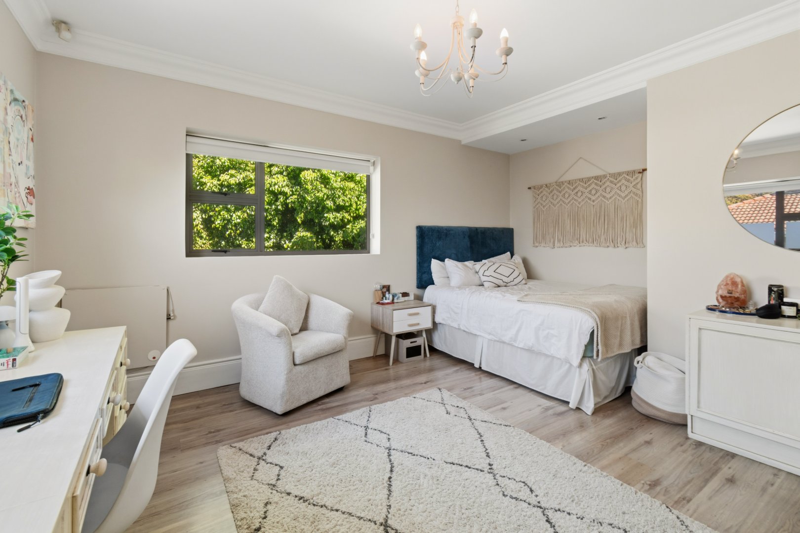 Upstairs, four well-appointed bedrooms provide a private sanctuary for the family. The luxurious main suite is a standout feature, complete with a spacious walk-in dressing area, a beautifully finished en-suite bathroom, and access to a private patio with sweeping views across the Atlantic Seaboard. Three additional bedrooms, serviced by two bathrooms, are complemented by a relaxed pyjama lounge—perfect for informal family time.