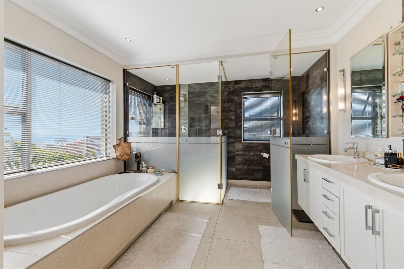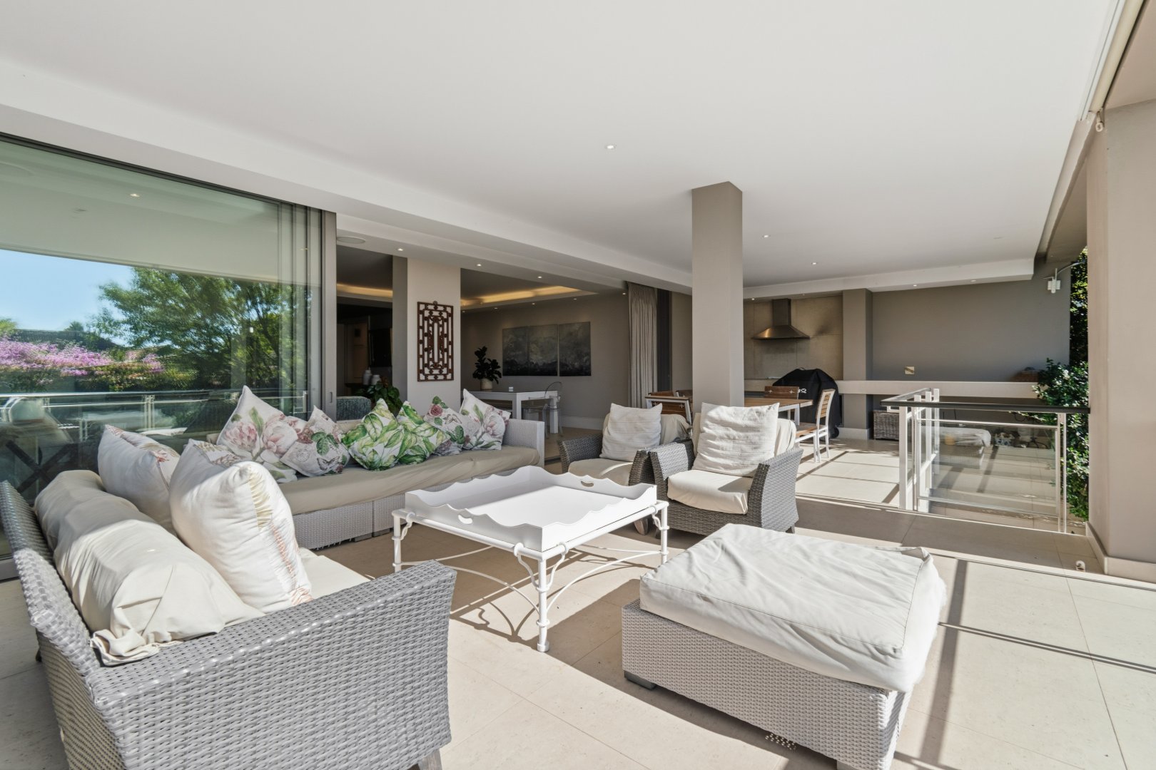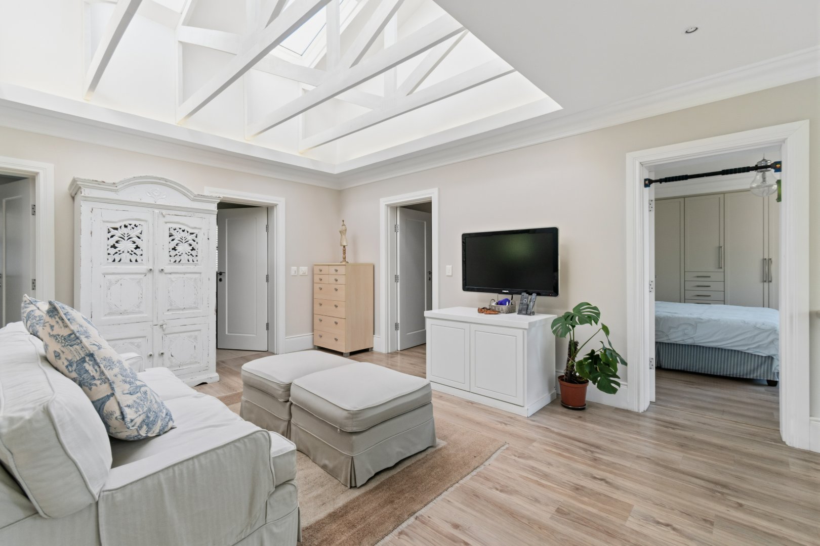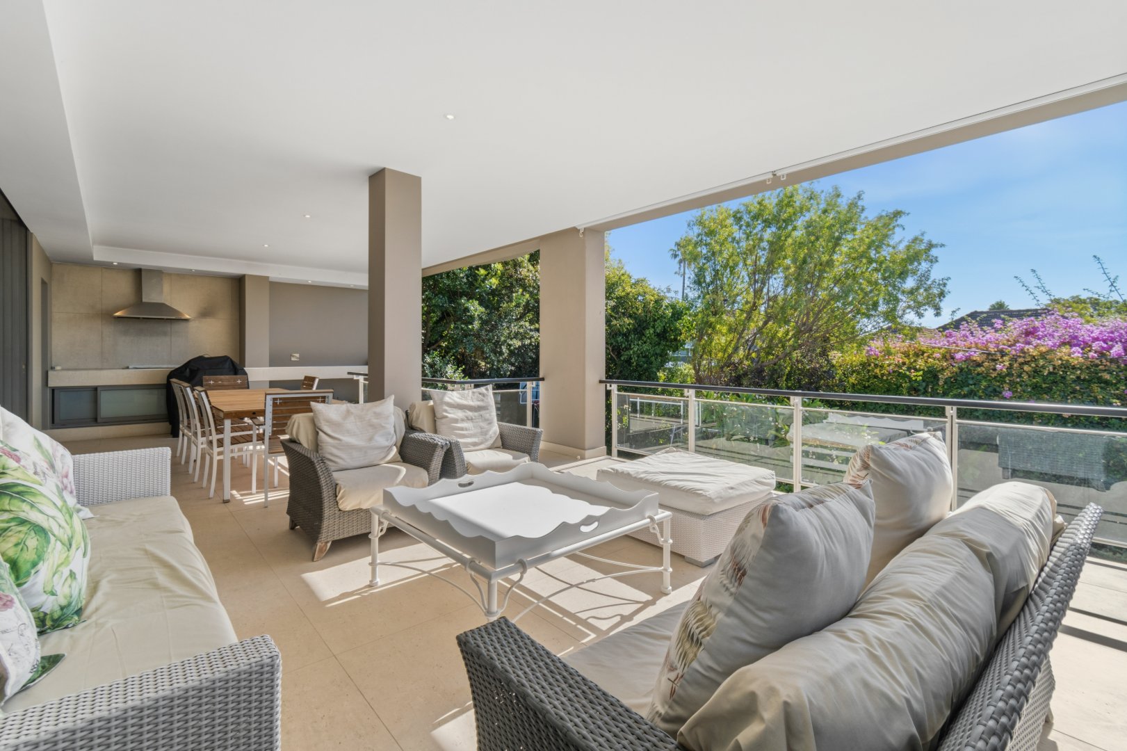 Upstairs, four well-appointed bedrooms provide a private sanctuary for the family. The luxurious main suite is a standout feature, complete with a spacious walk-in dressing area, a beautifully finished en-suite bathroom, and access to a private patio with sweeping views across the Atlantic Seaboard. Three additional bedrooms, serviced by two bathrooms, are complemented by a relaxed pyjama lounge—perfect for informal family time.