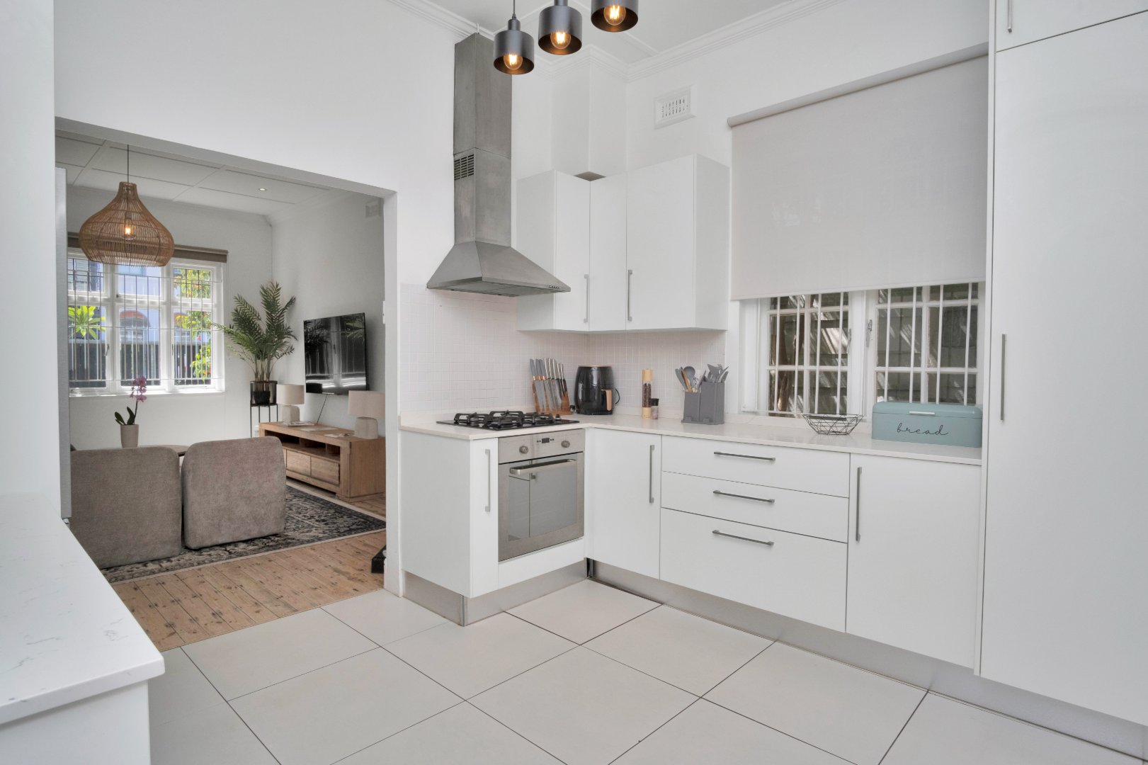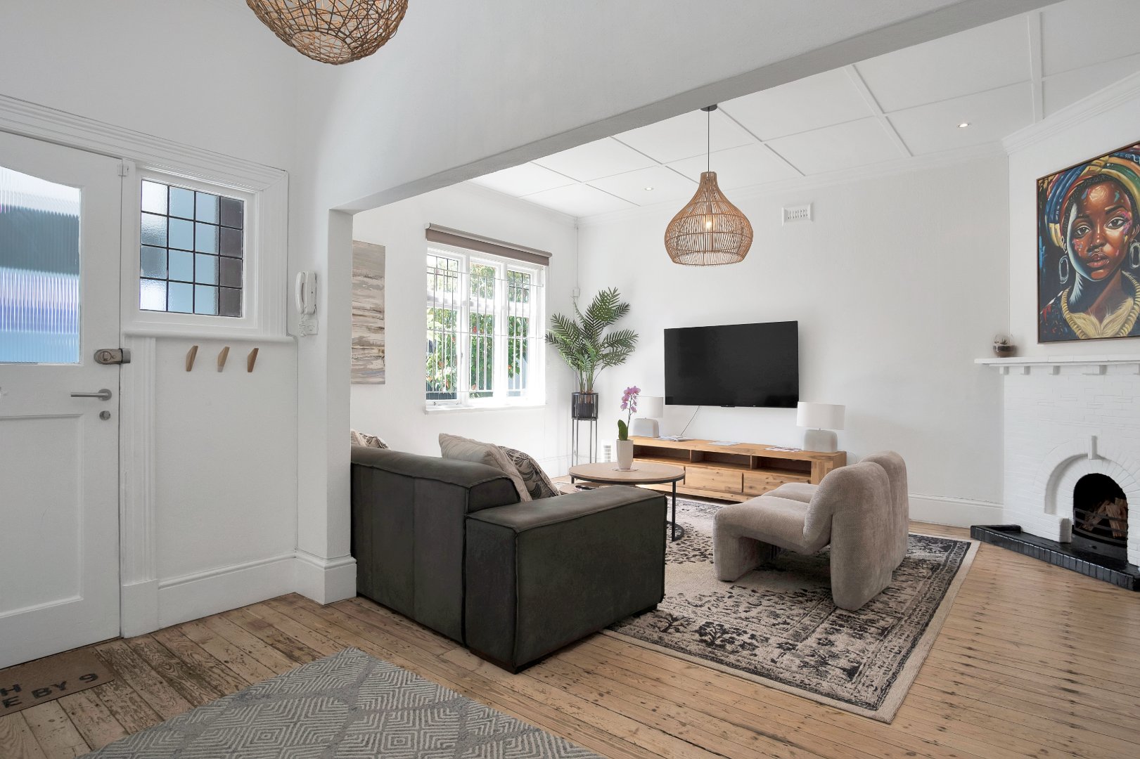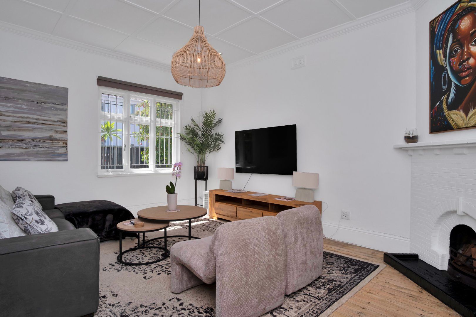 Step inside to a spacious open-plan living area filled with natural light, seamlessly flowing into a modern, fully equipped kitchen. A cozy indoor fireplace adds warmth and charm, creating the perfect space for relaxing evenings. The three well-sized bedrooms offer built-in cupboards, while the two elegant bathrooms, including a luxurious en-suite, ensure convenience and comfort.