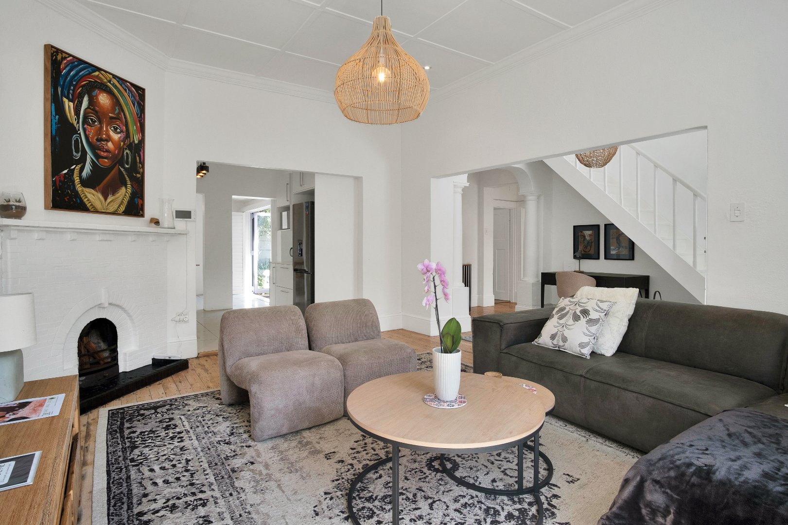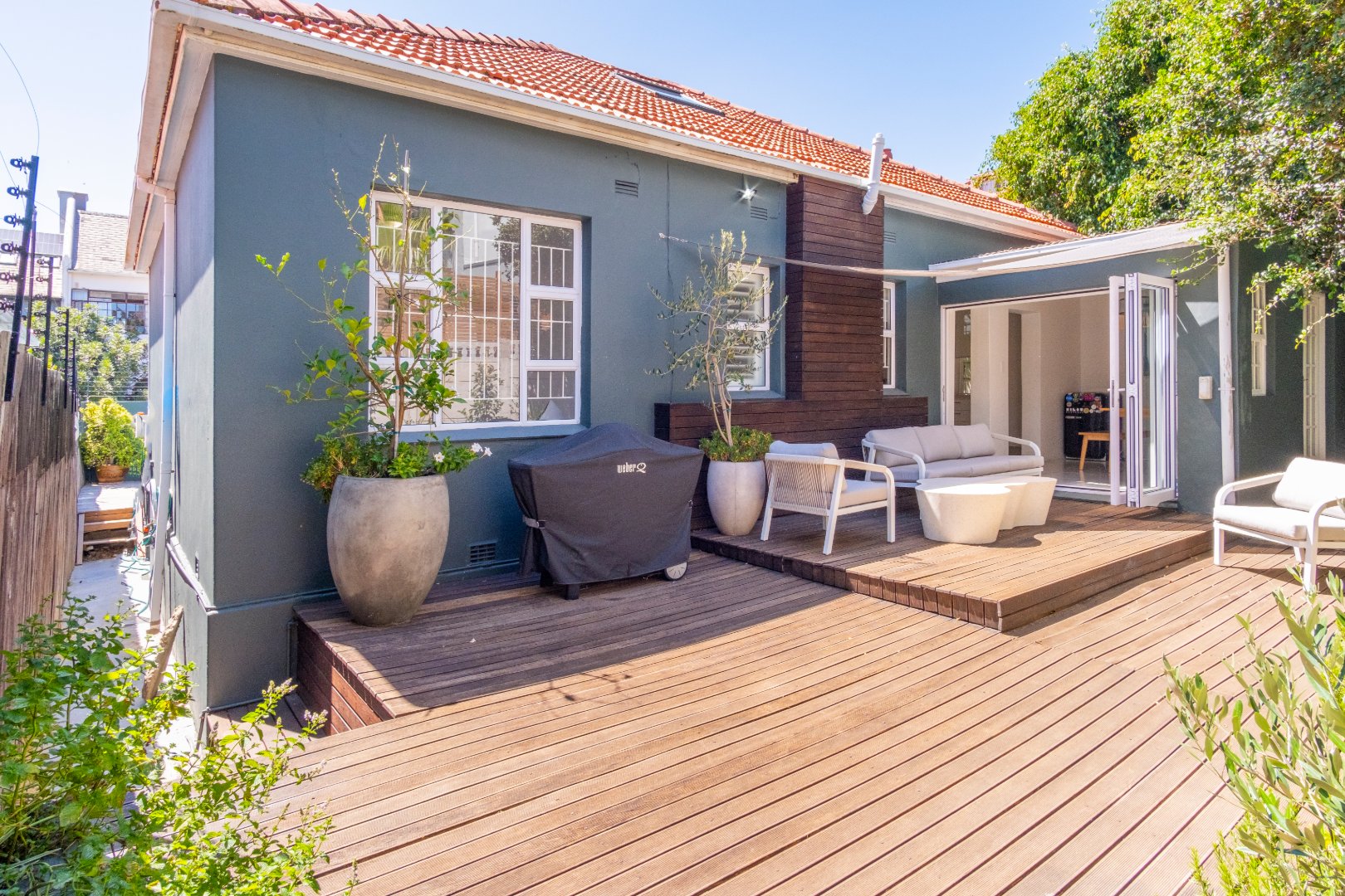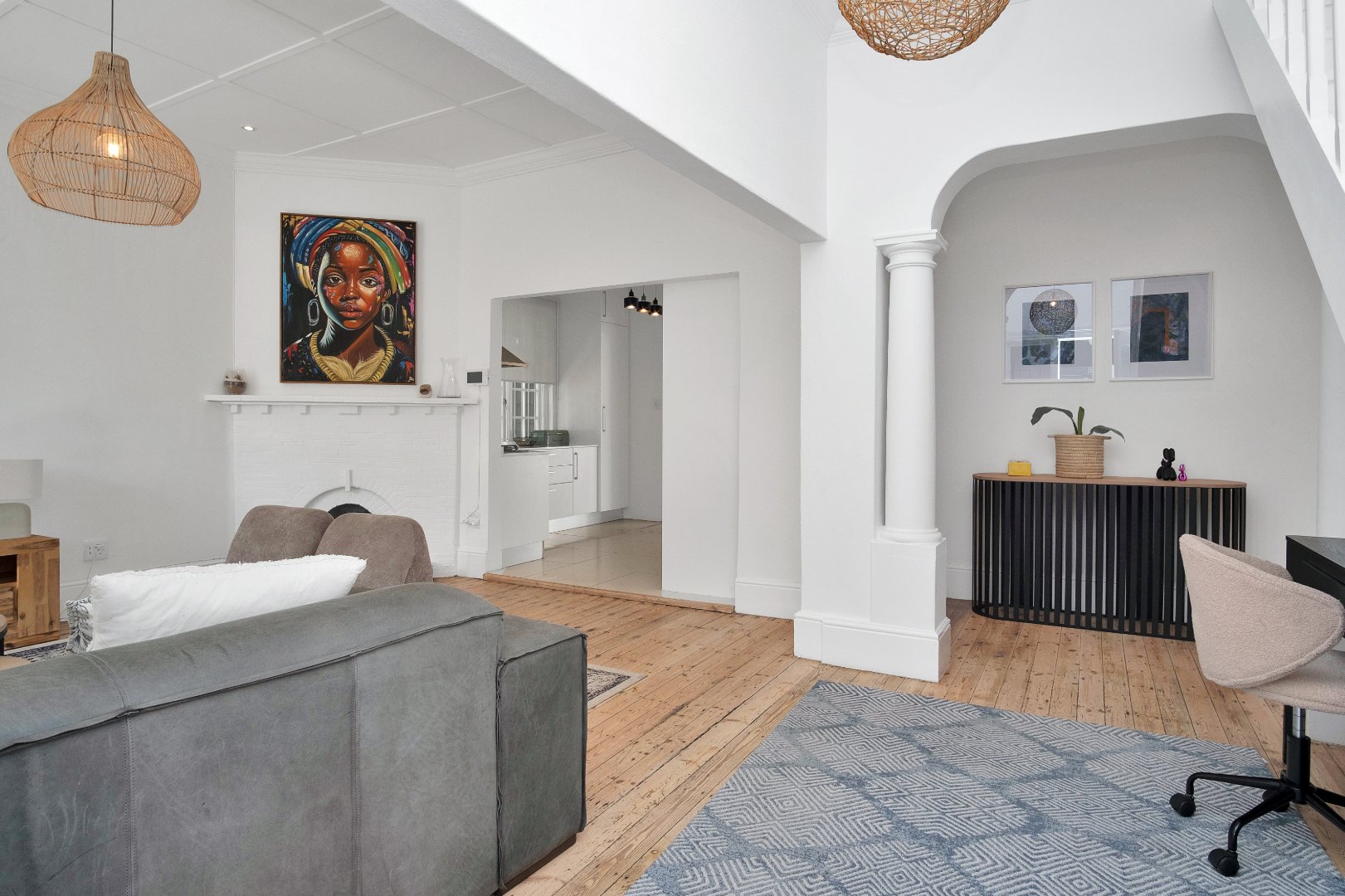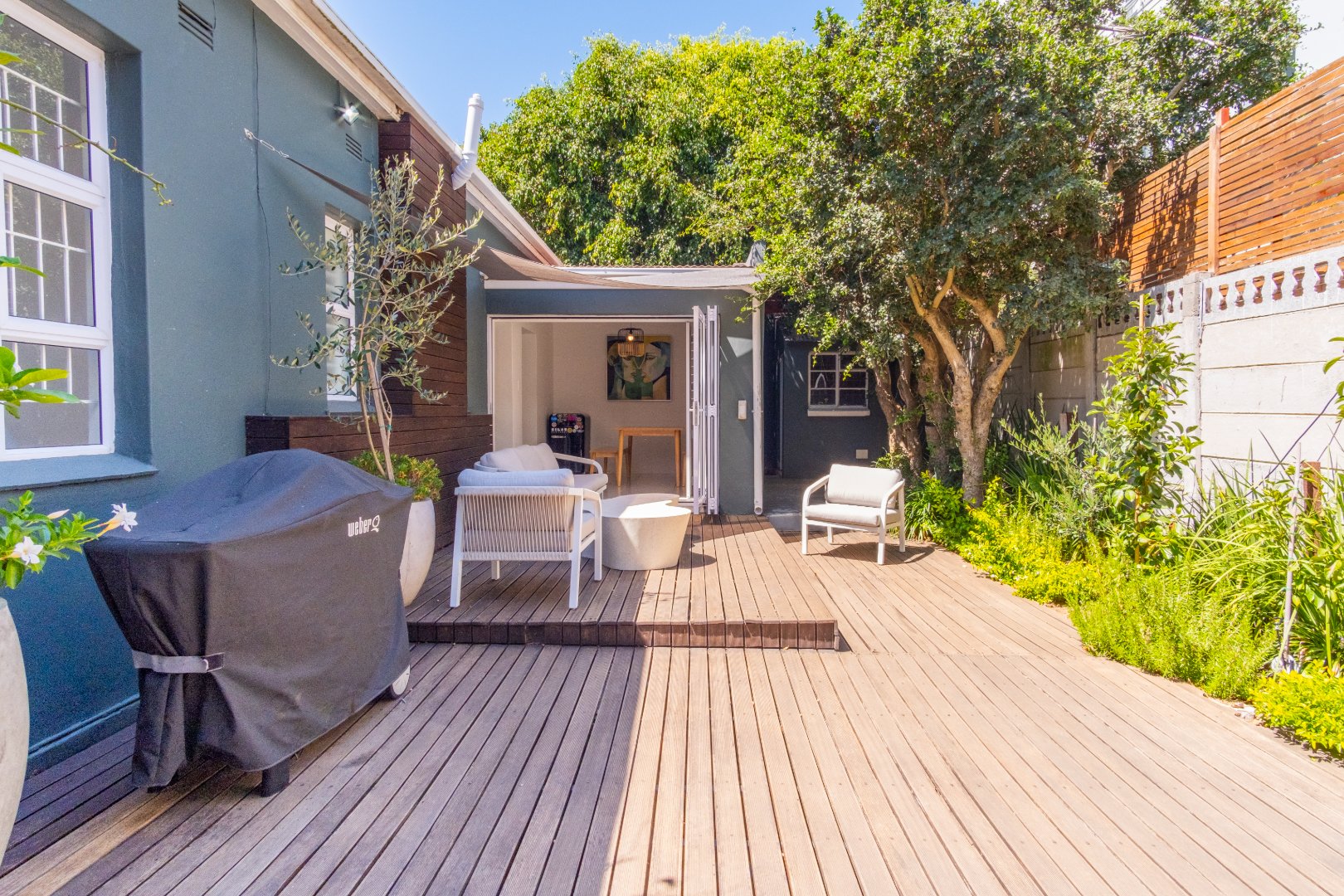 Step inside to a spacious open-plan living area filled with natural light, seamlessly flowing into a modern, fully equipped kitchen. A cozy indoor fireplace adds warmth and charm, creating the perfect space for relaxing evenings. The three well-sized bedrooms offer built-in cupboards, while the two elegant bathrooms, including a luxurious en-suite, ensure convenience and comfort.