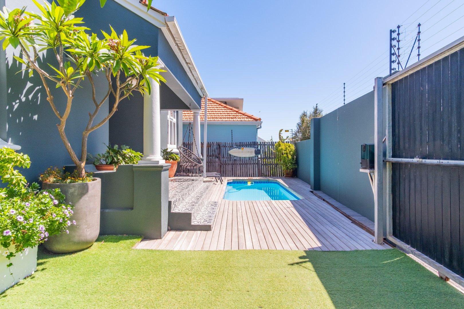 Outside, a sparkling pool invites you to unwind, surrounded by a private and secure garden—an ideal setting for children to play or for entertaining under the sun. Nestled in a safe neighborhood, this home offers peace of mind and a wonderful lifestyle.