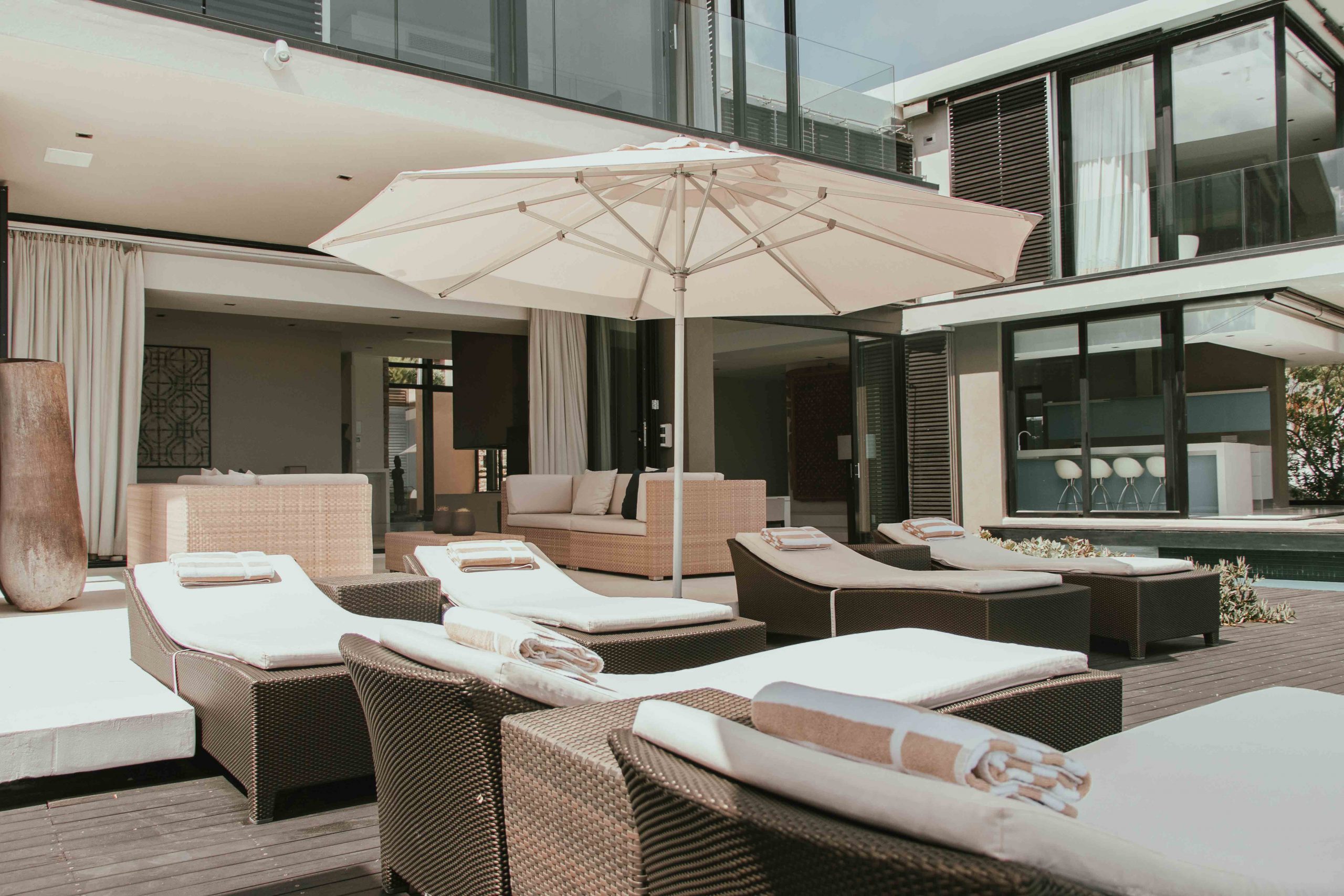 In a fynbos paradise. Being in the Cape, one of the world’s richest floral kingdoms, this villa is grounded in its own little piece of virgin fynbos heaven. Naturally beautiful in every way. A sun deck wraps around the perimeter of the villa, maximising views of the Twelve Apostles peaks, Table Mountain, Camps Bay beach and the painterly sunsets that the Cape’s Atlantic horizon is famous for. Located in the cosmopolitan seaside village of Camps Bay, Serenity is an easy walk to Cape Town’s best rated restaurants, vibrant beach bars and pristine palm-lined beaches. Camps Bay is internationally known for its startling natural beauty. Serenity is situated 8kms from the waterfront and city centre, 1km from Camps Bay village and 90kms from the Cape of Good Hope.
