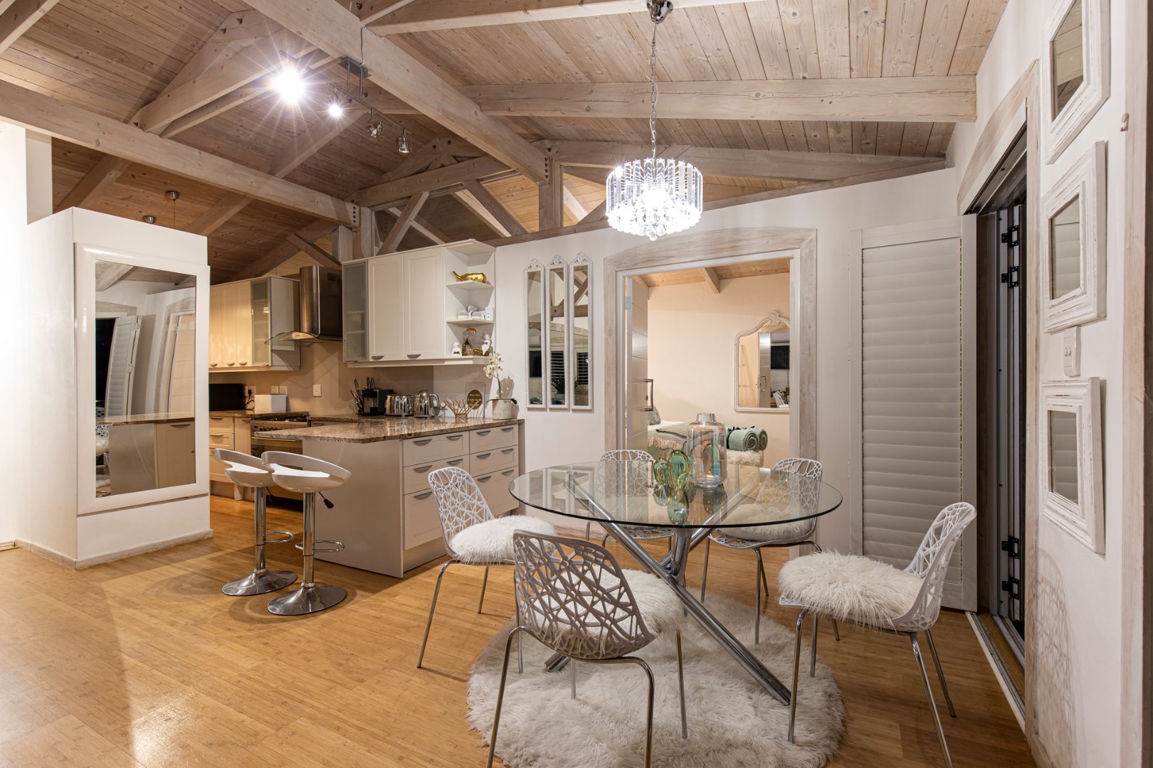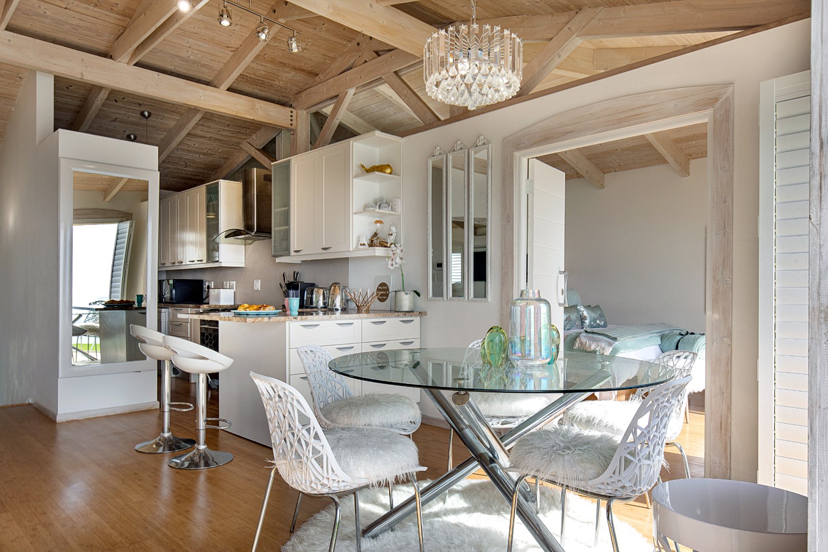 Entering this amazingly furnished penthouse with exposed wooden beams of the vaulted ceiling with airconditioning throughout, the open-plan living area, dining room, and kitchen that is equipped with all the necessary amenities. Step out onto the balcony to enjoy breathtaking sunset views and listen to the waves of the Atlantic Ocean breaking onto Clifton Beach.