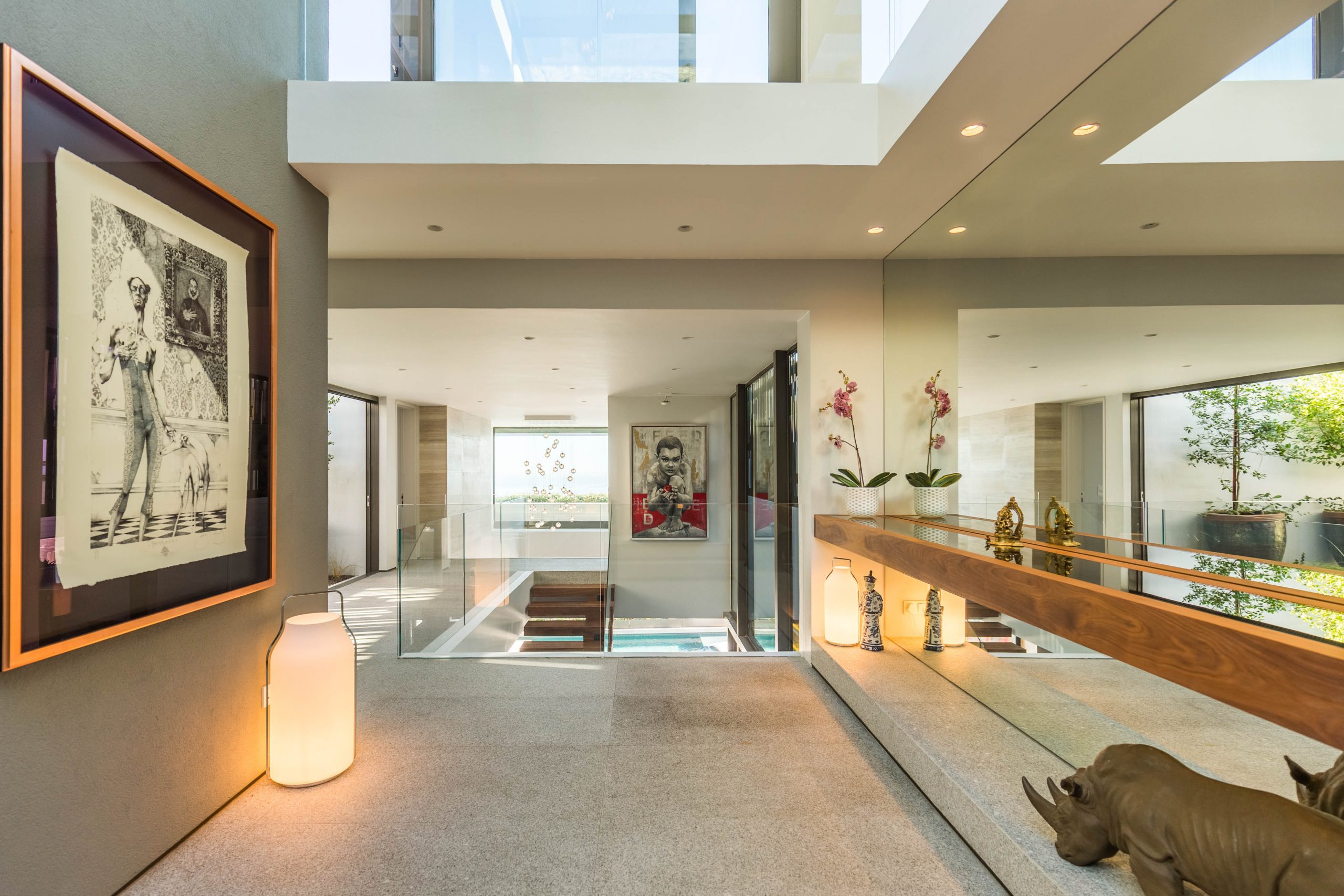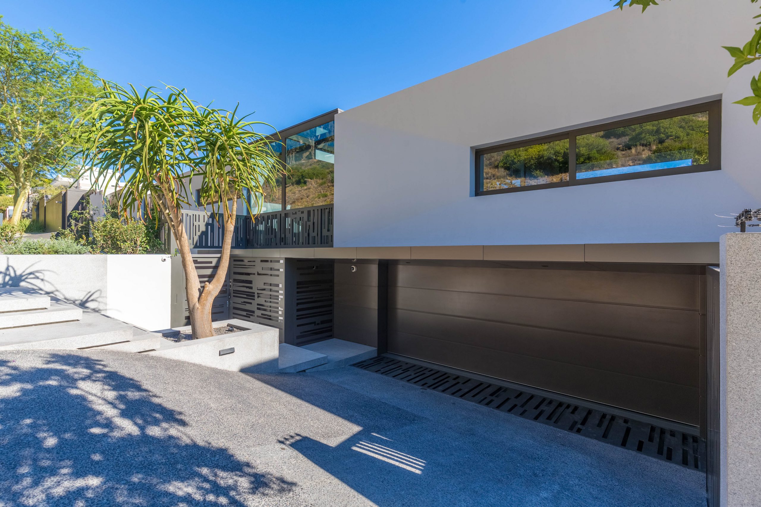 Its 600 square meters of space feature generous amounts of textured granite, warm walnut and luxurious marble which form the neutral backdrop for its vibrant contemporary interiors and its impressive collection of art from across the globe. Superb attention to every aspect of its interior detail ensures that each and every area of the home and its ensuite bedrooms are individually distinct & luxurious. A stunning laser cut steel and glass entrance forms the starting point of a journey into a luxury villa epitomised by quiet interior garden spaces and large picture windows with ocean and mountain views. The views of the Atlantic Ocean & Robben Island from every single room through-out the house are simply unsurpassed and provide stiff competition to the equally dramatic views of Lion’s Head from many areas of this luxury villa.
