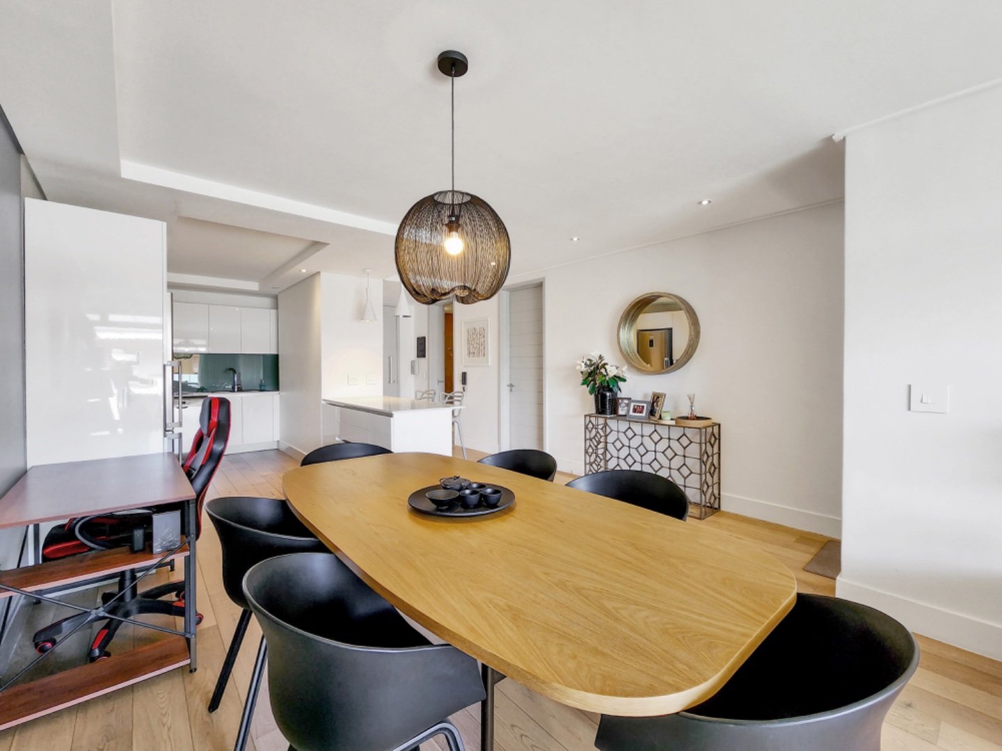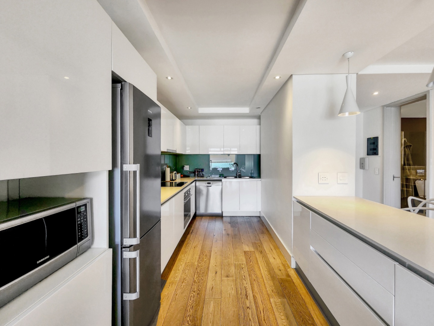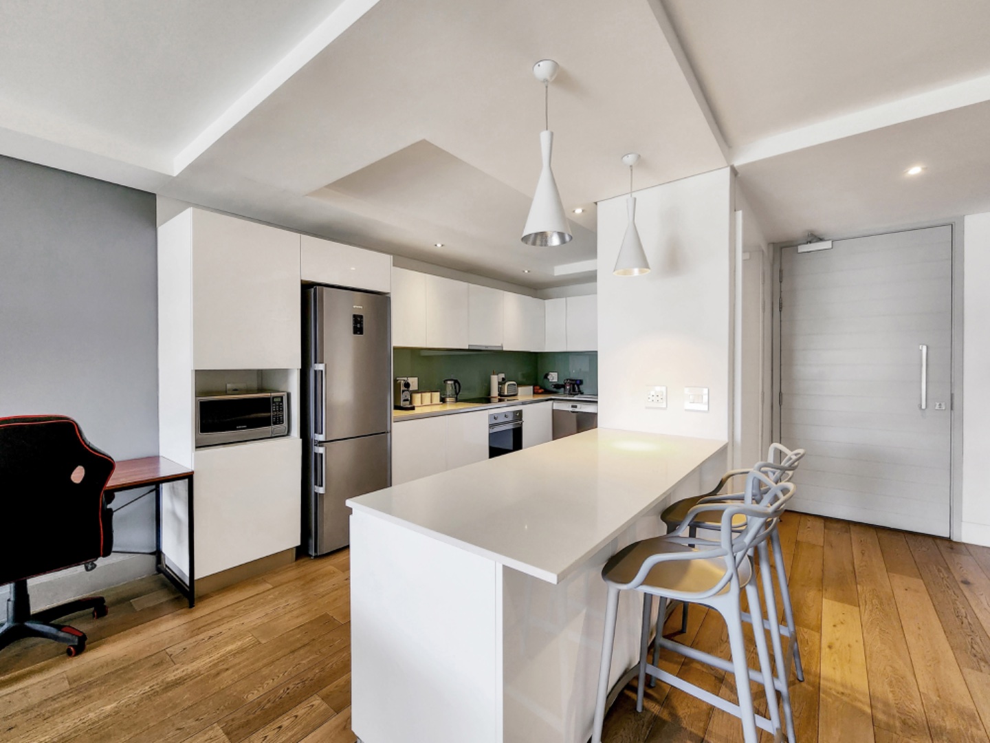 The apartment is equipped with integrated SMEG appliances, featuring soft-touch doors for a sleek and functional kitchen that’s perfect for cooking enthusiasts.