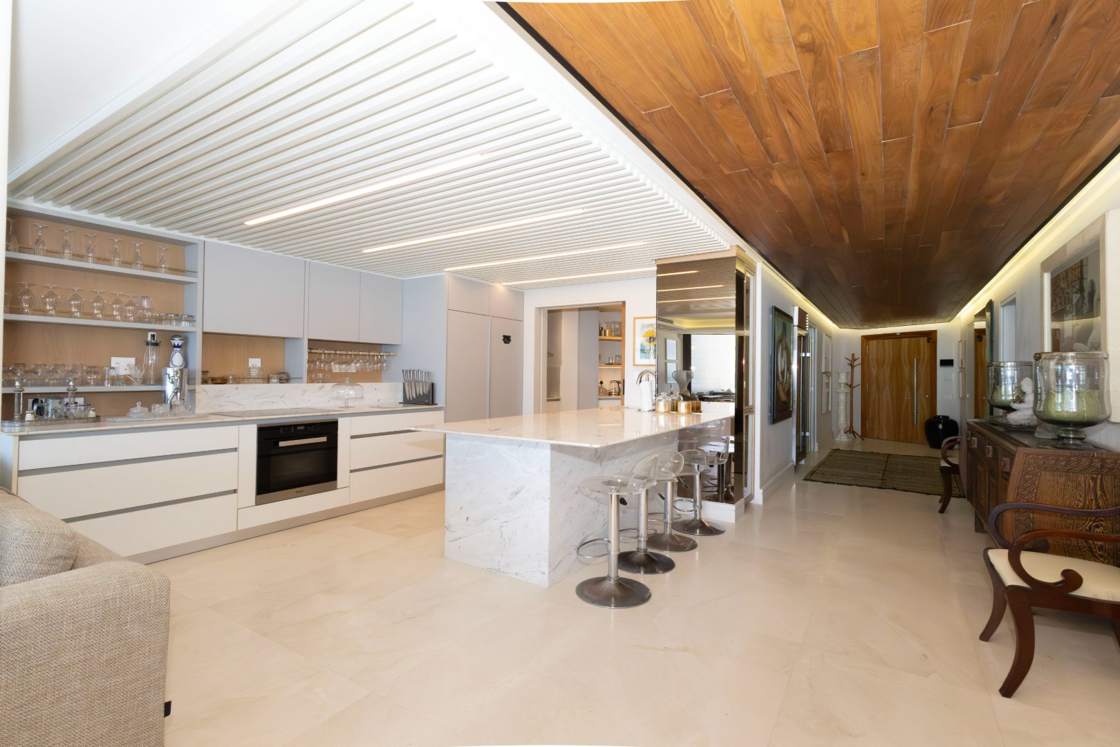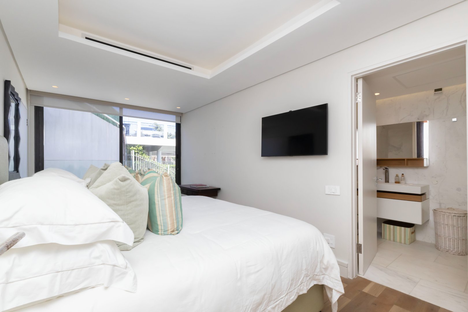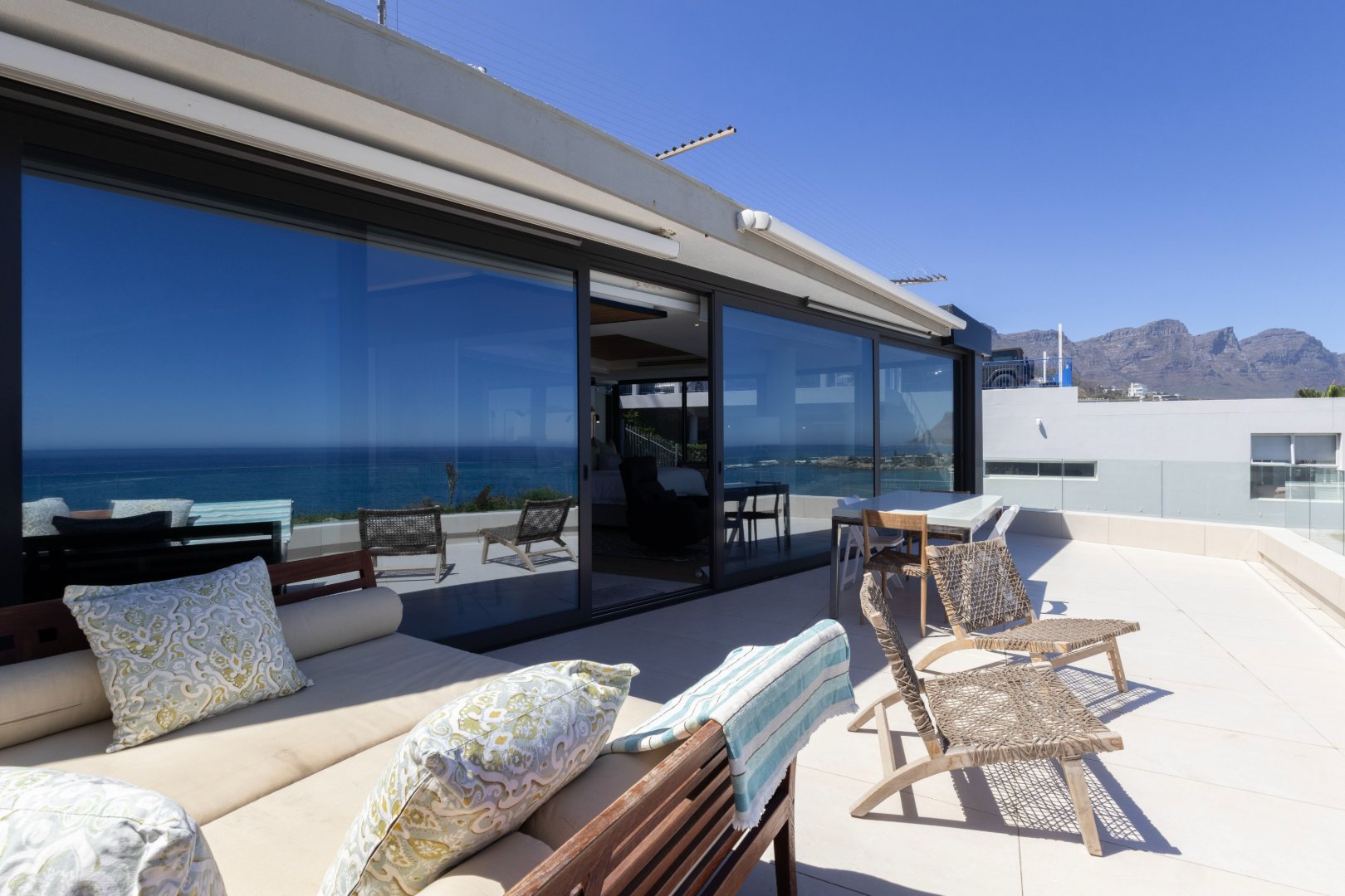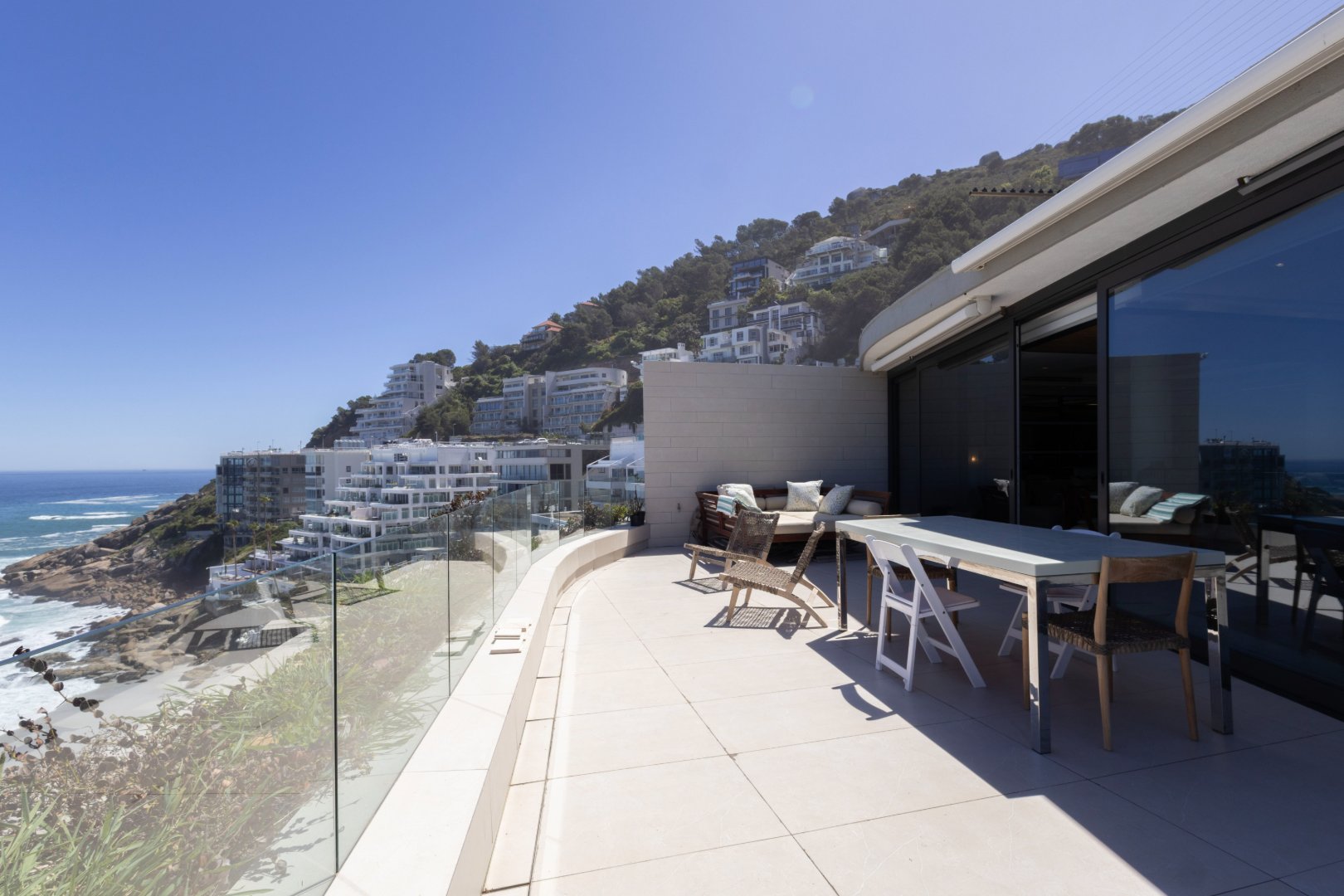 Exquisitely furnished and impeccably styled, the apartment offers a seamless blend of contemporary sophistication and effortless comfort. Expansive open-plan living and dining areas flow onto a private ocean-facing terrace offering an idyllic setting for sunset entertaining with uninterrupted views of the Atlantic.