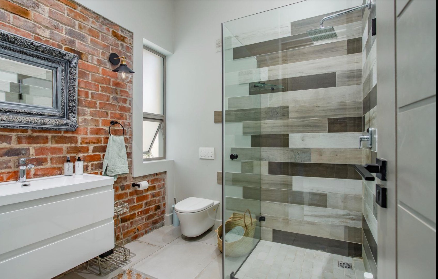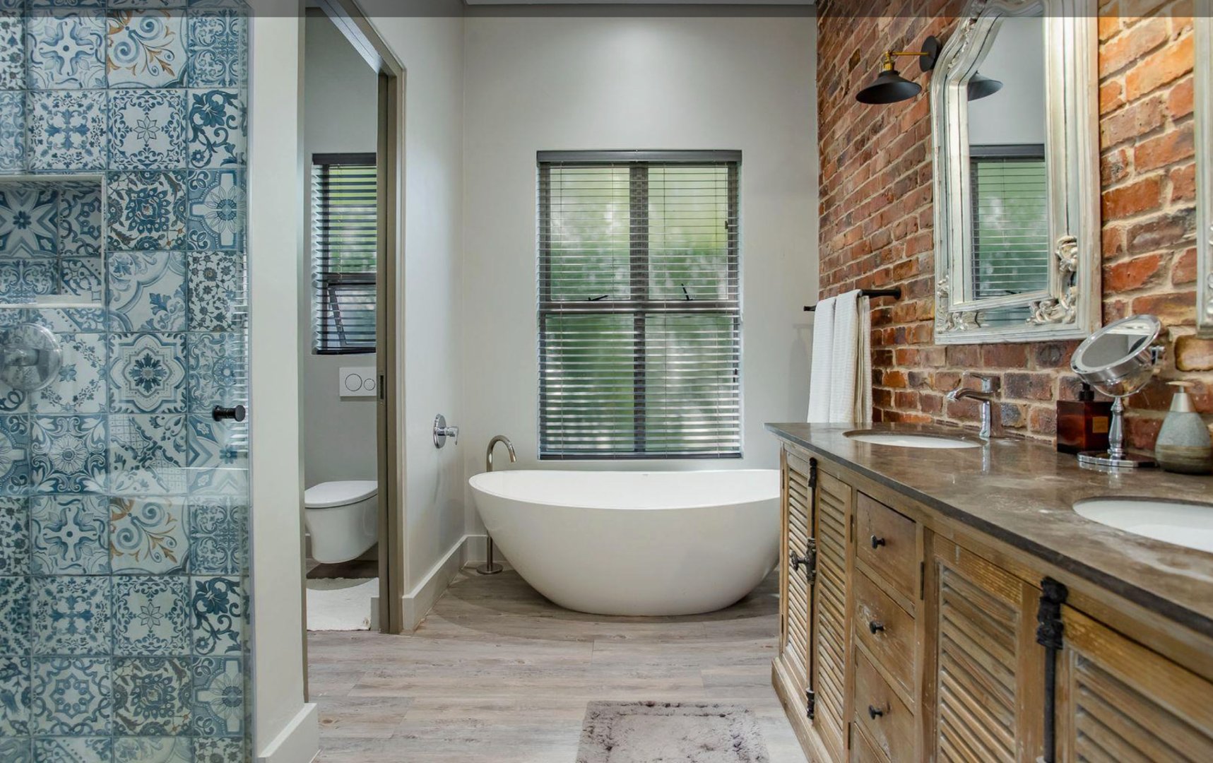 The modern bathrooms are finished with quality materials and a sophisticated aesthetic, reflecting the home’s overall attention to detail and timeless design.