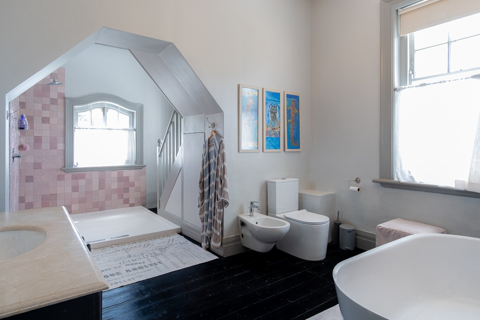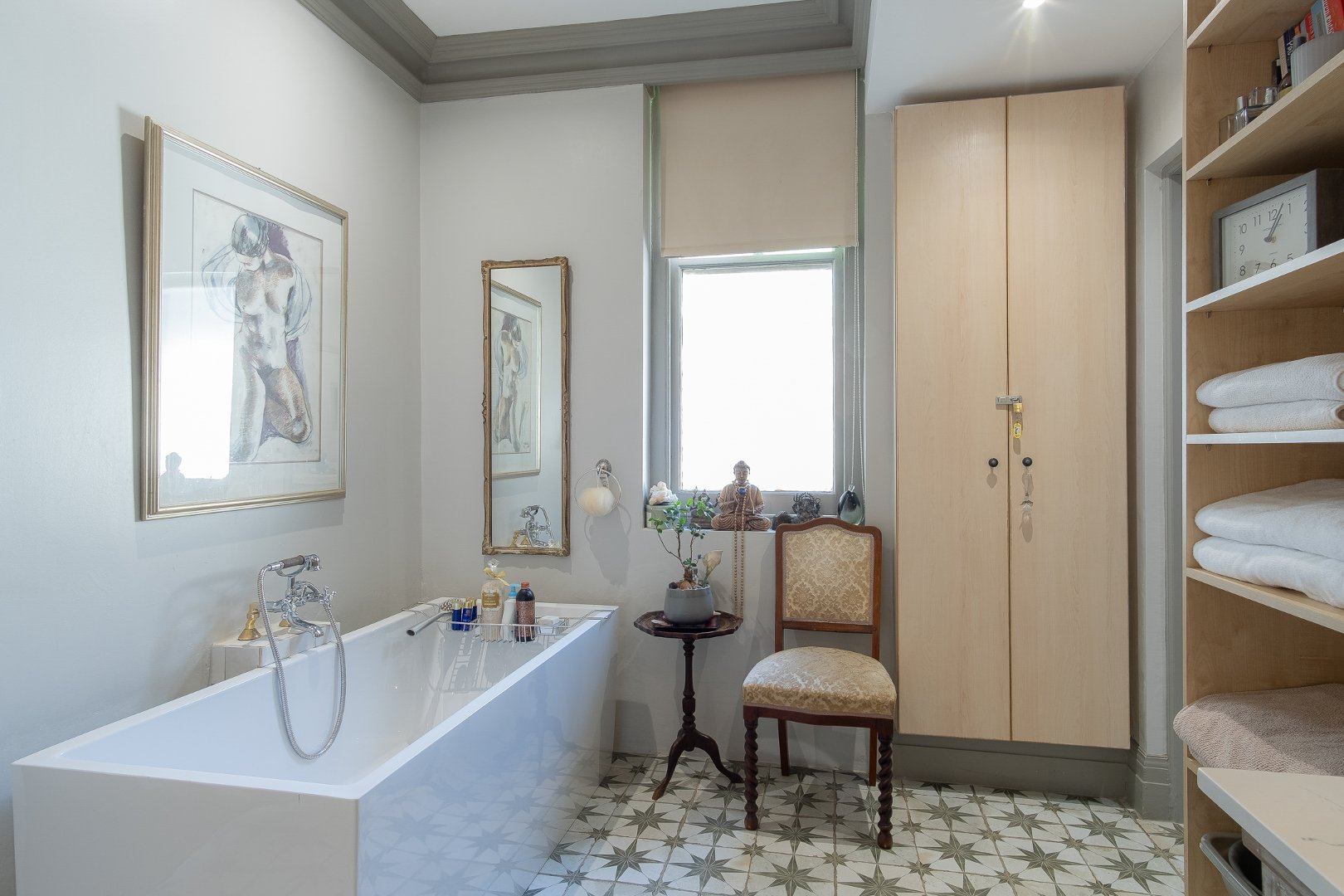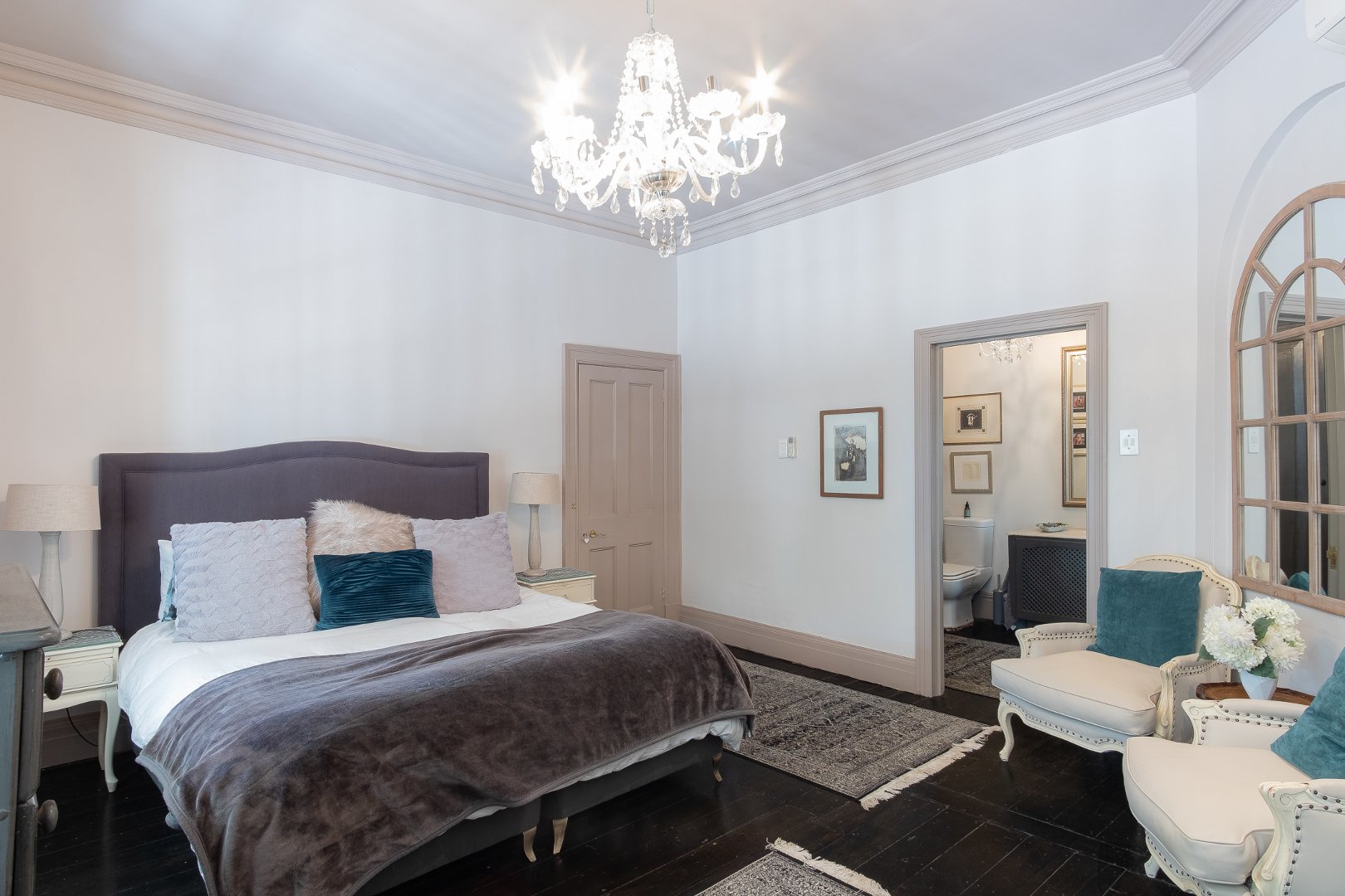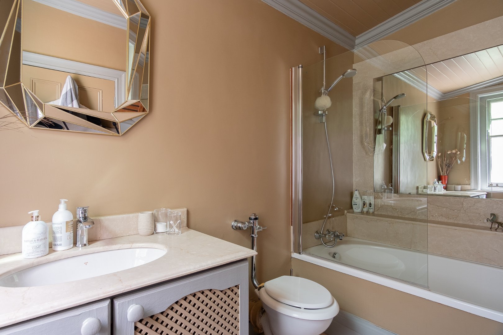 Ascend the staircase to the upper-level accommodations, where a generous landing connects to four generously sized bedrooms, each boasting its own en-suite bathroom and fireplace, along with ample built-in storage. Two of these bedrooms open onto private sunlit balconies, offering a tranquil spot for morning coffee or evening breezes.