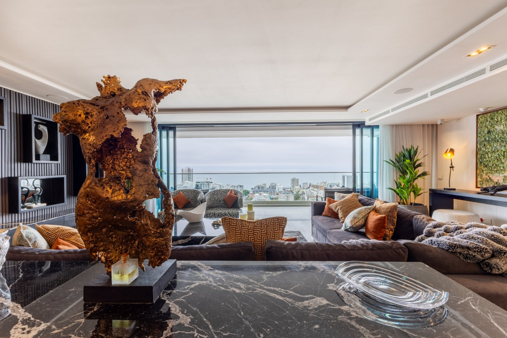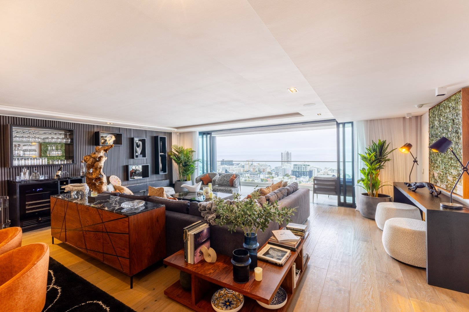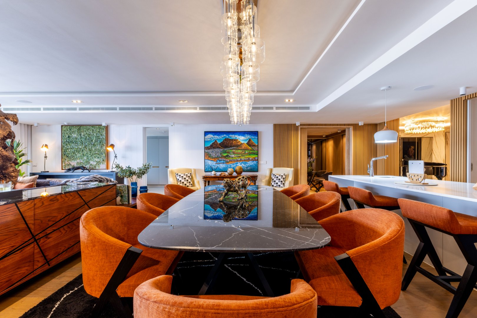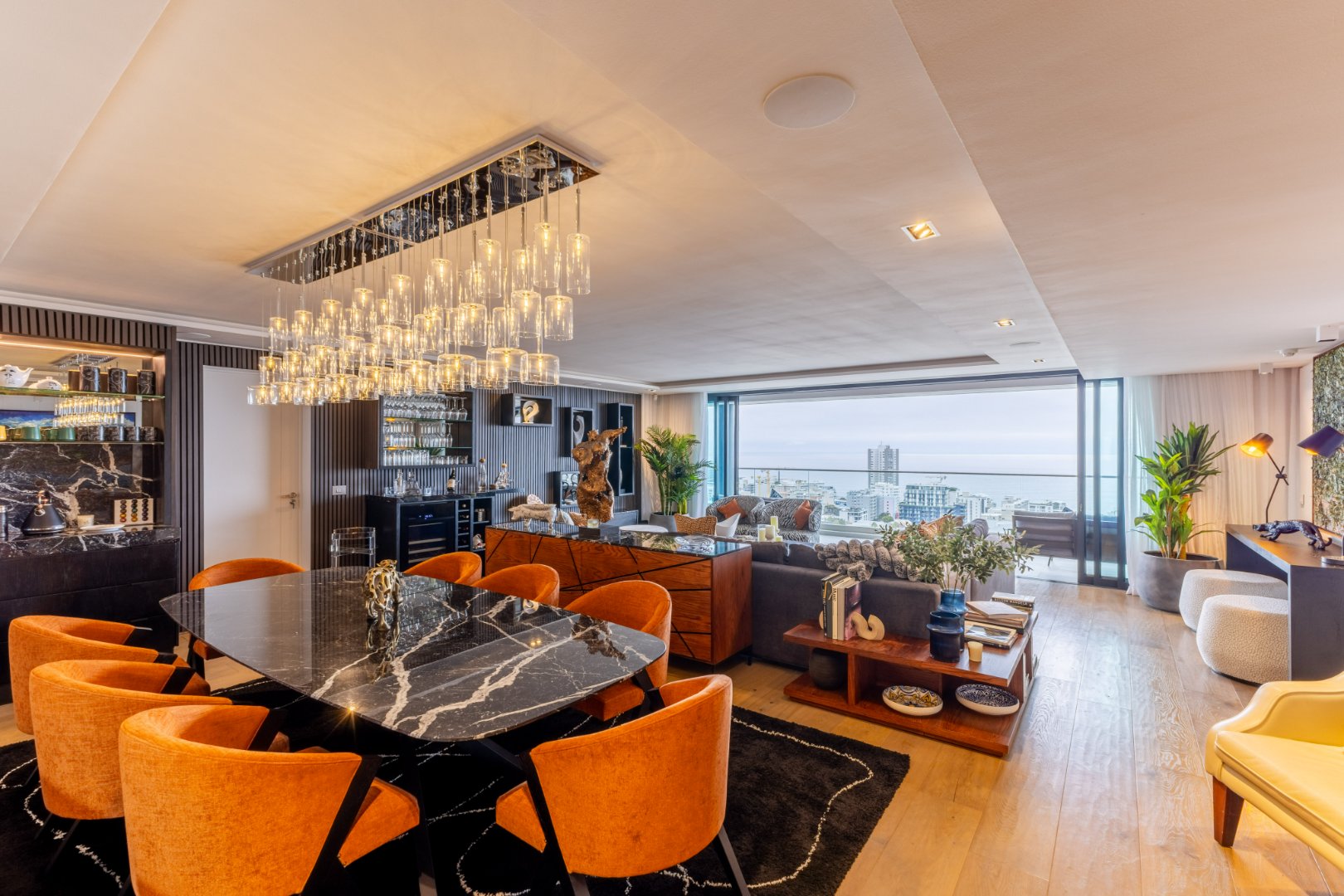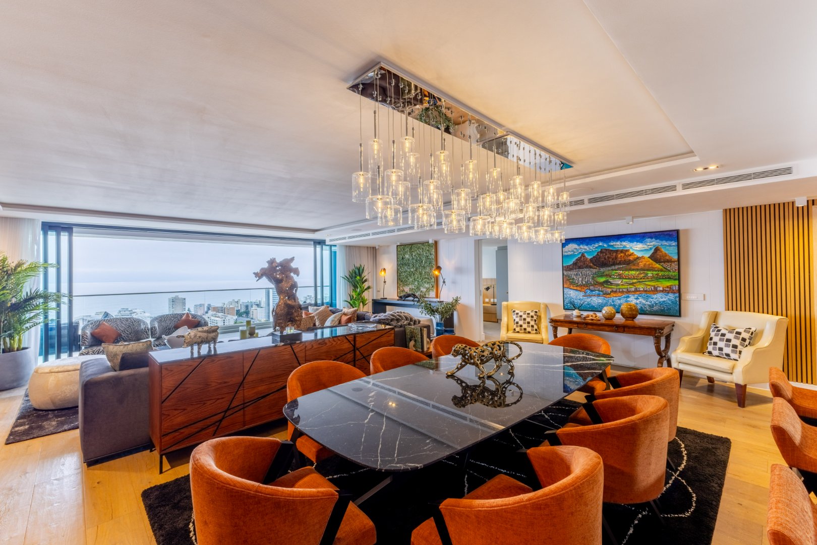 Suspended above the city with 342m² of reimagined luxury, this residence offers a rare balance of light, volume, and design. The arrival experience sets the tone — a striking piano foyer ushers you into interiors framed by sweeping views of the ocean and mountains.
