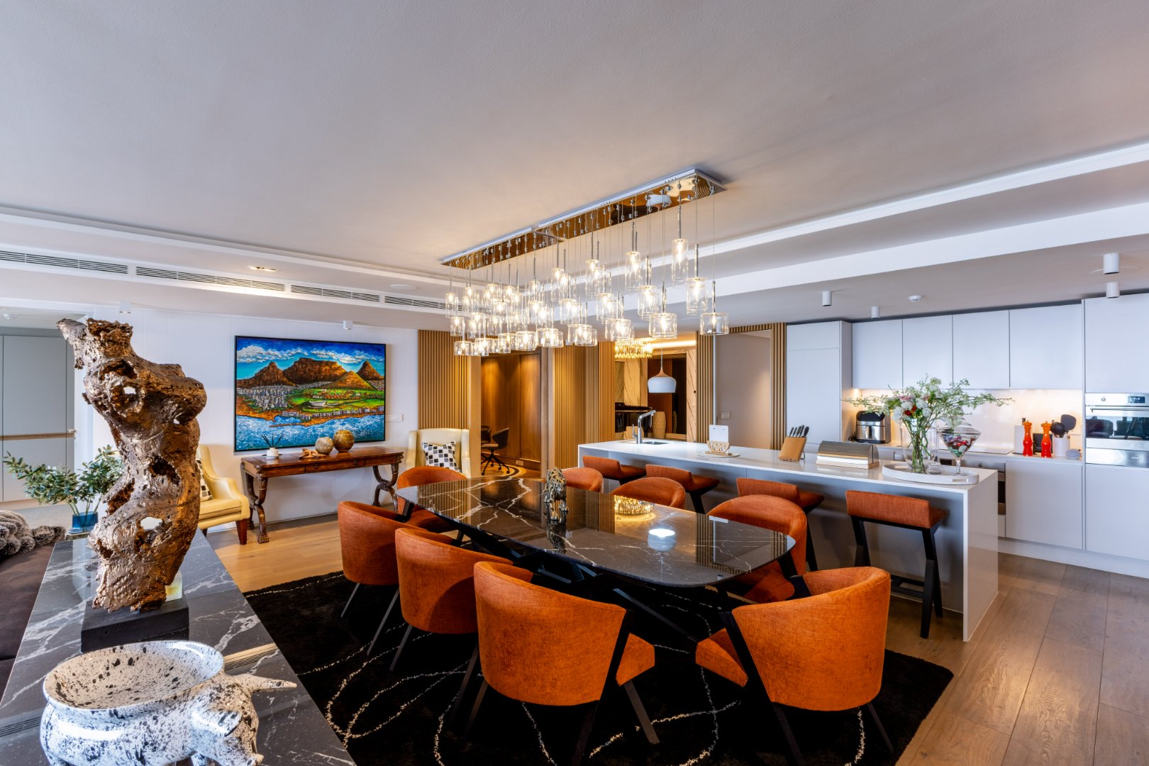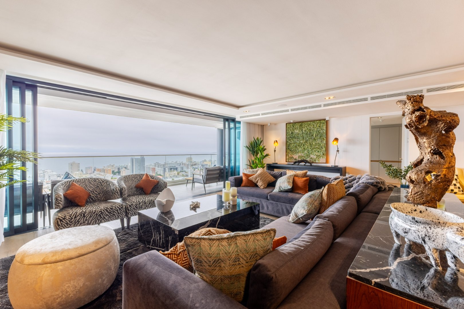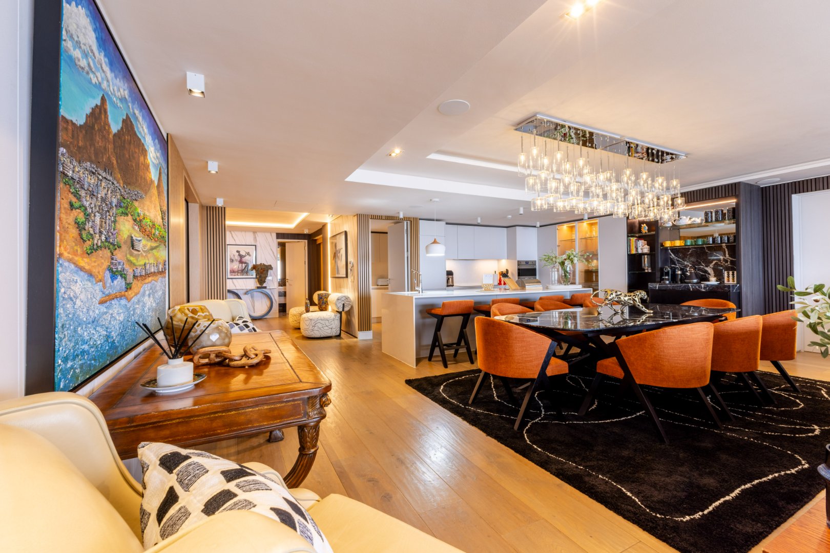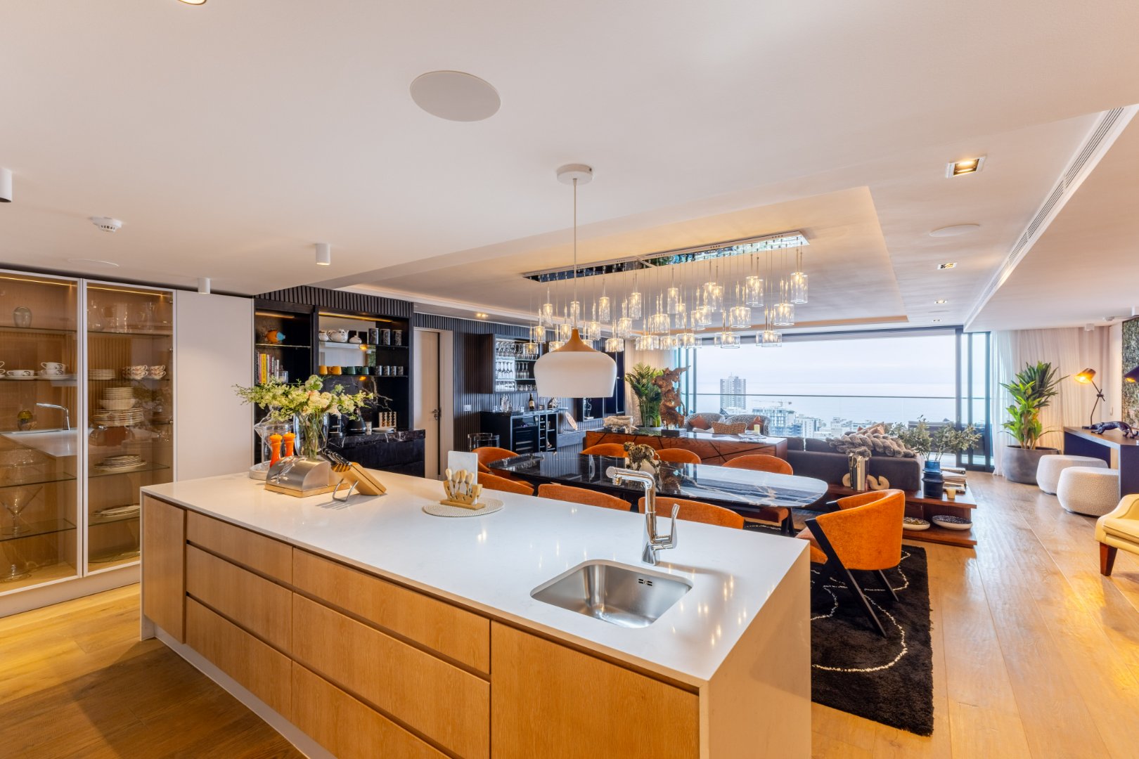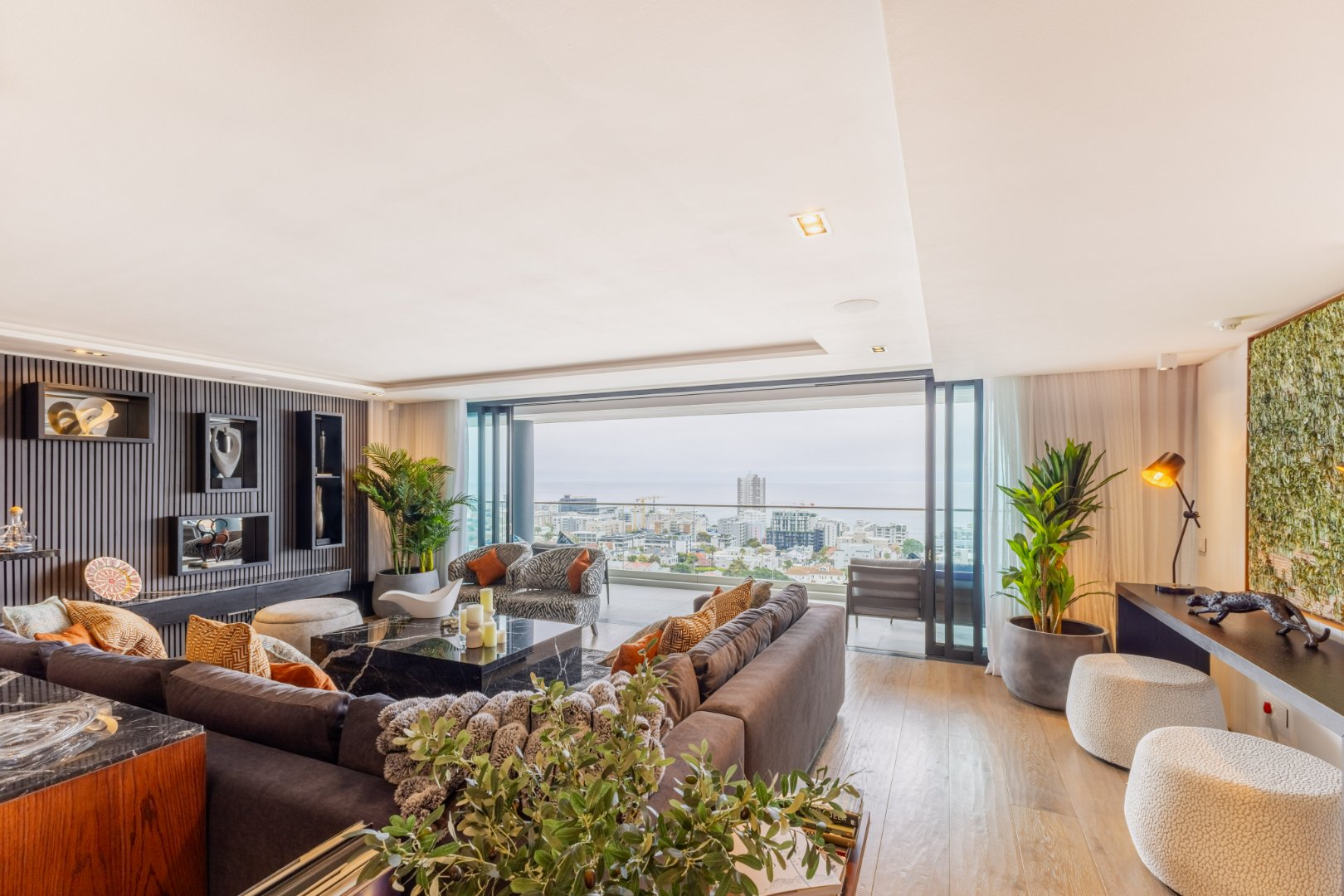 Suspended above the city with 342m² of reimagined luxury, this residence offers a rare balance of light, volume, and design. The arrival experience sets the tone — a striking piano foyer ushers you into interiors framed by sweeping views of the ocean and mountains.