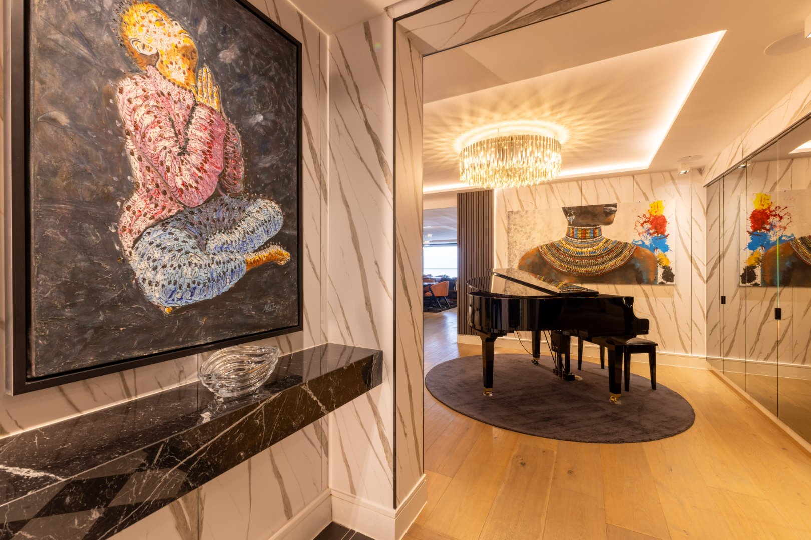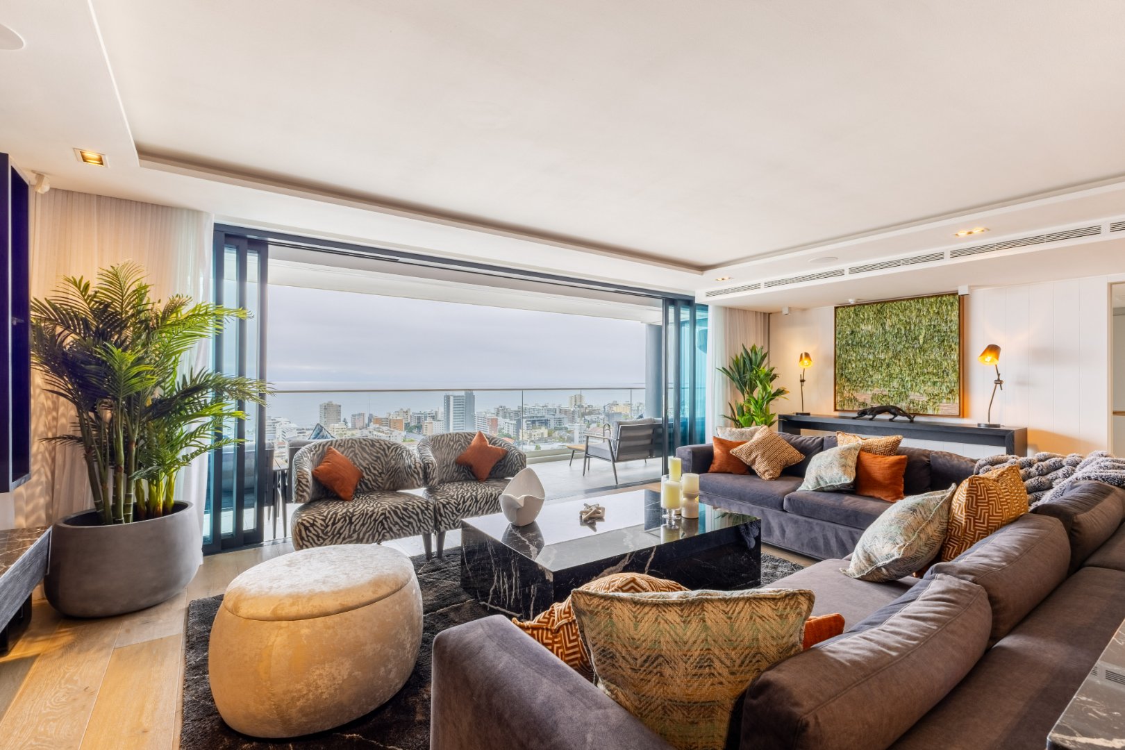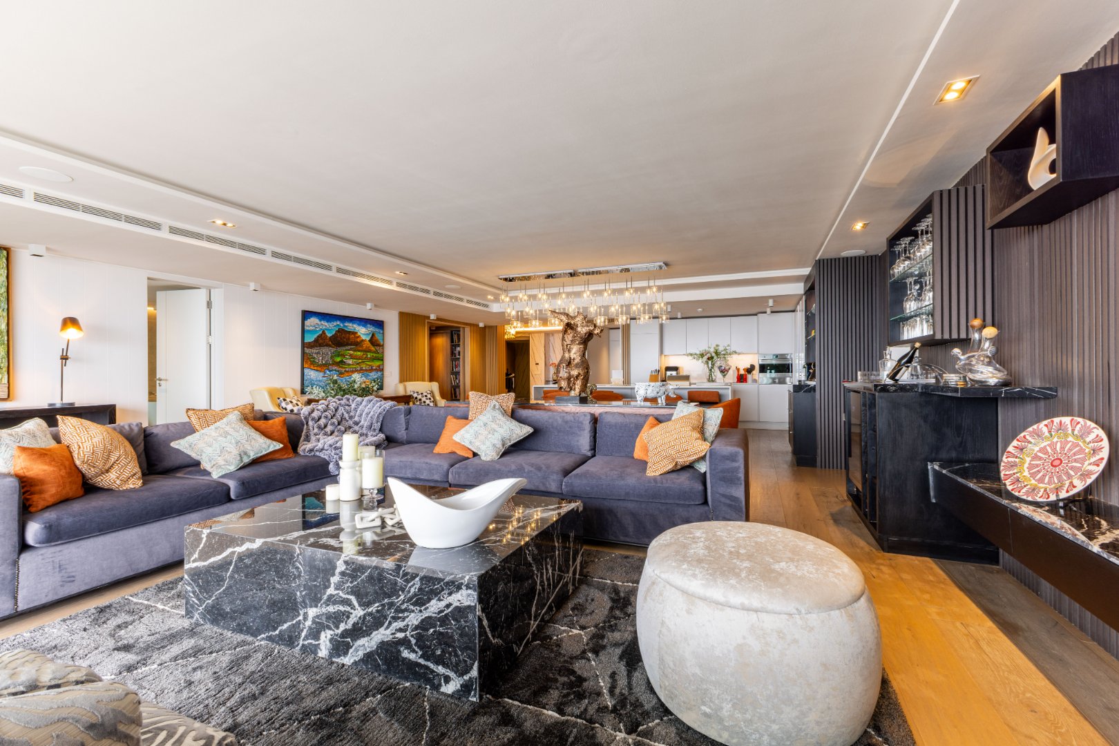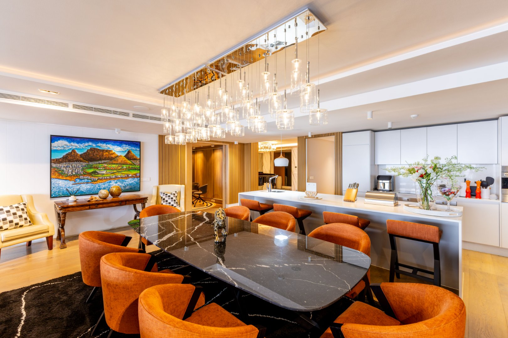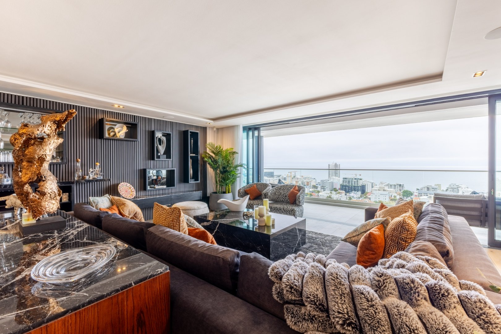 Suspended above the city with 342m² of reimagined luxury, this residence offers a rare balance of light, volume, and design. The arrival experience sets the tone — a striking piano foyer ushers you into interiors framed by sweeping views of the ocean and mountains.