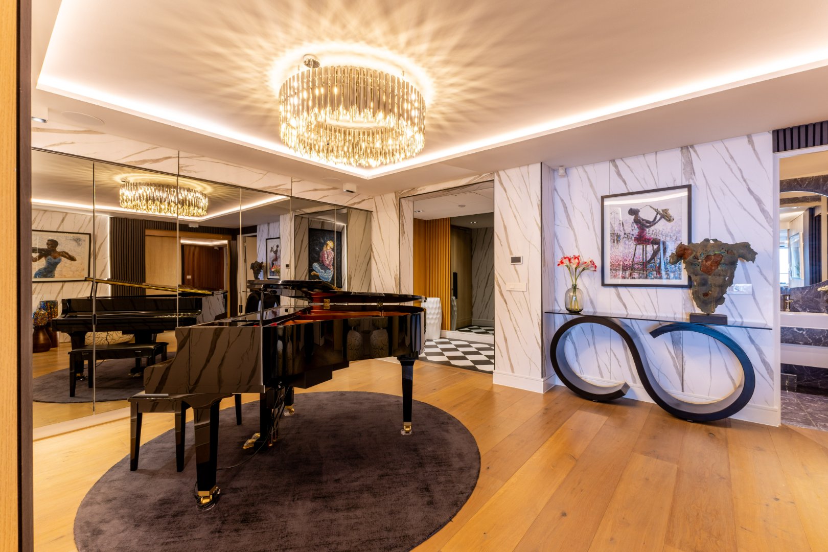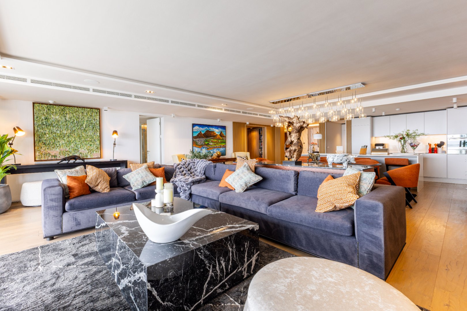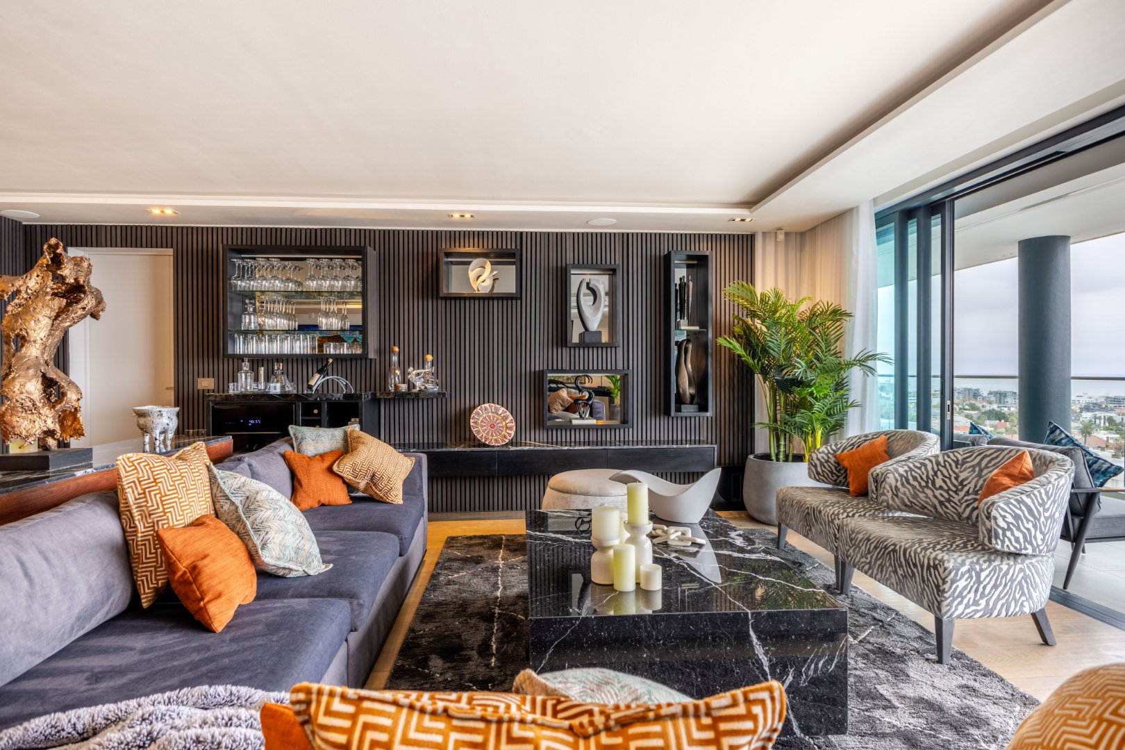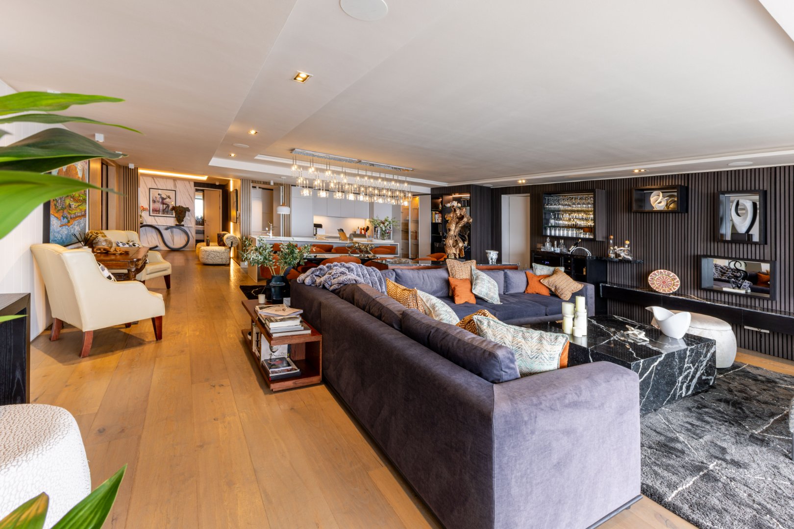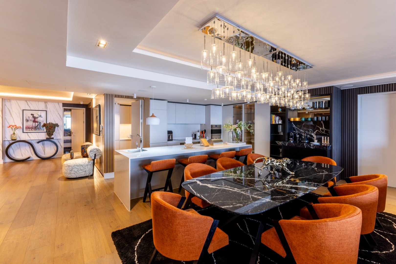 Suspended above the city with 342m² of reimagined luxury, this residence offers a rare balance of light, volume, and design. The arrival experience sets the tone — a striking piano foyer ushers you into interiors framed by sweeping views of the ocean and mountains.