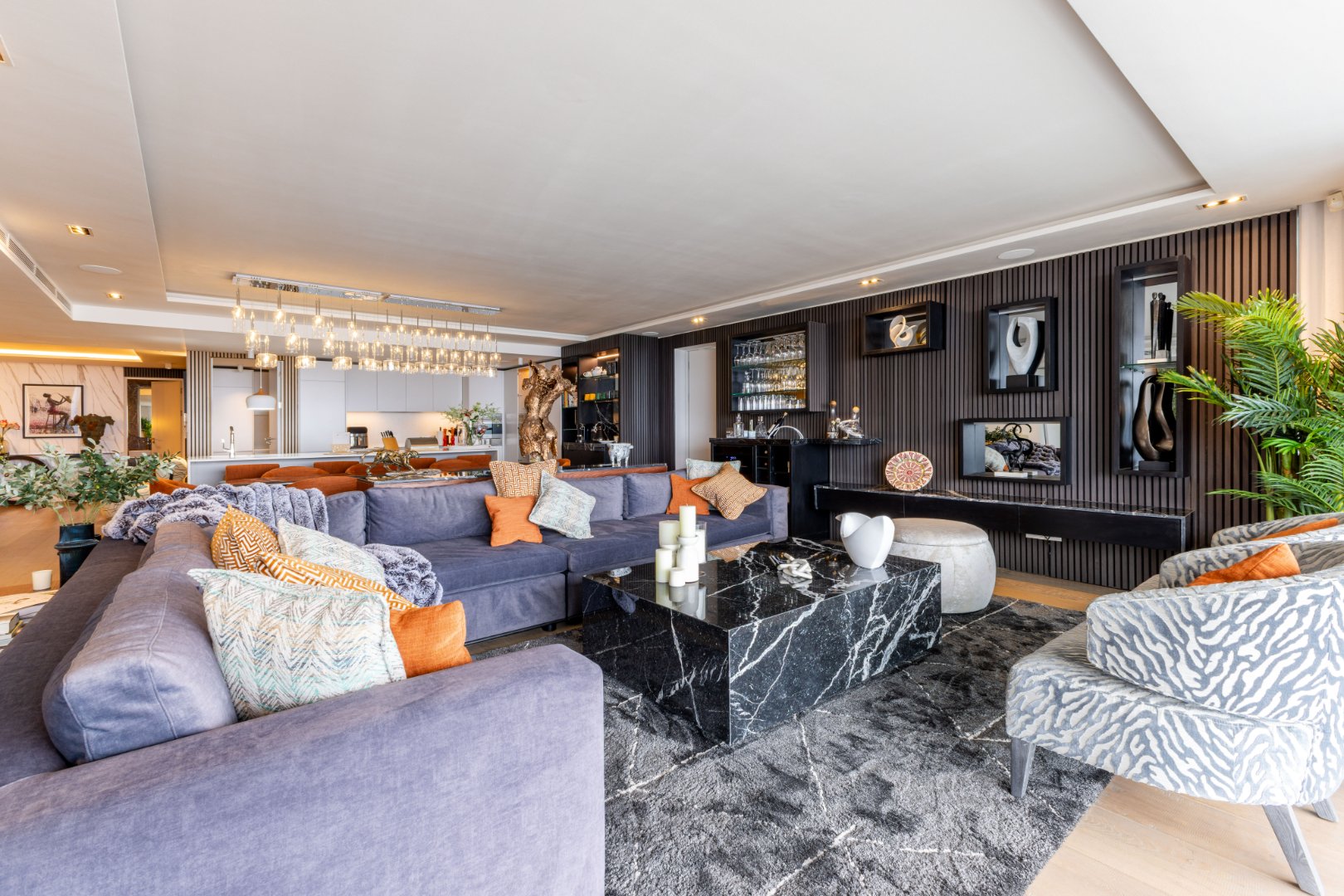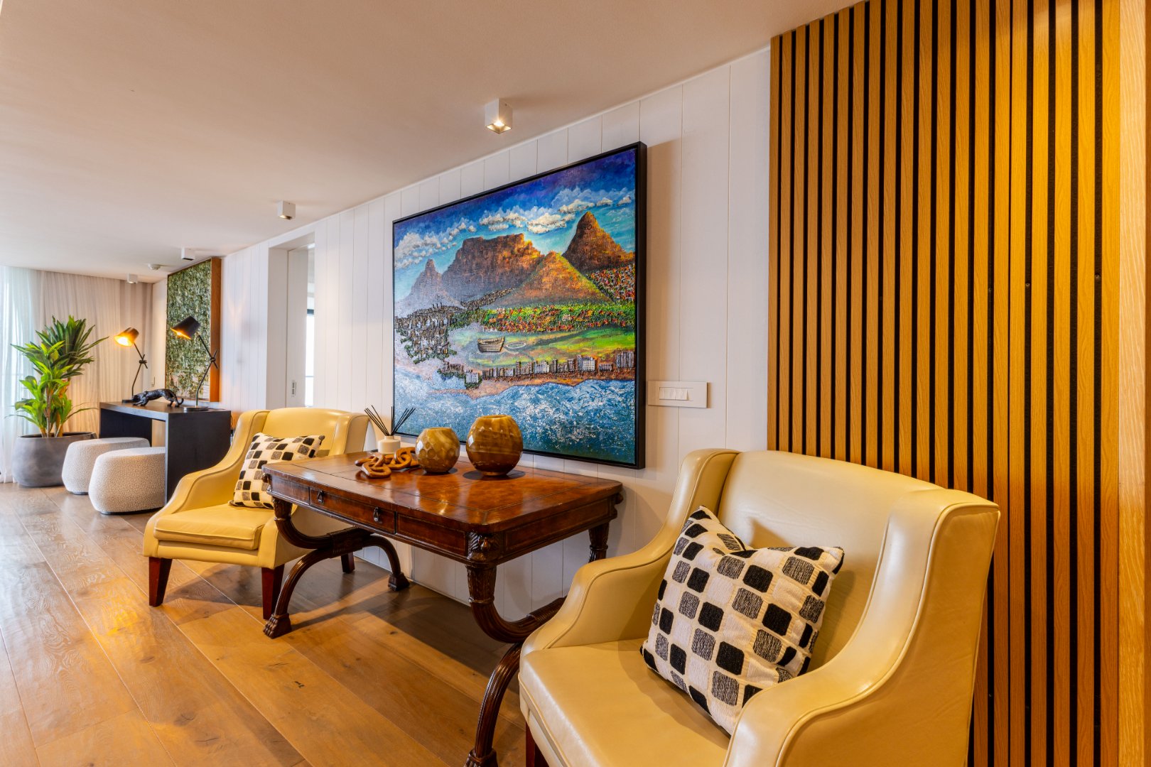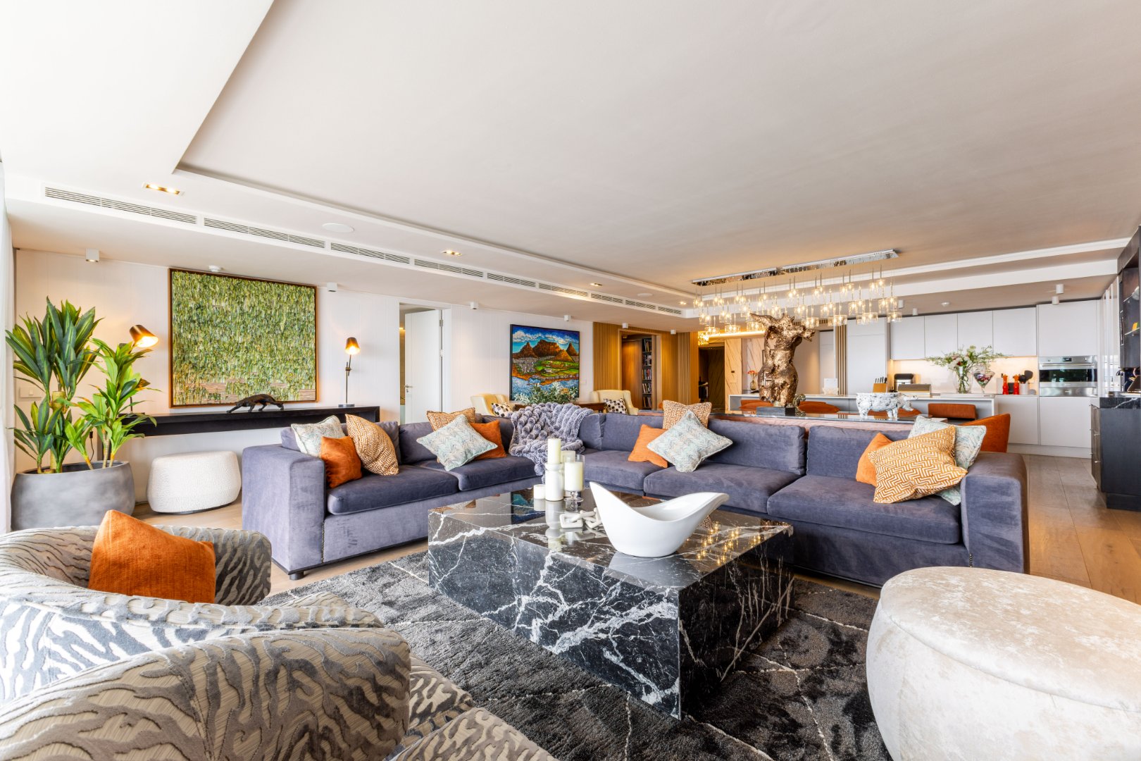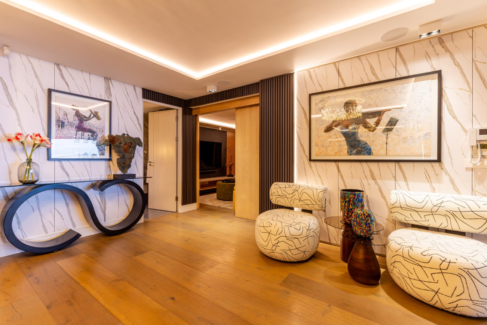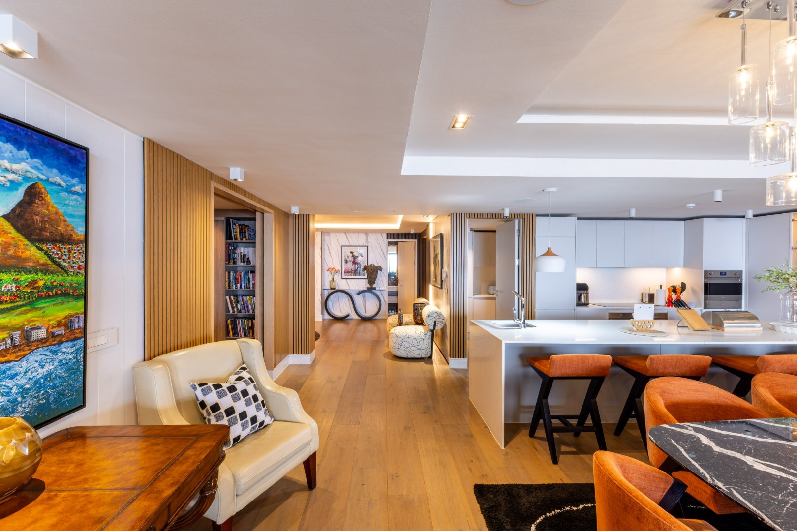 Suspended above the city with 342m² of reimagined luxury, this residence offers a rare balance of light, volume, and design. The arrival experience sets the tone — a striking piano foyer ushers you into interiors framed by sweeping views of the ocean and mountains.