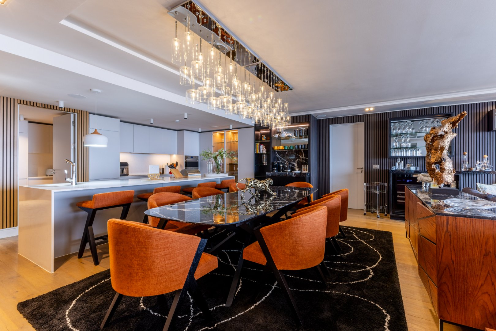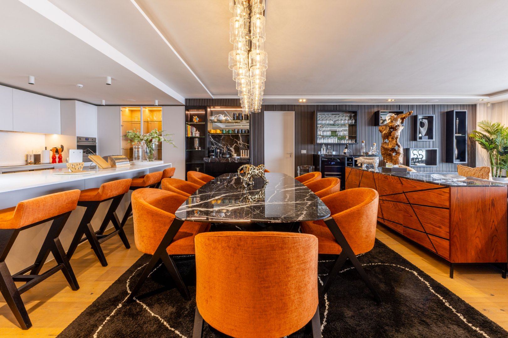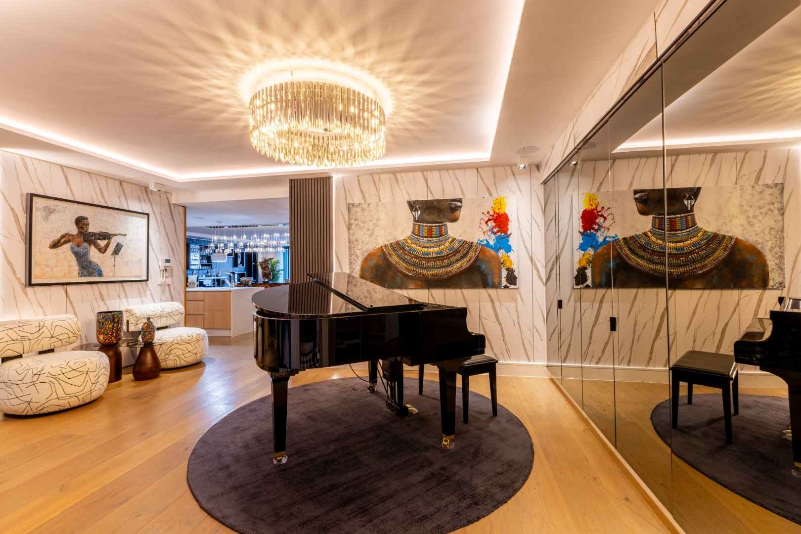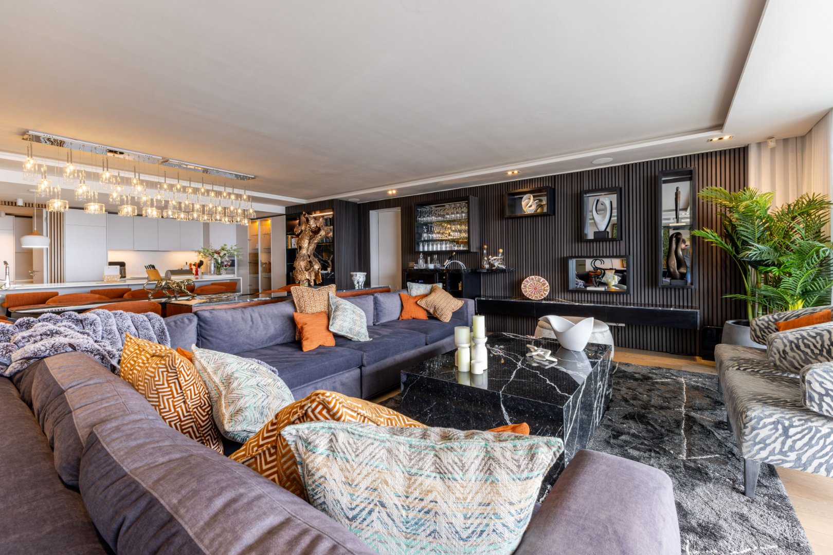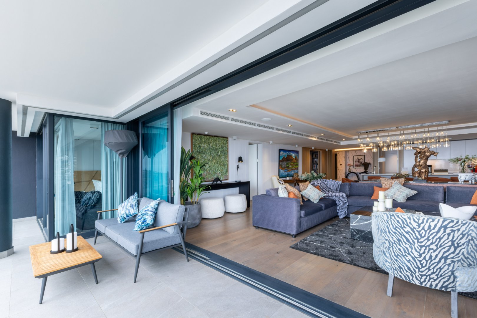 Suspended above the city with 342m² of reimagined luxury, this residence offers a rare balance of light, volume, and design. The arrival experience sets the tone — a striking piano foyer ushers you into interiors framed by sweeping views of the ocean and mountains.