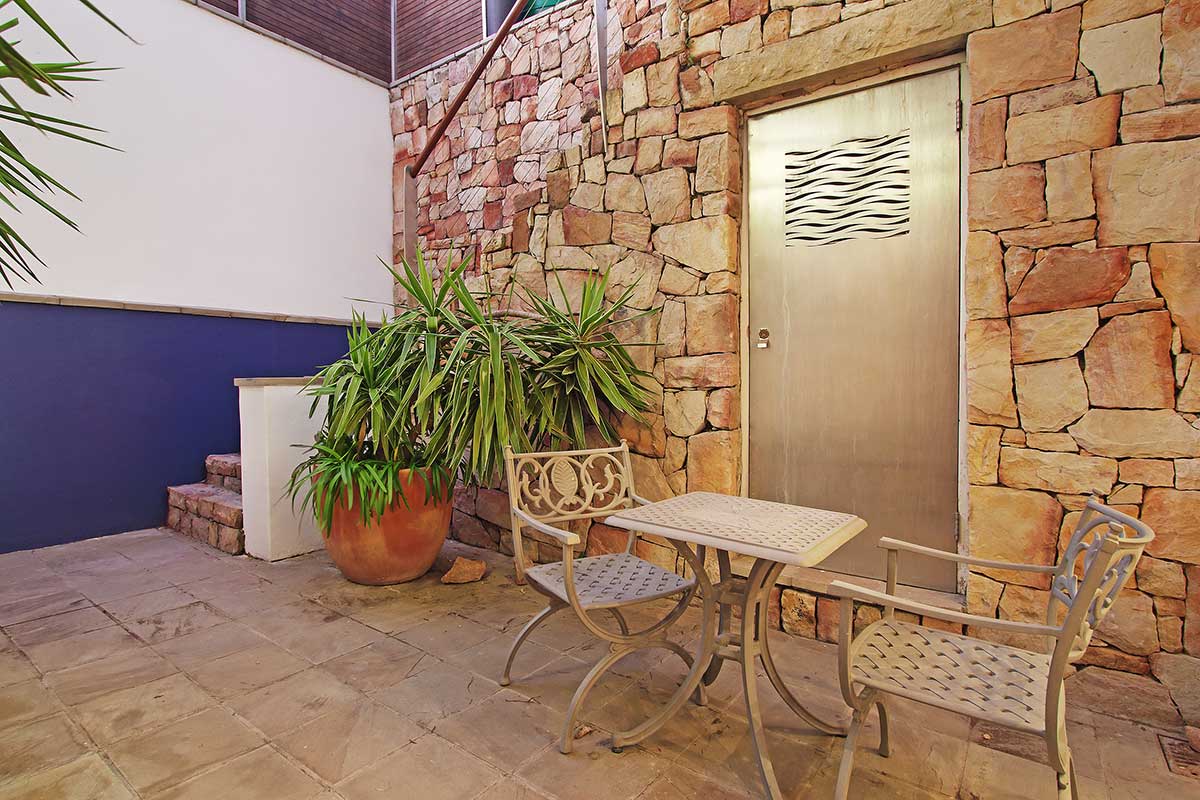 The villa consists of a main house and a flatlet which are accessed by a large flight of stairs from the street entrance.