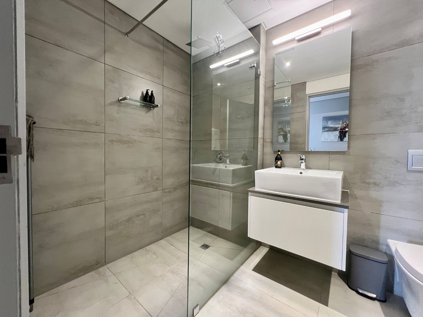 This modern apartment is tastefully furnished for a sophisticated and stylish living experience.
