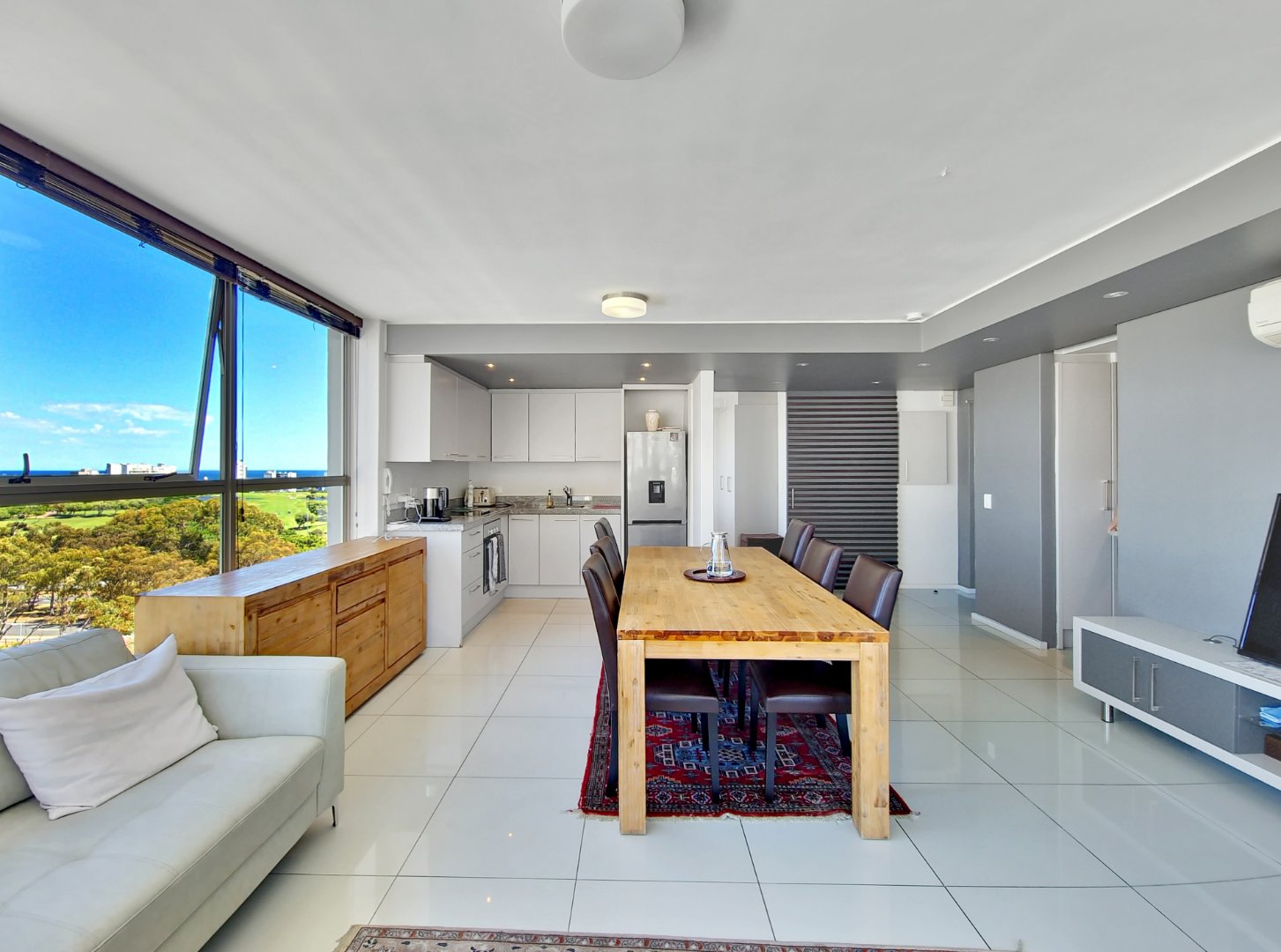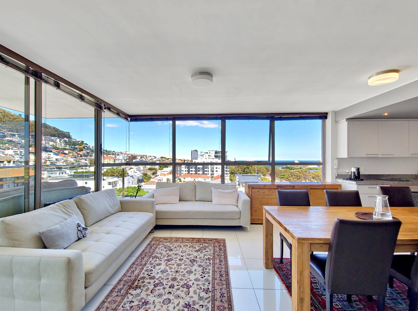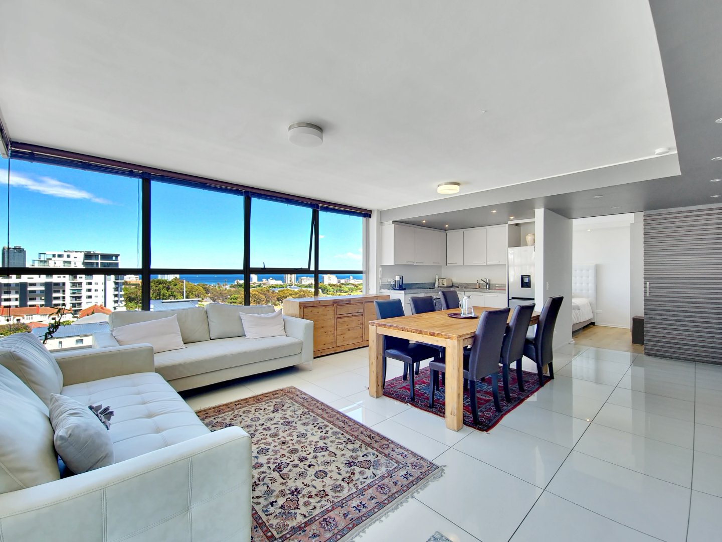 This beautiful apartment features two bright bedrooms, both en-suite; a spacious living, dining, and open kitchen with sweeping views of Signal Hill, Green Point urban landscape and the Mouille Point promenade skyline. Further highlights are a separate scullery/laundry, a private terrace and 2 undercover parking bays.