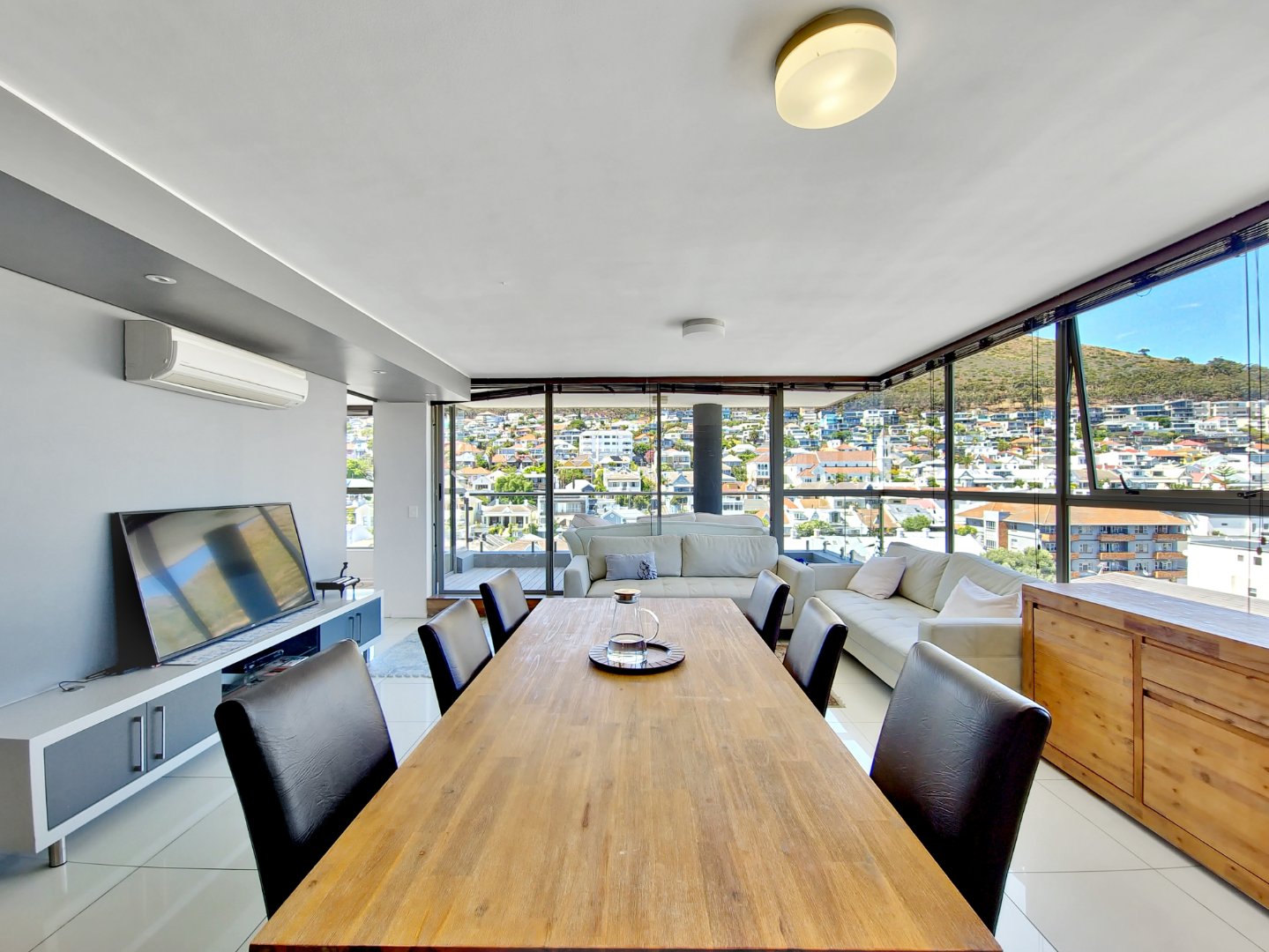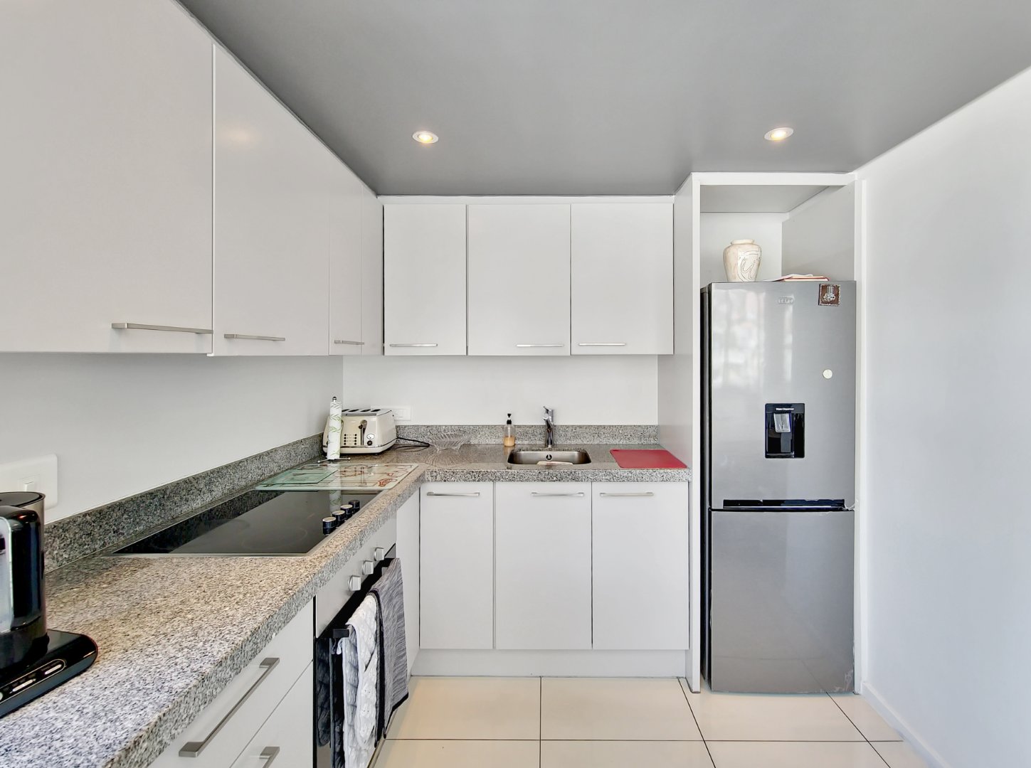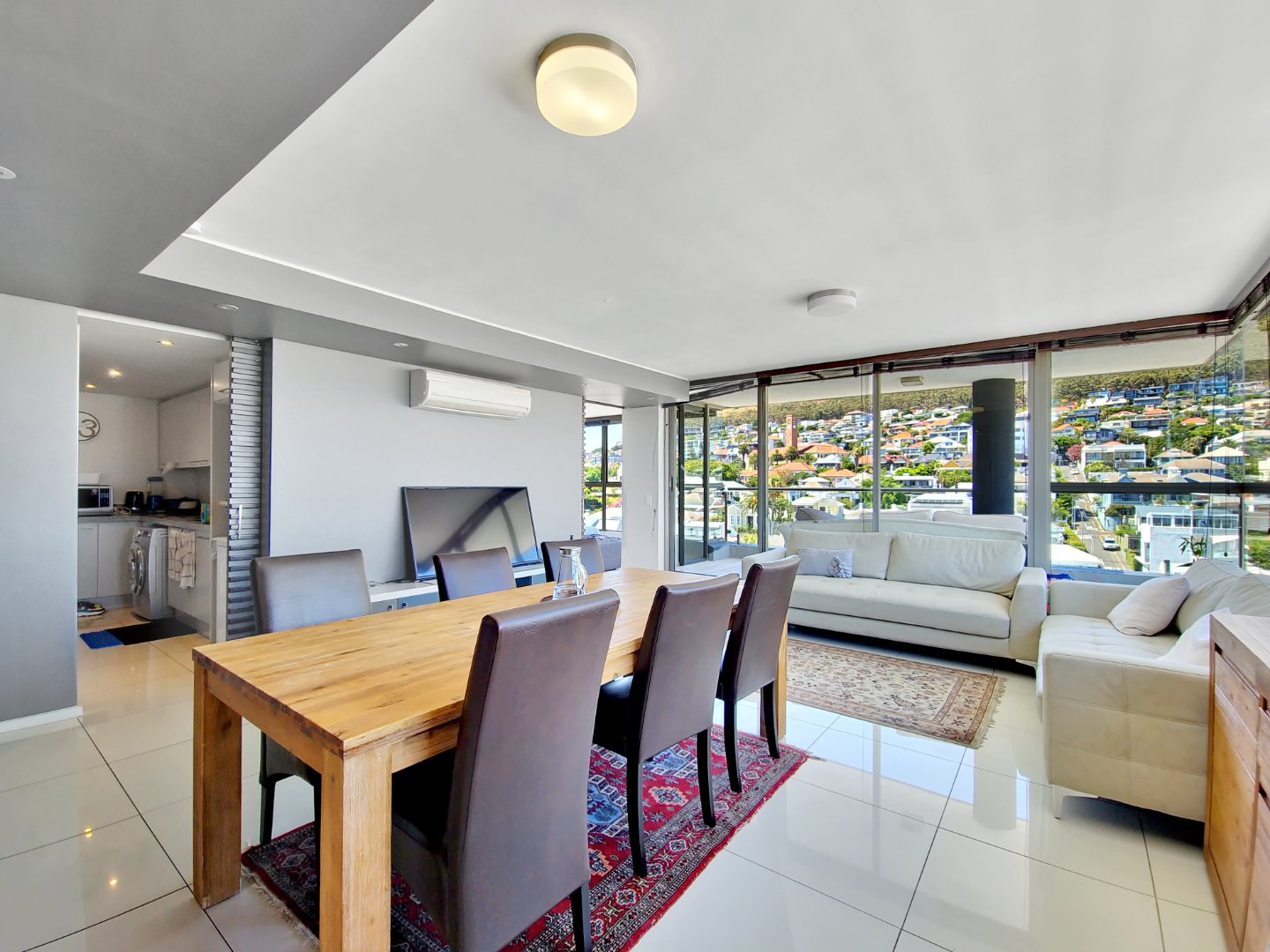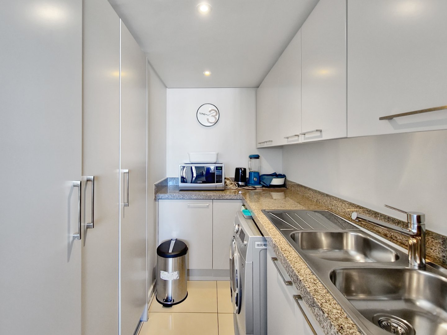 This beautiful apartment features two bright bedrooms, both en-suite; a spacious living, dining, and open kitchen with sweeping views of Signal Hill, Green Point urban landscape and the Mouille Point promenade skyline. Further highlights are a separate scullery/laundry, a private terrace and 2 undercover parking bays.