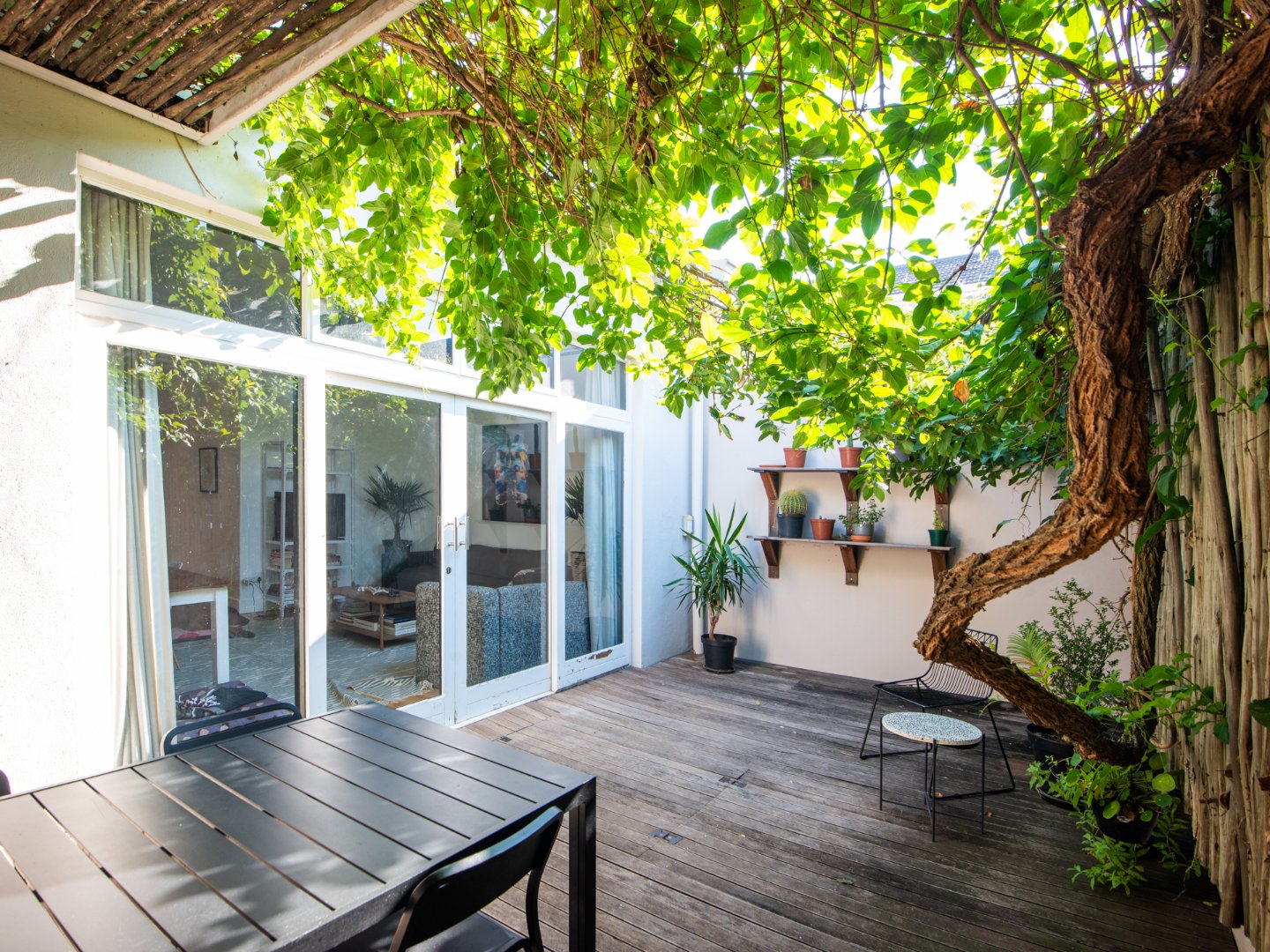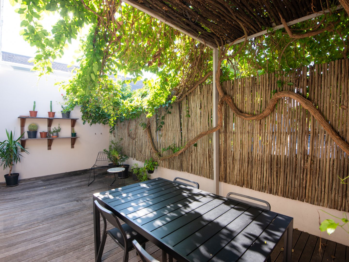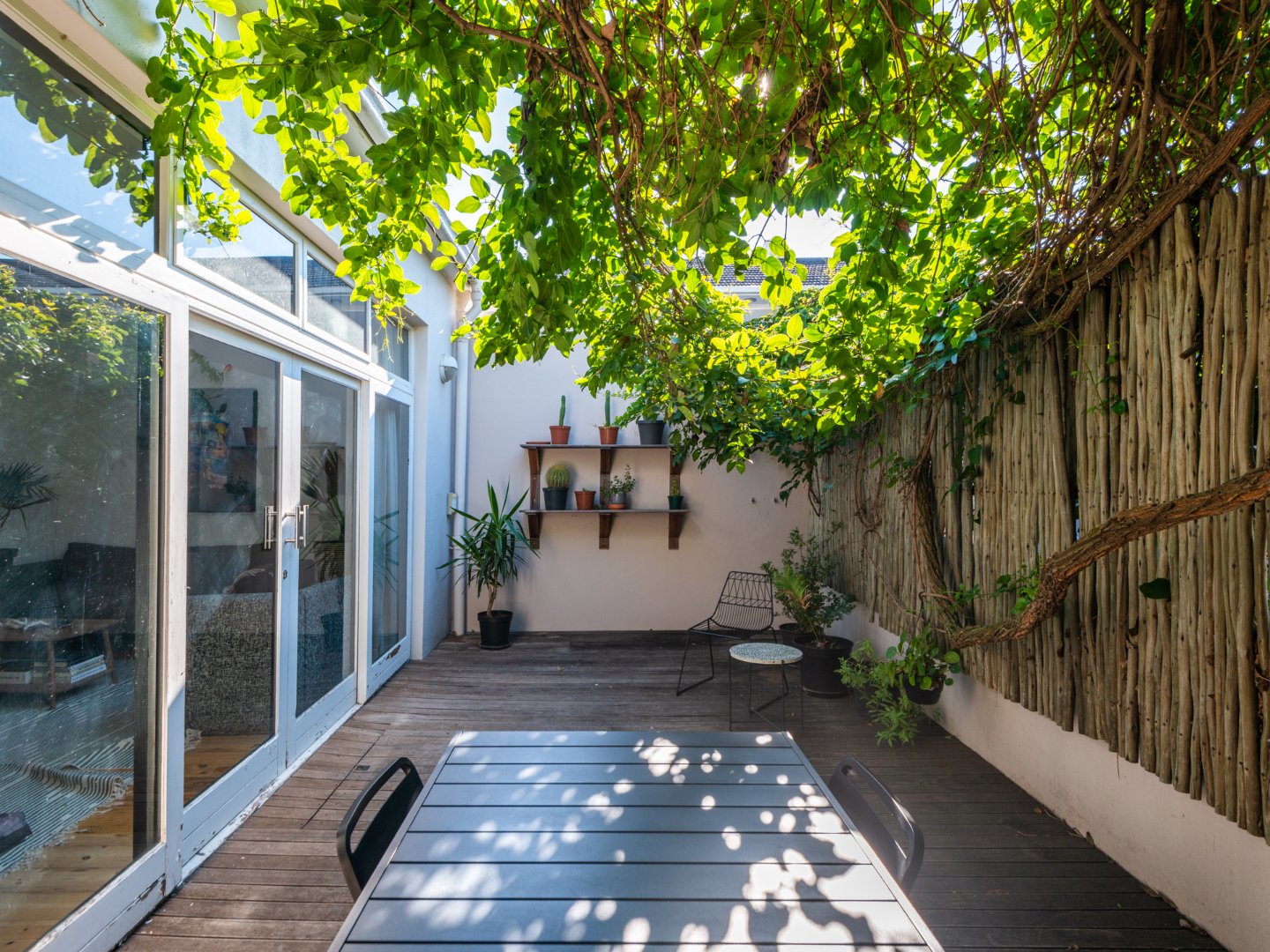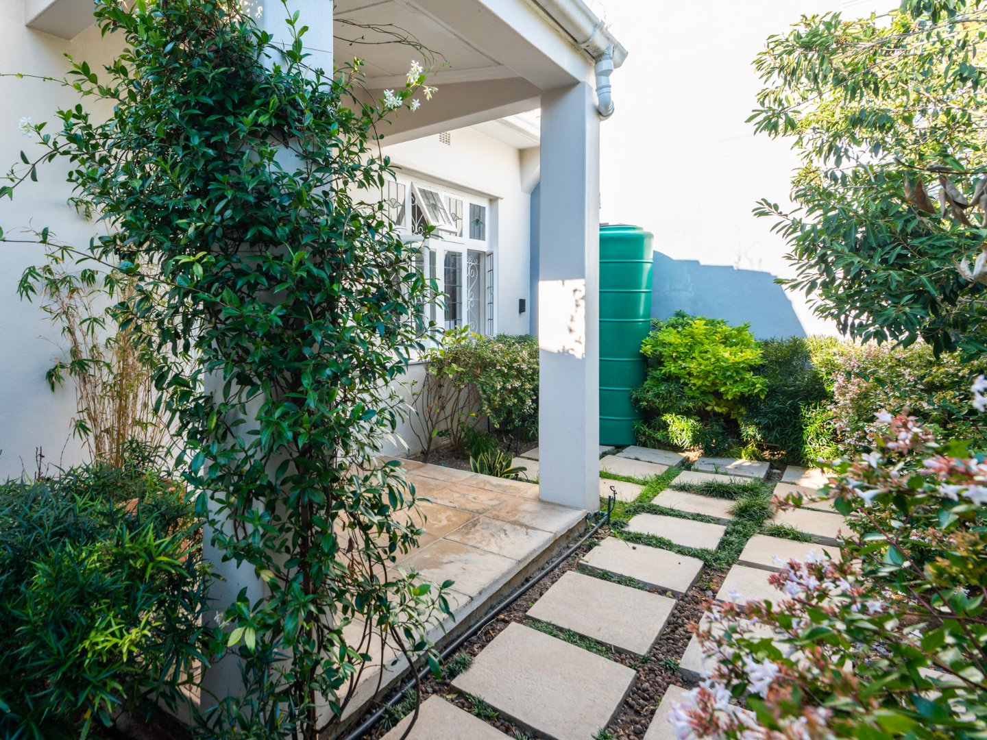 One enters the property and is met with a secluded courtyard allowing for a lush entrance to the house with space for an outdoor table or patio seating for those warm summer nights.