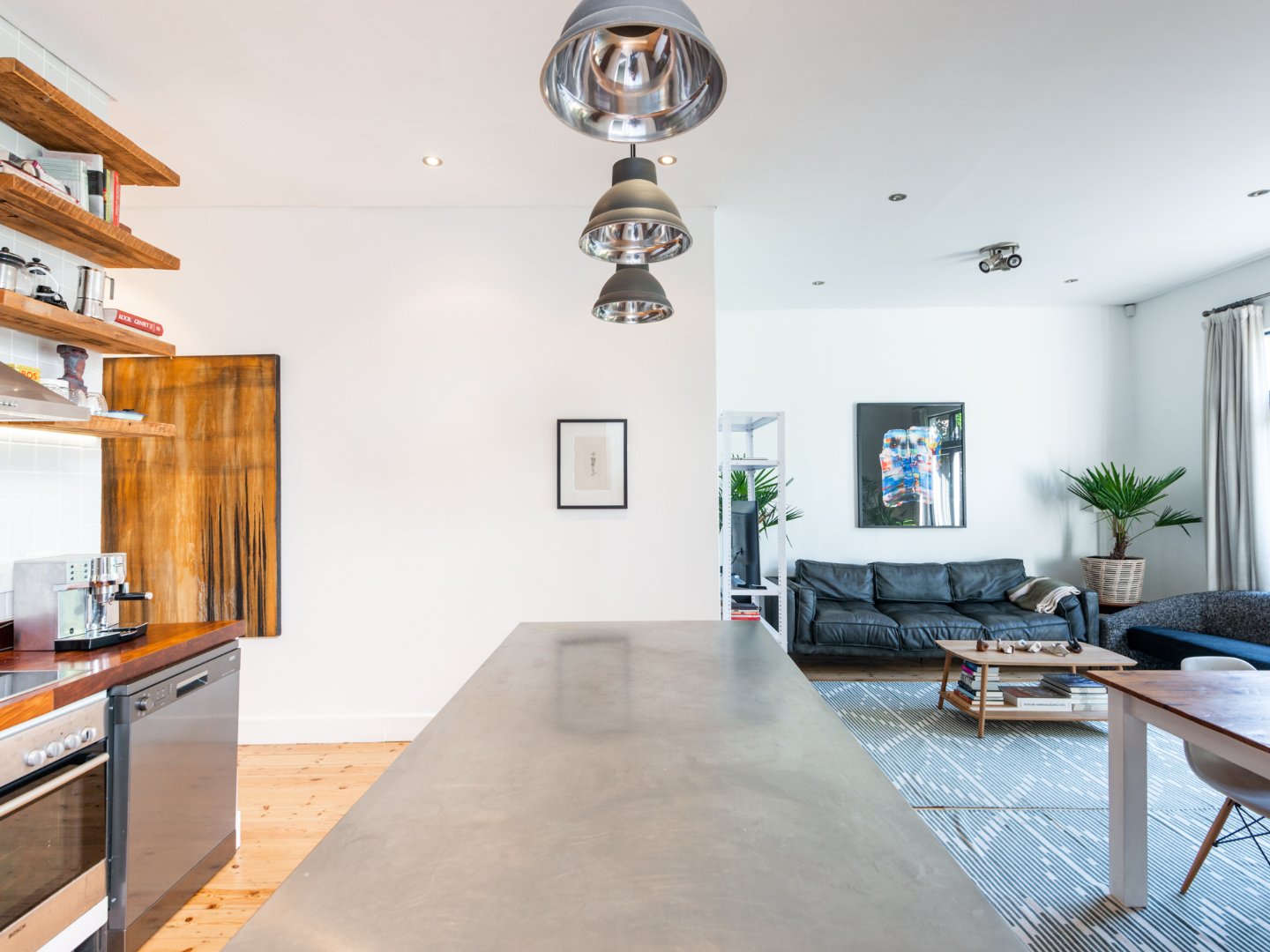 The main living space is modern and features a kitchen with island, large lounge and dining space which leads out onto an outdoor deck with stacking doors to create the perfect cohesion from indoor to outdoor living.