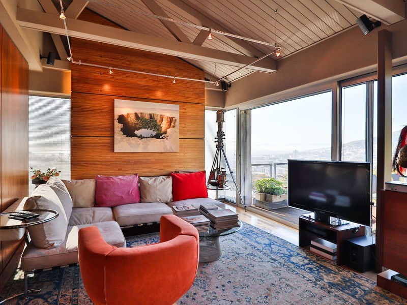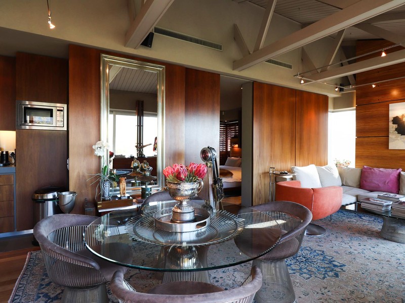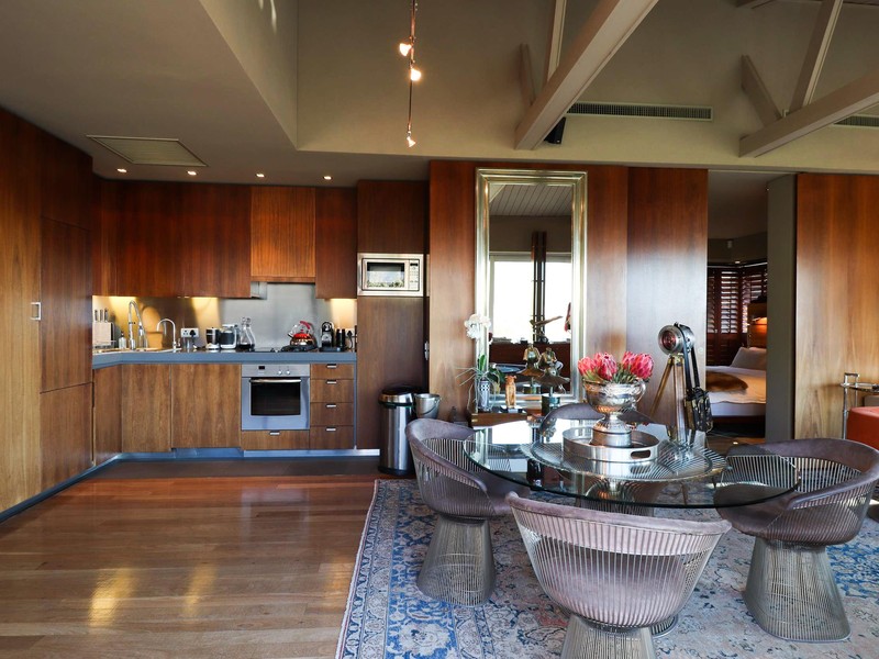 Welcome to one of Cape Towns hidden gems, this Penthouse has it all, unobstructed views of Table Mountain and even partial ocean views, step into a beautiful space with unique one of a kind finishes where the floors are made of imported solid Jarrah wood which gives a warm cozy feeling. There are 2 entrances with a study area on the one side and the kitchen on the opposite side.