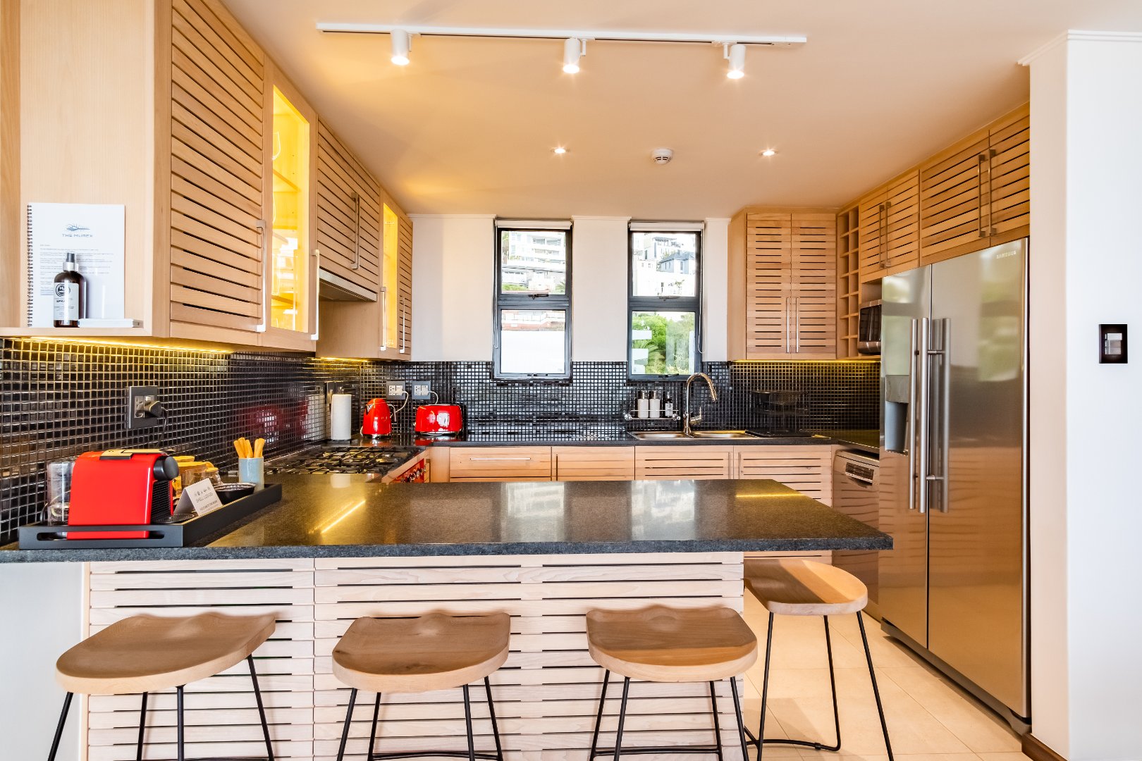 There is a 6-seater dining table in the apartment. Although breakfast is not served at The Murex, special arrangements can be made prior to arrival for a breakfast basket or the provision of a chef for breakfast/lunch or dinner at an additional cost. Alternatively, Sea Point hosts a variety of Restaurants within close proximity. There is also a fully equipped open plan kitchen in all apartments with tea/coffee facilities including a Nespresso machine, Smeg oven, kettle and toaster, dishwasher, dryer and washing machine. There is ample comfortable seating in the Lounge with DSTV and Netflix.
