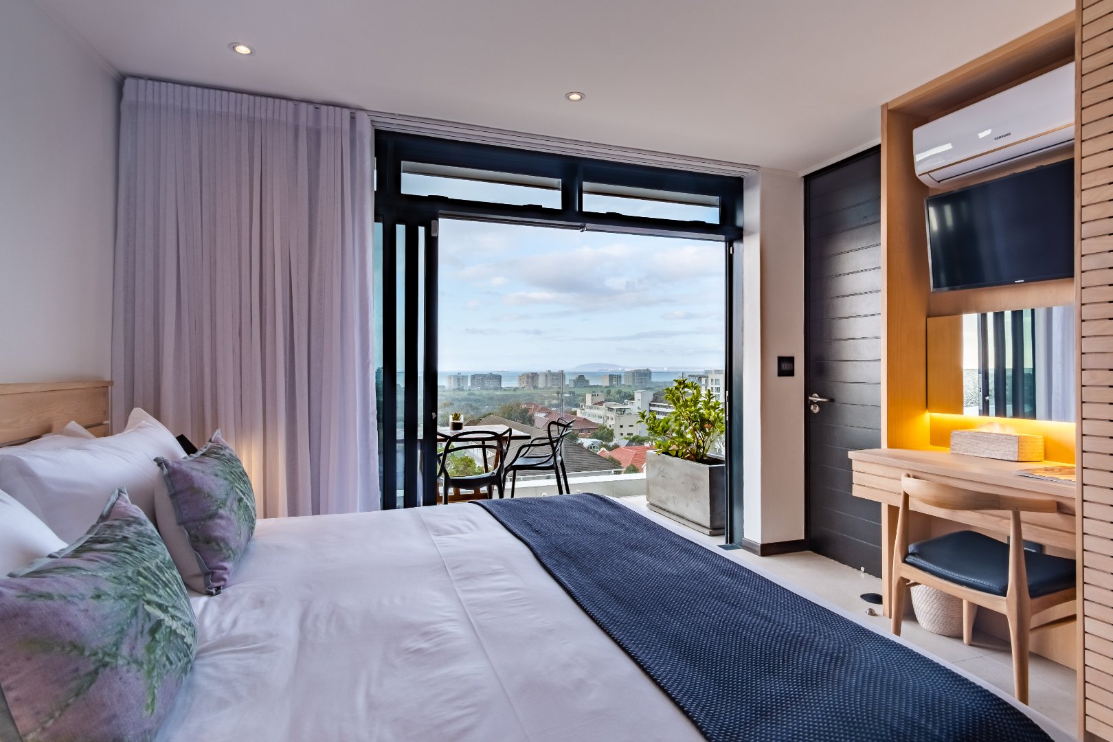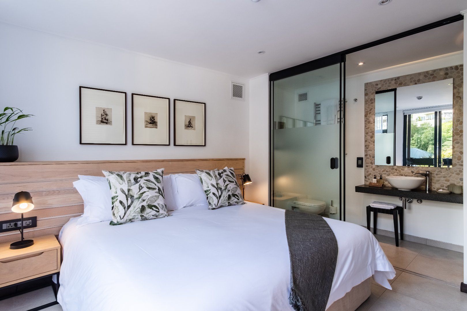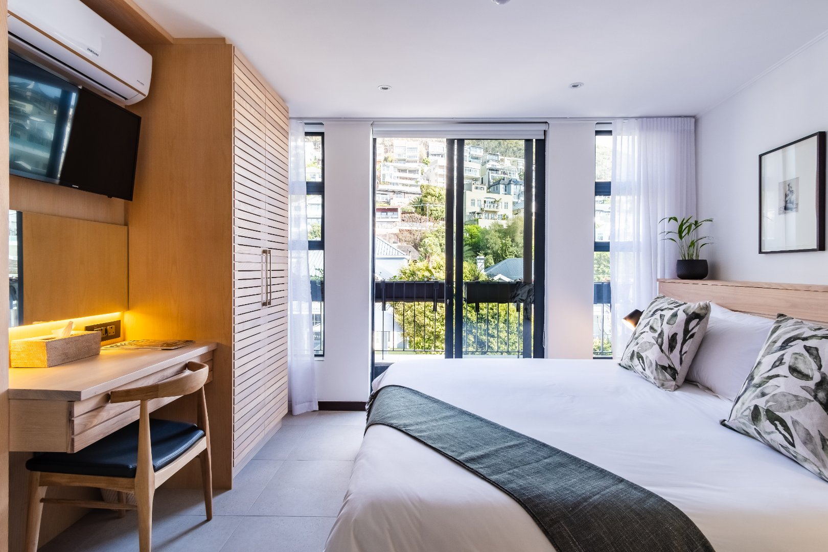 Room No 2 – is a King / Twin bedded room with en-suite bathroom with walk in shower, heated towel rail and shaving plug. There is a television with Netflix, a digital safety deposit box, vanity mirror, emergency light, air conditioner and underfloor heating. Hairdryer by the dresser as well as enough space for your luggage. View of the iconic Signal Hill.