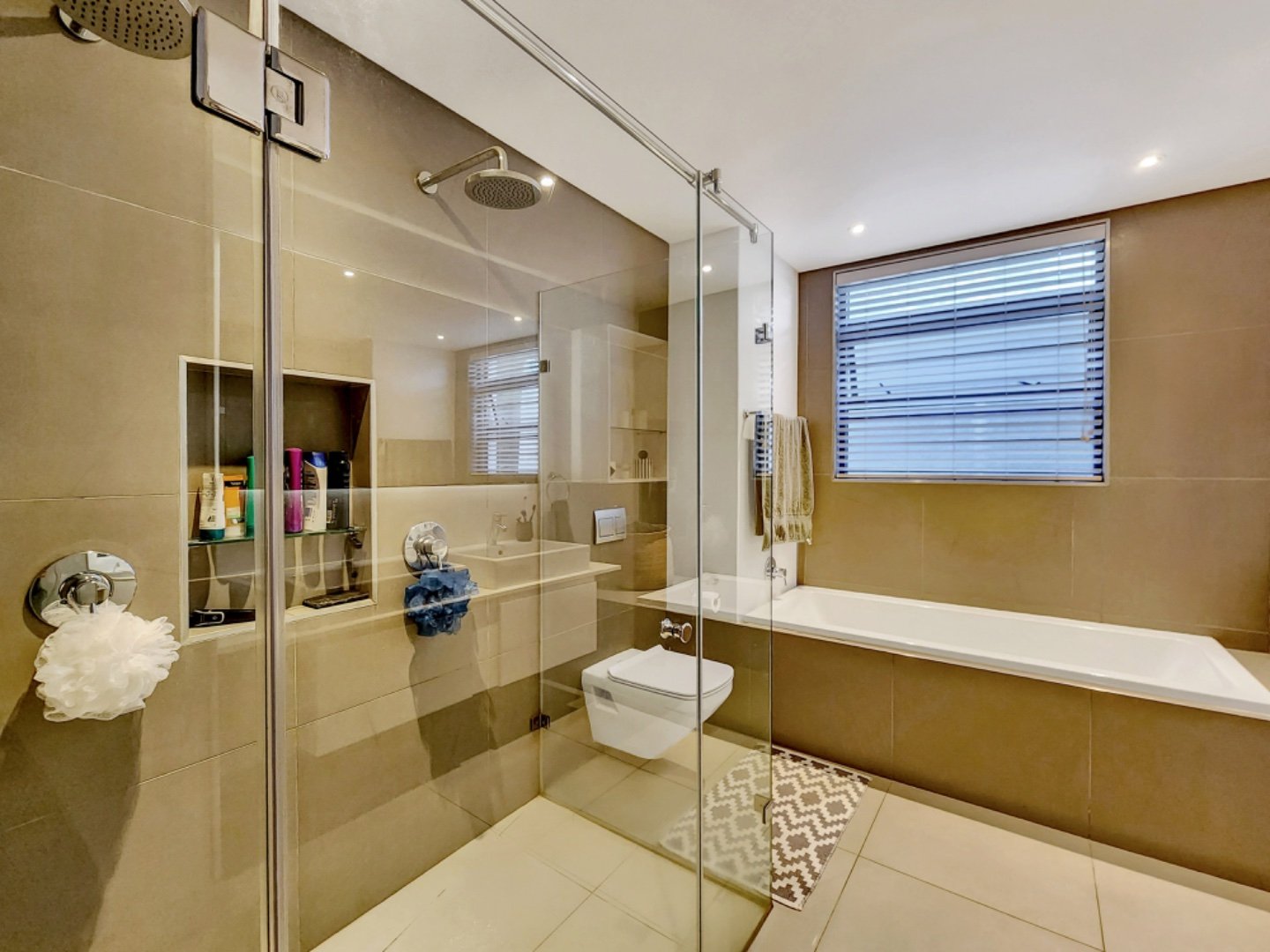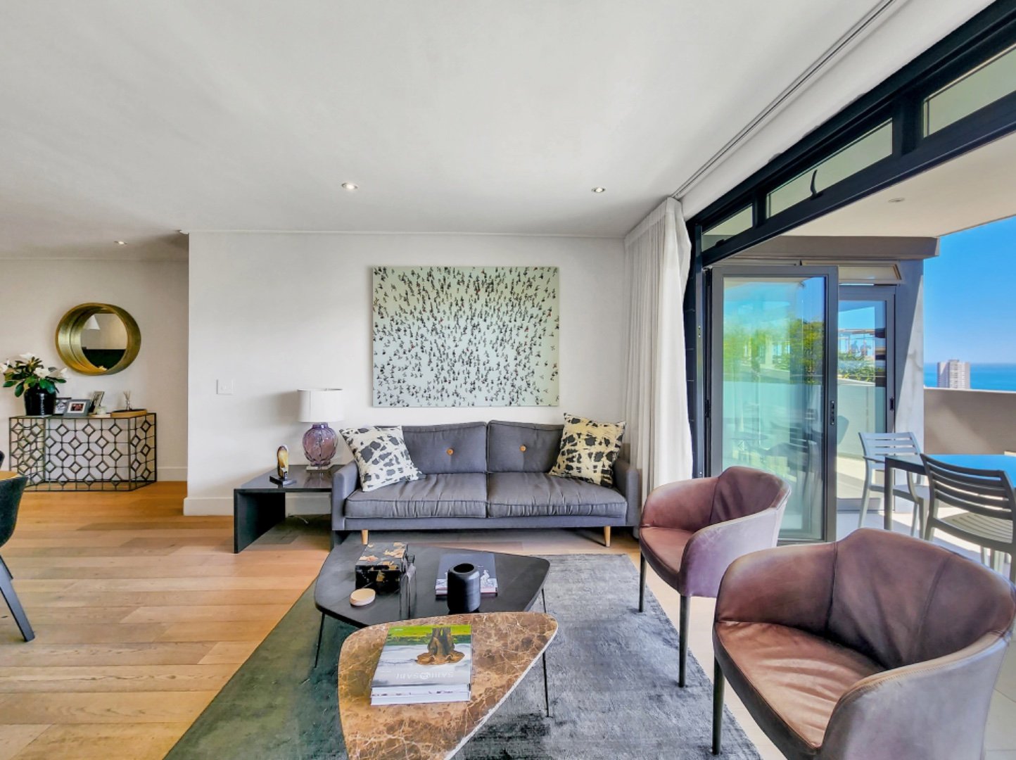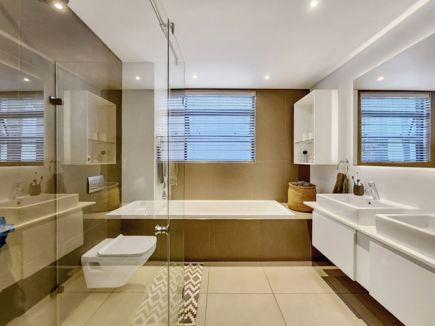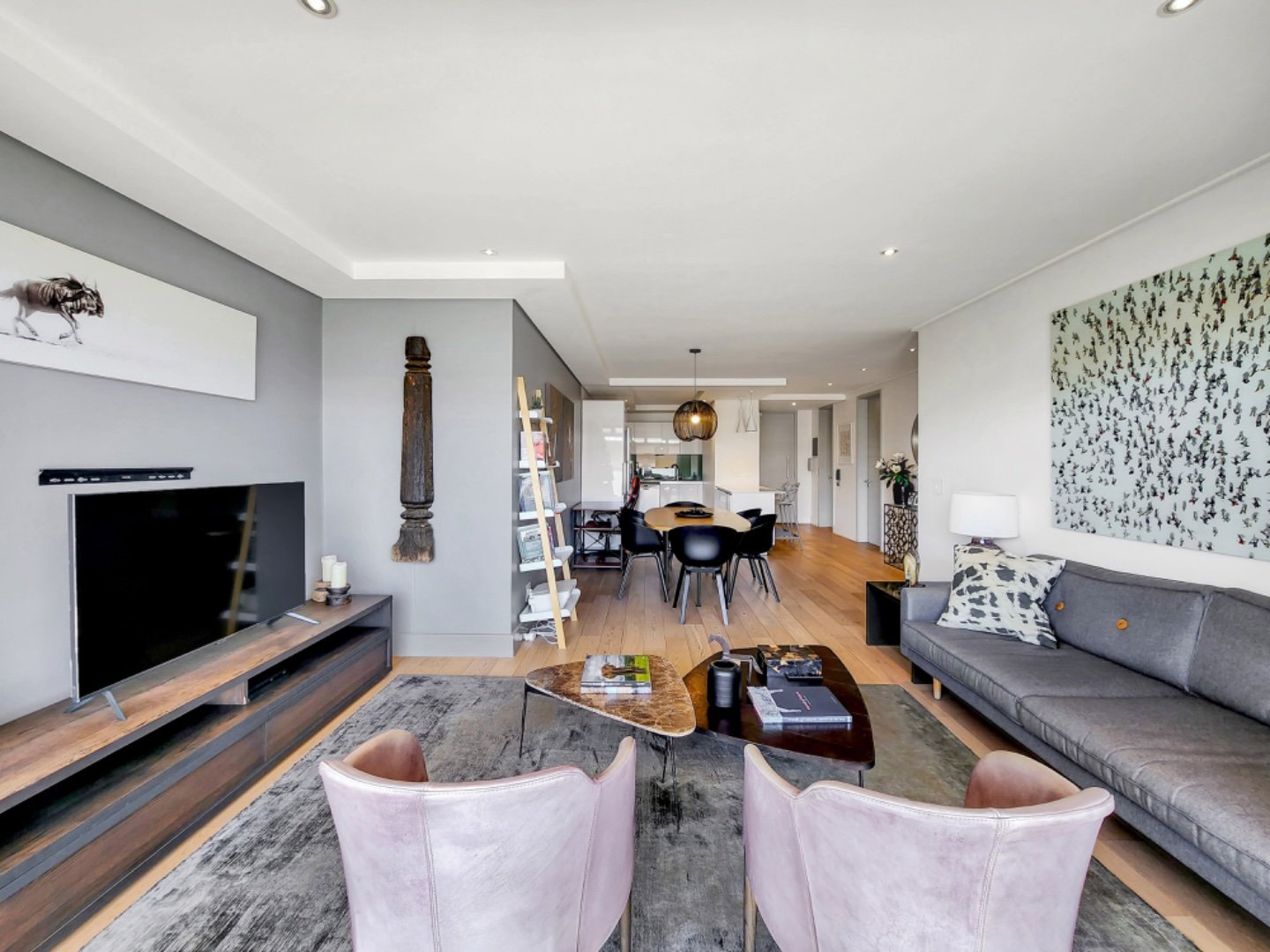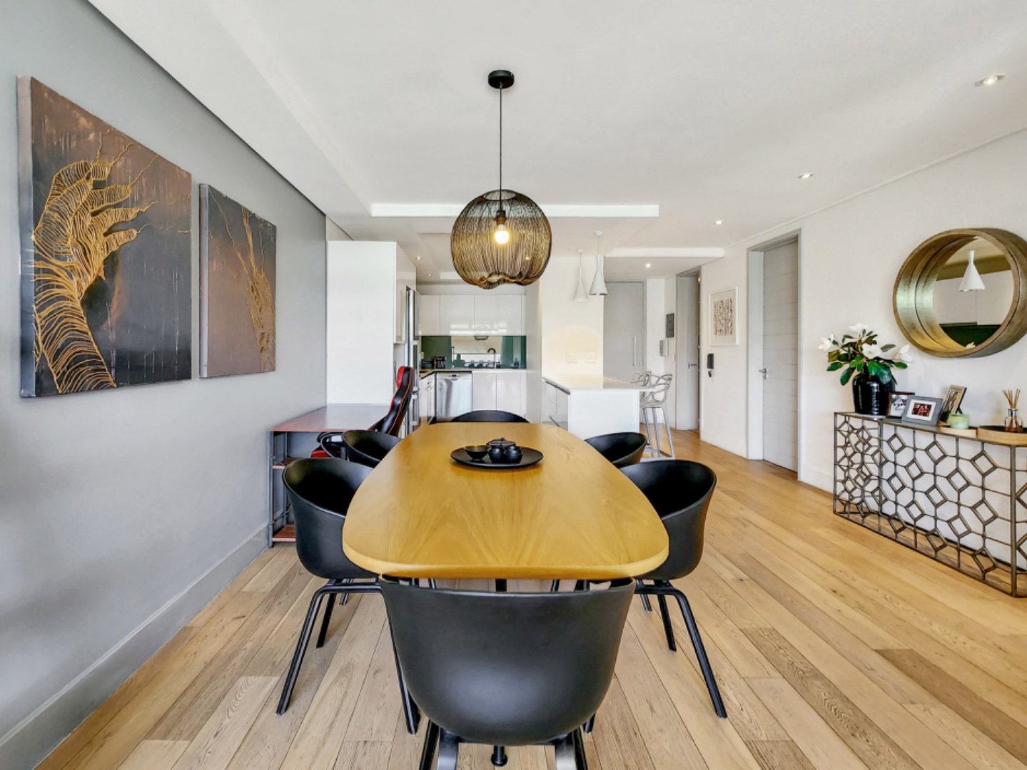 The sleek kitchen is equipped with top-of-the-line integrated SMEG appliances and soft-touch cabinetry, creating a refined space for cooking and hosting.