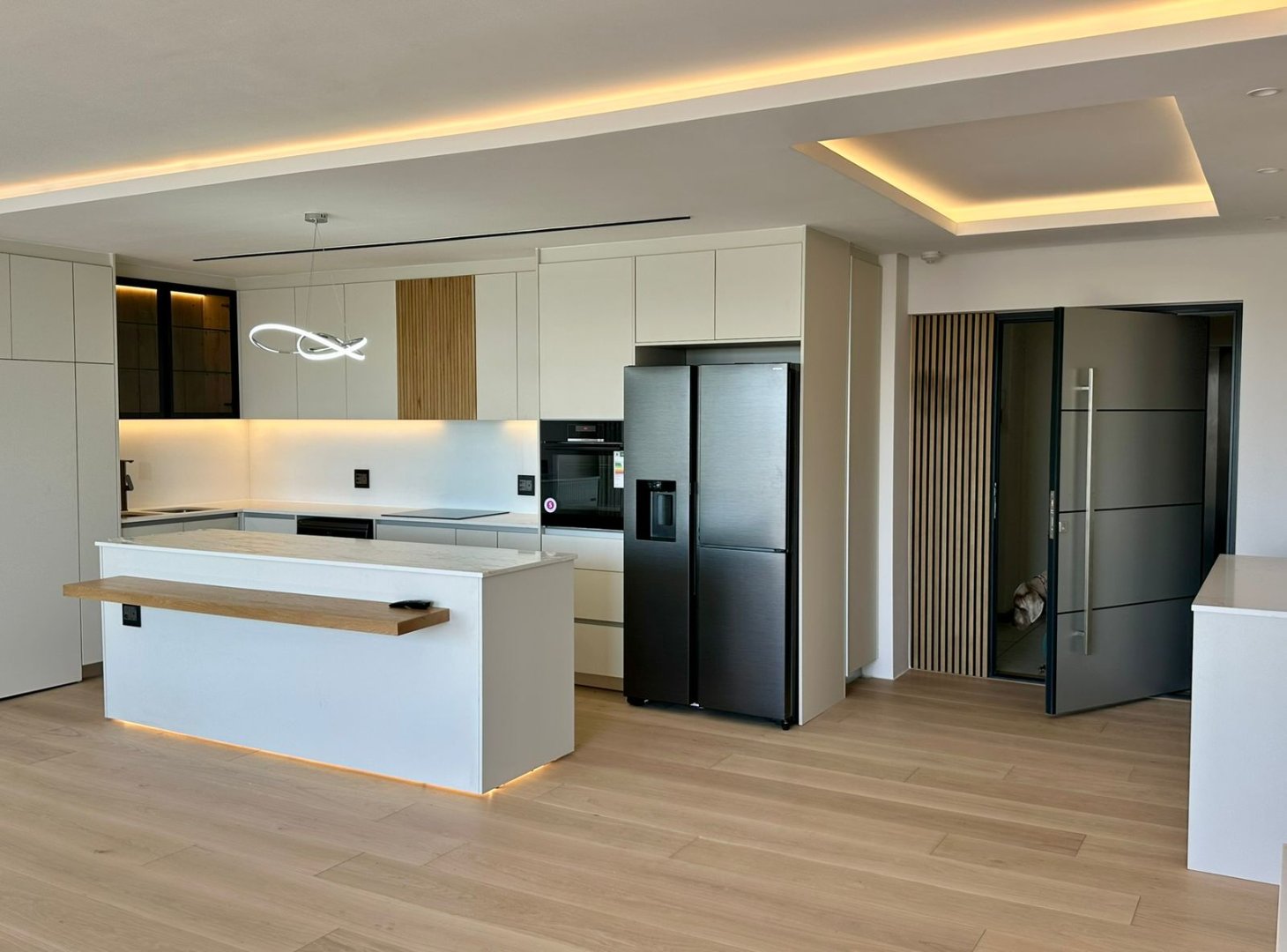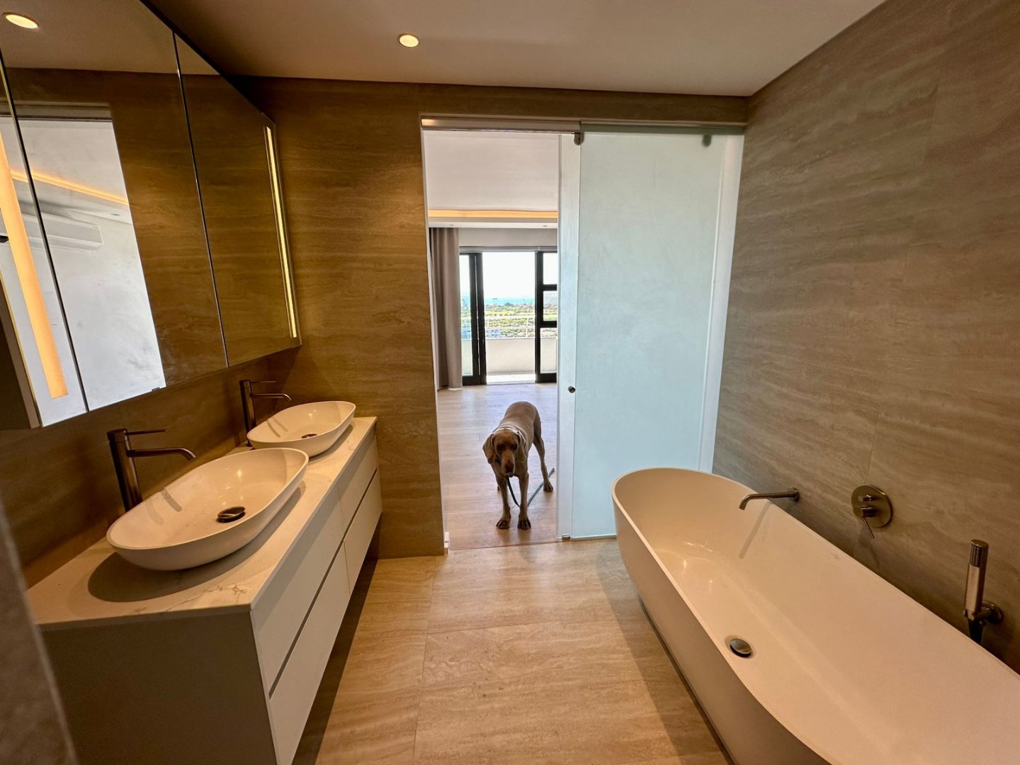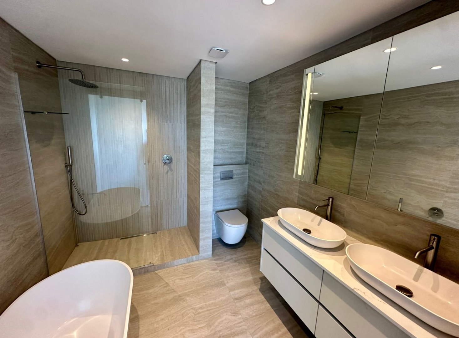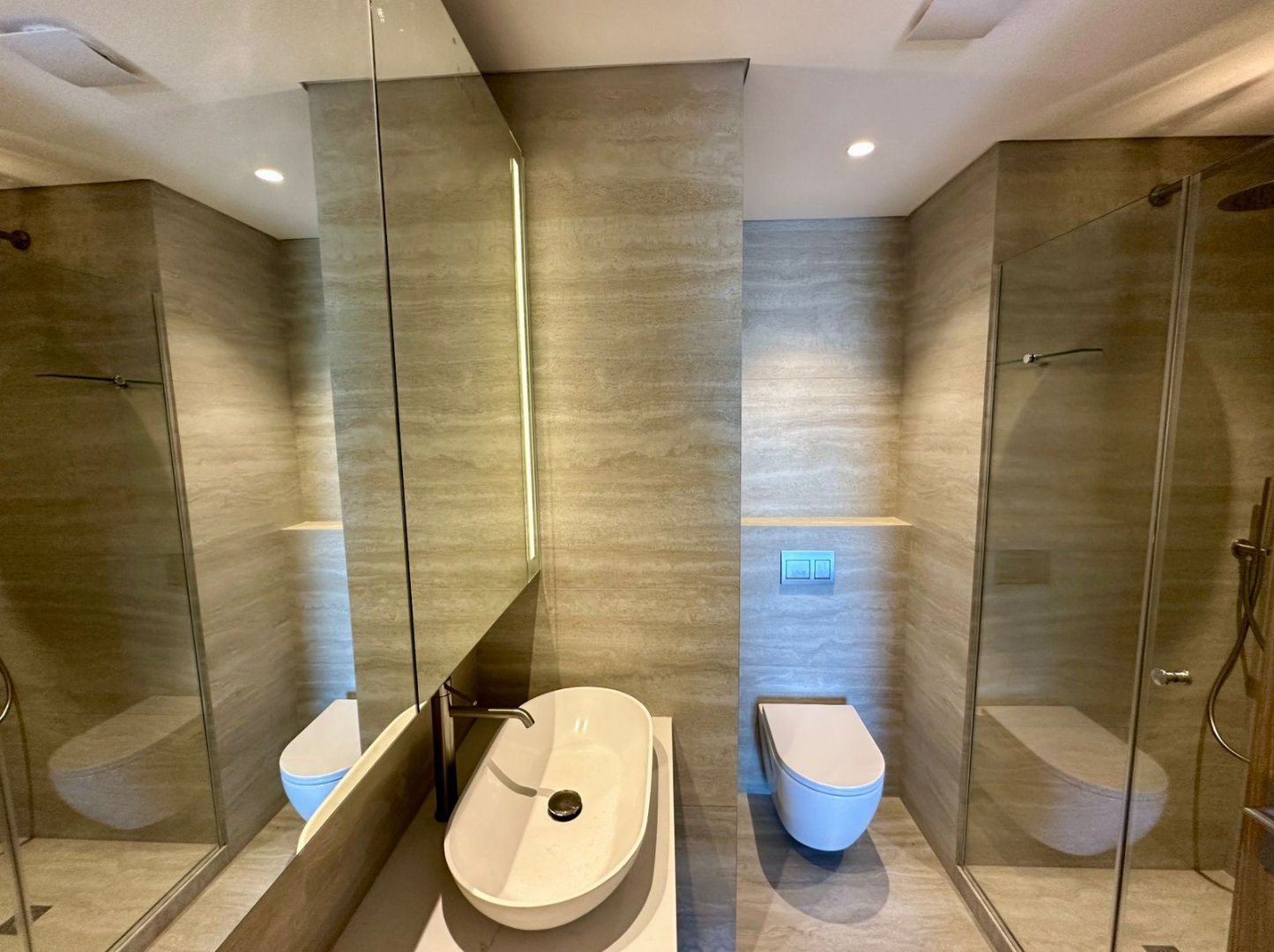 Both bedrooms are generously sized, with the main bedroom offering an en-suite bathroom and direct access to the balcony. High-end finishes, neutral tones, and thoughtful design details create a calm, sophisticated atmosphere throughout.