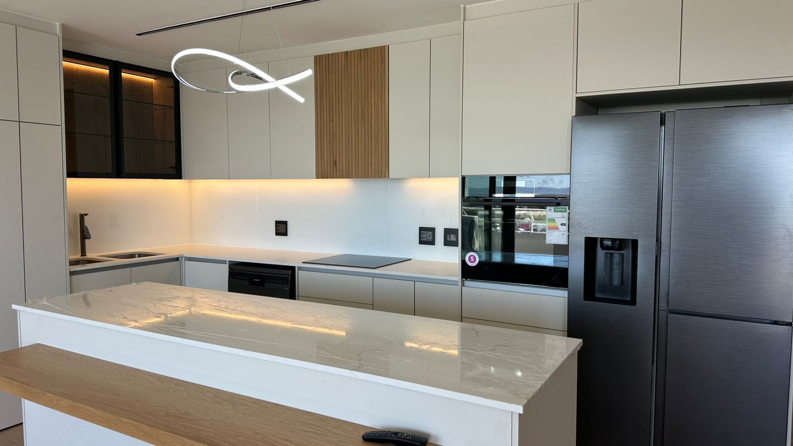 Step into a light-filled open-plan living and dining area that flows seamlessly onto a private balcony, where you can take in uninterrupted ocean views and enjoy spectacular sunsets. The contemporary kitchen is sleek and fully equipped, ideal for modern living and effortless entertaining.