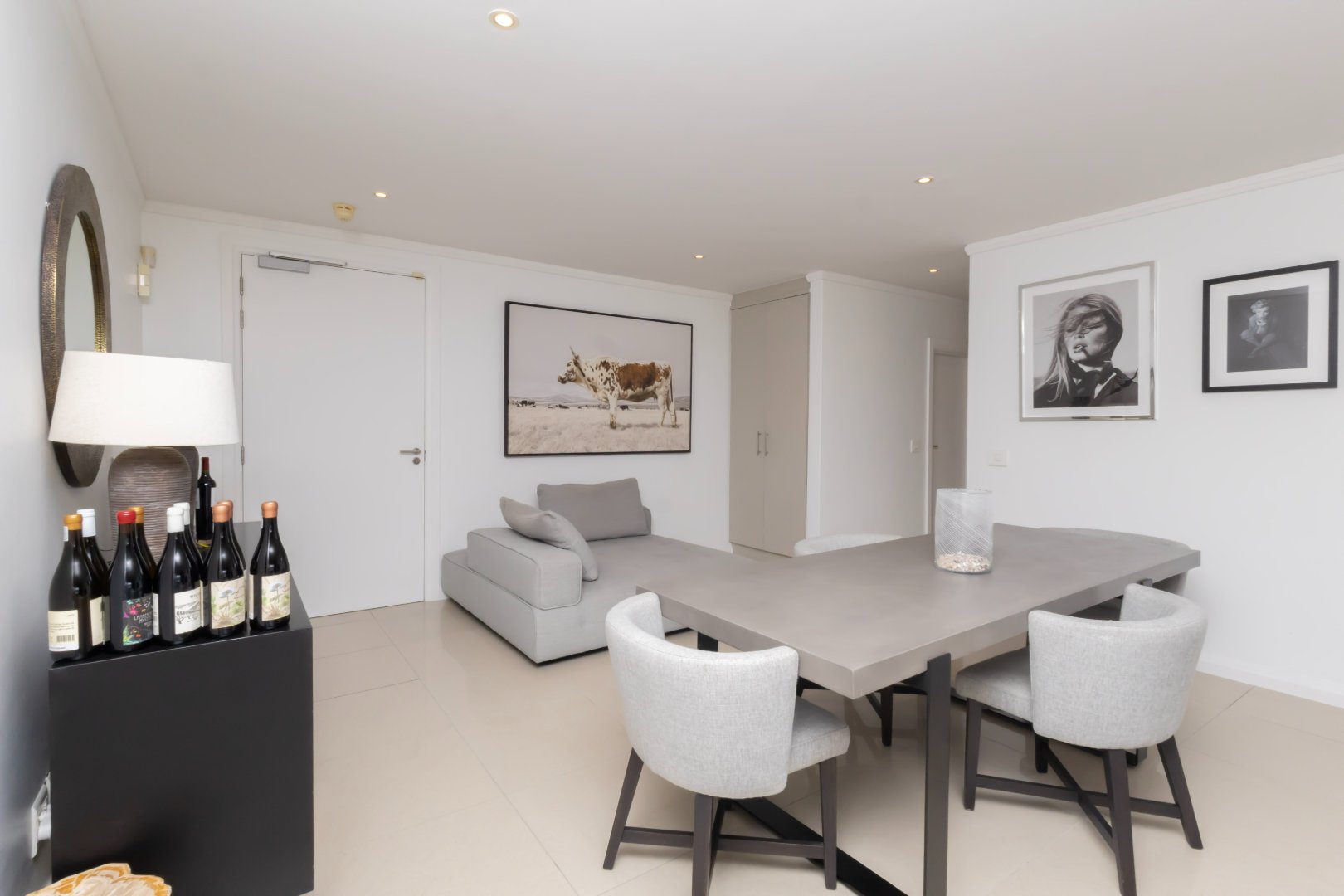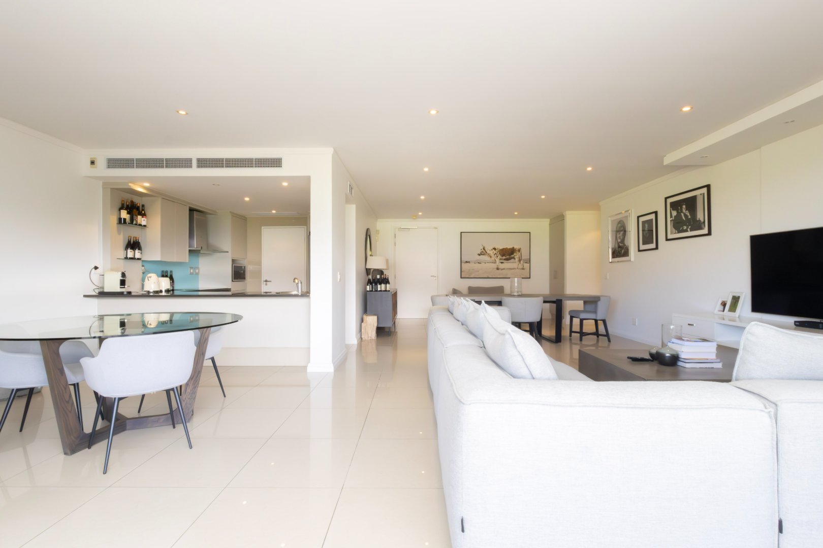 The spacious open-plan living and dining area is bathed in natural light and extends effortlessly onto a private balcony, creating an inviting space for both refined entertaining and quiet moments of relaxation against a spectacular backdrop. The contemporary kitchen and thoughtfully designed interiors reflect quality finishes and timeless elegance throughout.