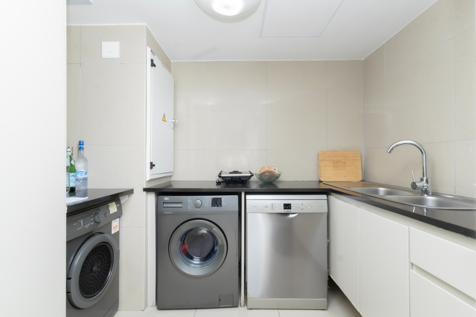 Both bedrooms are generously proportioned, with two beautifully appointed bathrooms providing comfort and privacy. The apartment is further enhanced by the convenience of two dedicated parking bays, ensuring effortless urban living.