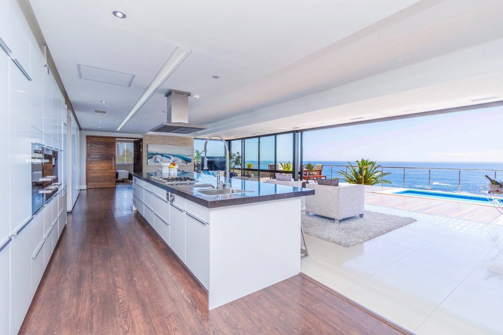 The open living and dining area is stylish, elegant and enjoys spectacular ocean views as well as an expansive entertainment area; 14-metre lap pool, Jacuzzi, outdoor dining and lounge area, pizza oven and gas barbecue facility; a perfect area to relax with family and enjoy unforgettable sunsets.