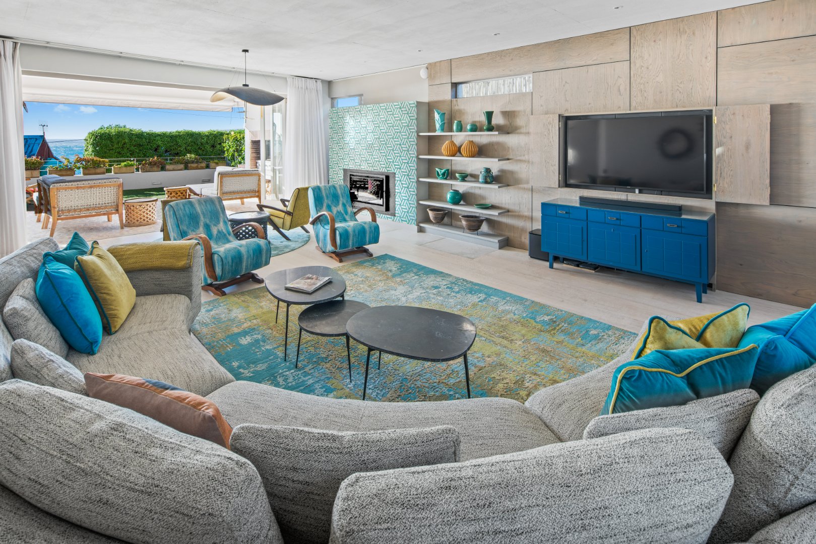 – Glass fold away doors opening up to 2 patios with sea and mountain views