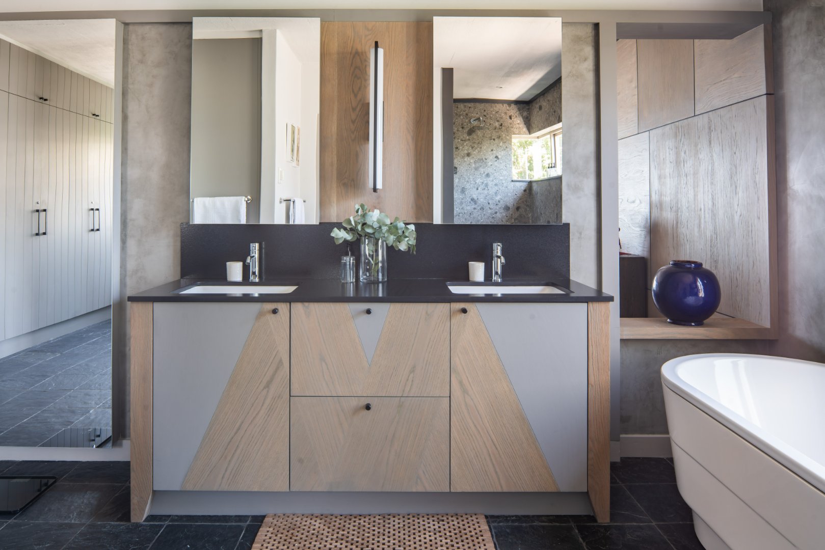 – En suite bathroom with large bath, separate shower and double basin