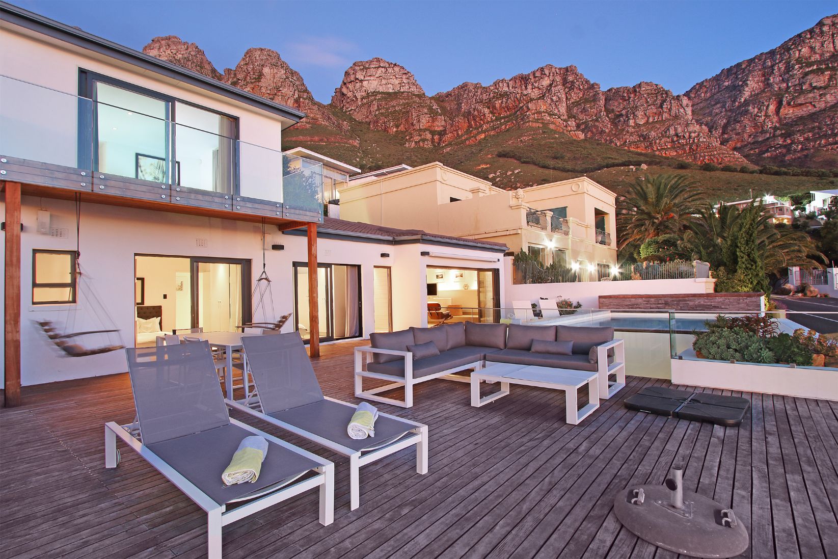 The deck also has a pool which enables one to enjoy the surrounding, breath-taking sea and mountain views. At the back of the property you can relax in the courtyard setting with a small lounge area. Ty Gwyn is in a great location and close to all the attractions and amenities Cape Town has to offer.