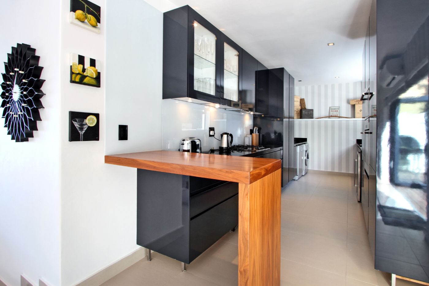 Decorated throughout in a sleek contemporary style, the villa is split on two levels. On entering the villa, you are greeted with the open plan lounge, dining and newly renovated high-spec kitchen area.